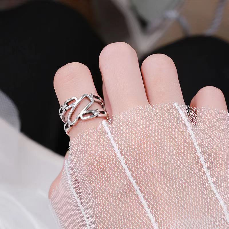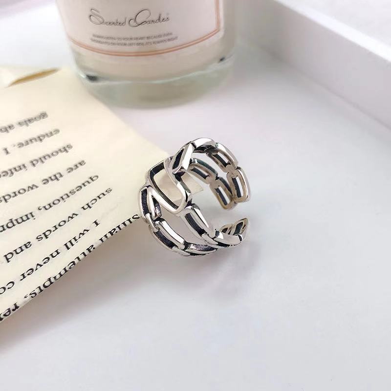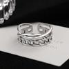 Anillo de plata lisa japonés y coreano retro antiguo doble cadena anillo para mujer anillo estudiante joyería de plata al por mayor