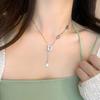 Collar con letra M en inglés, estilo frío y diseño de nicho simple, cadena de bambú de acero de titanio para mujer, chapado en oro de 18 quilates.