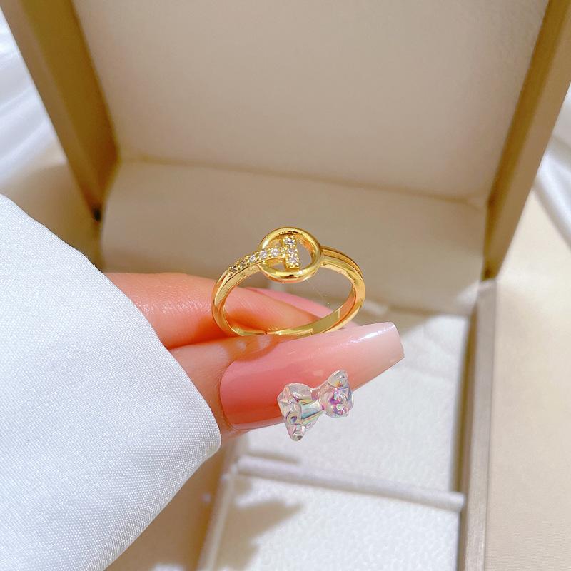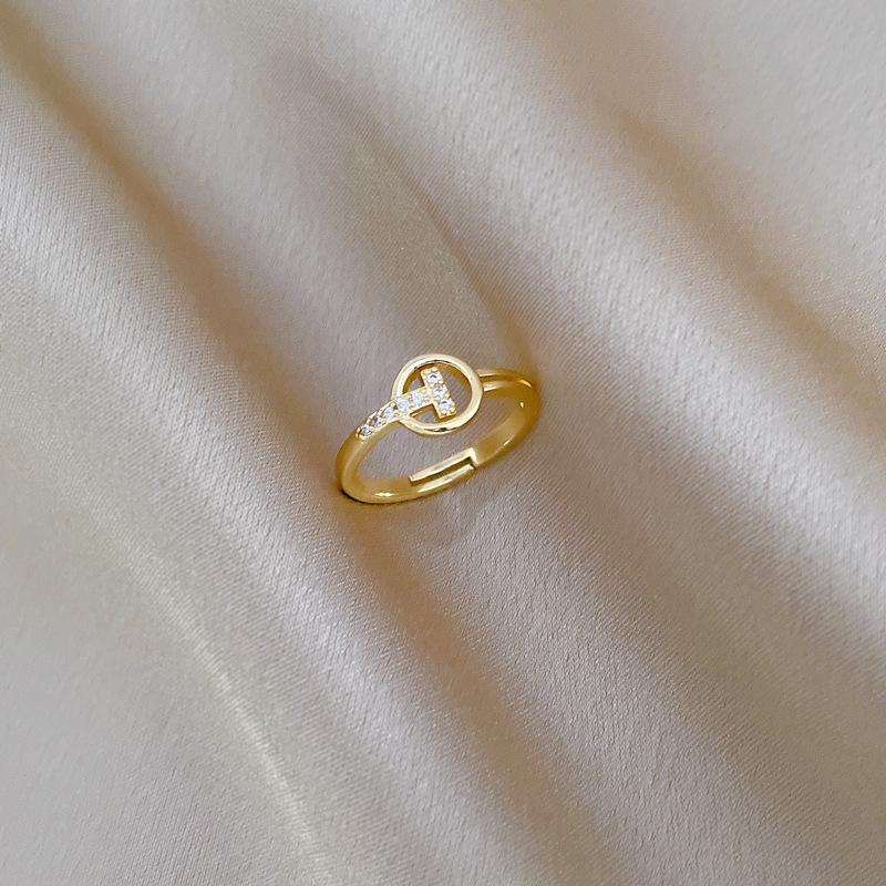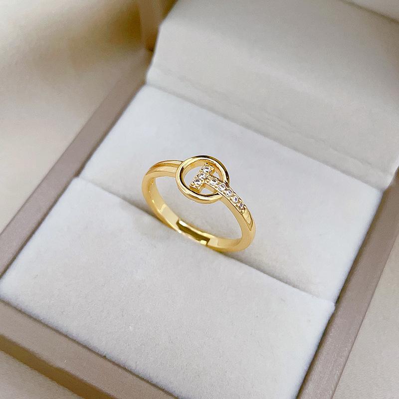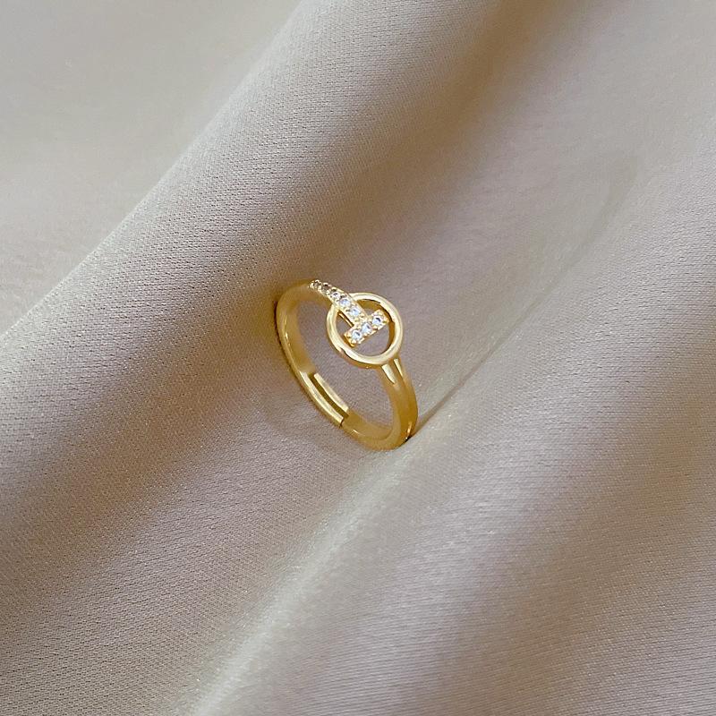[Oro Verdadero] Anillo Redondo en Forma de T Pequeño con Abertura Ajustable Simple Teléfono Móvil Anillo Japonés Anillo de Pareja
