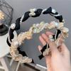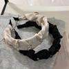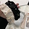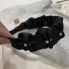 La Nueva diadema de temperamento con perlas, satén plisado, borde ancho, sentido alto, parte superior craneal alta, aro para la cabeza, versátil, moda, aro para el cabello