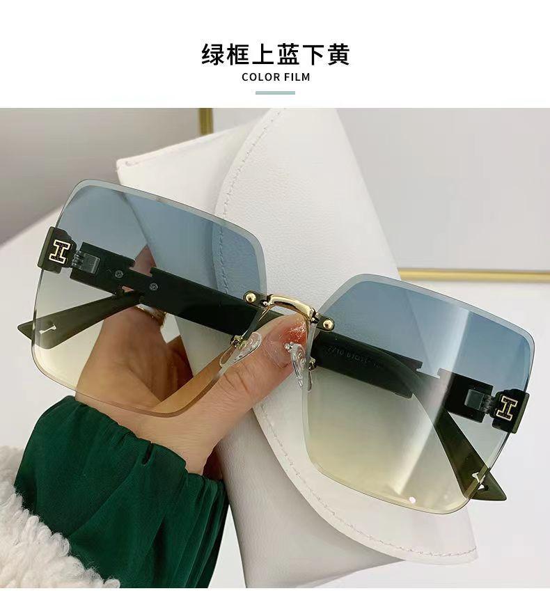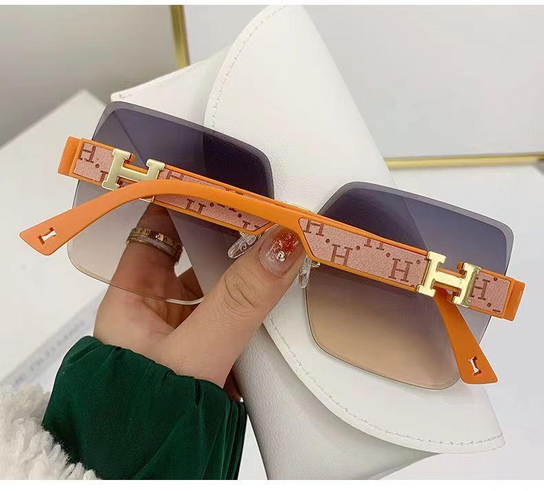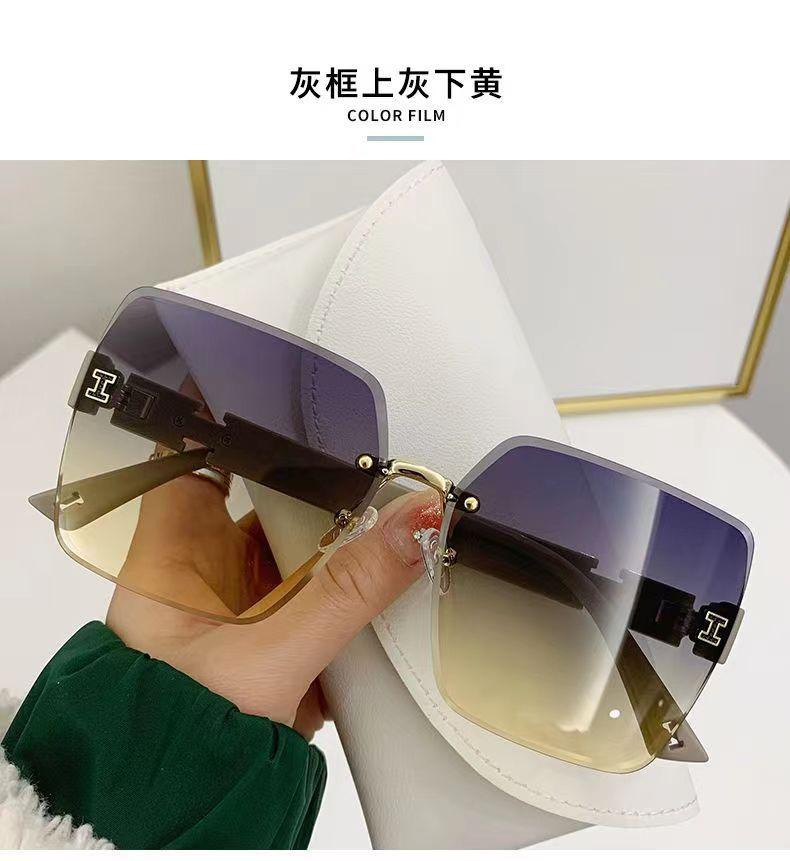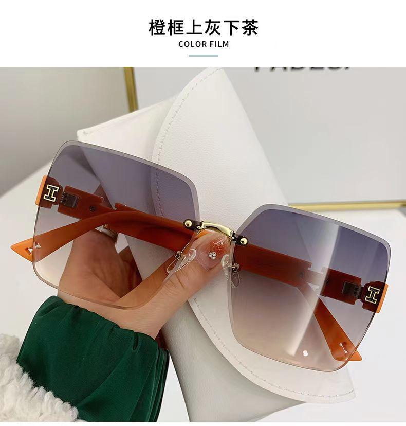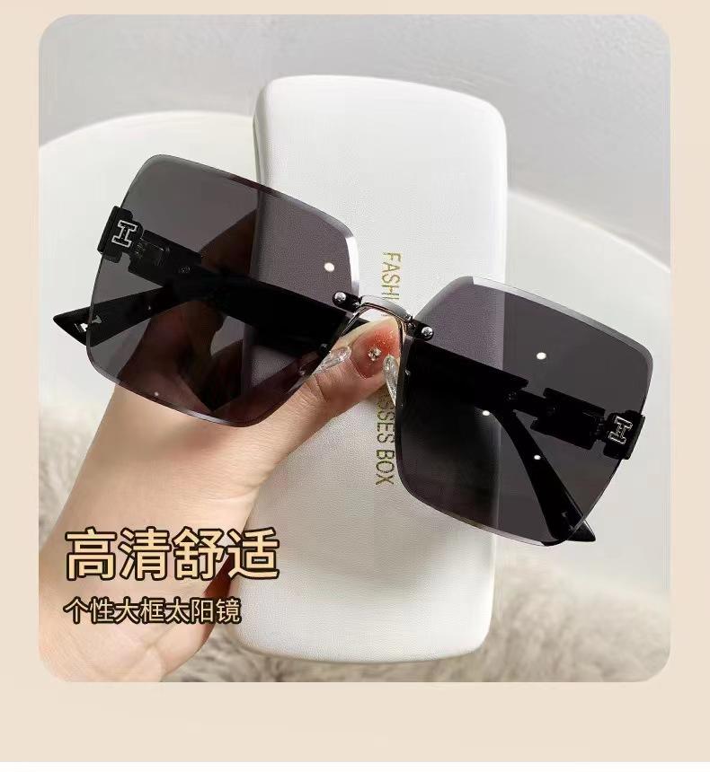Nuevas Gafas de Sol Cuadradas de Gama Alta con Borde Cortado sin Marco Douyin 2023, Gafas de Sol de Moda Europeas y Americanas de Celebridad de Internet con Montura Grande al por Mayor
