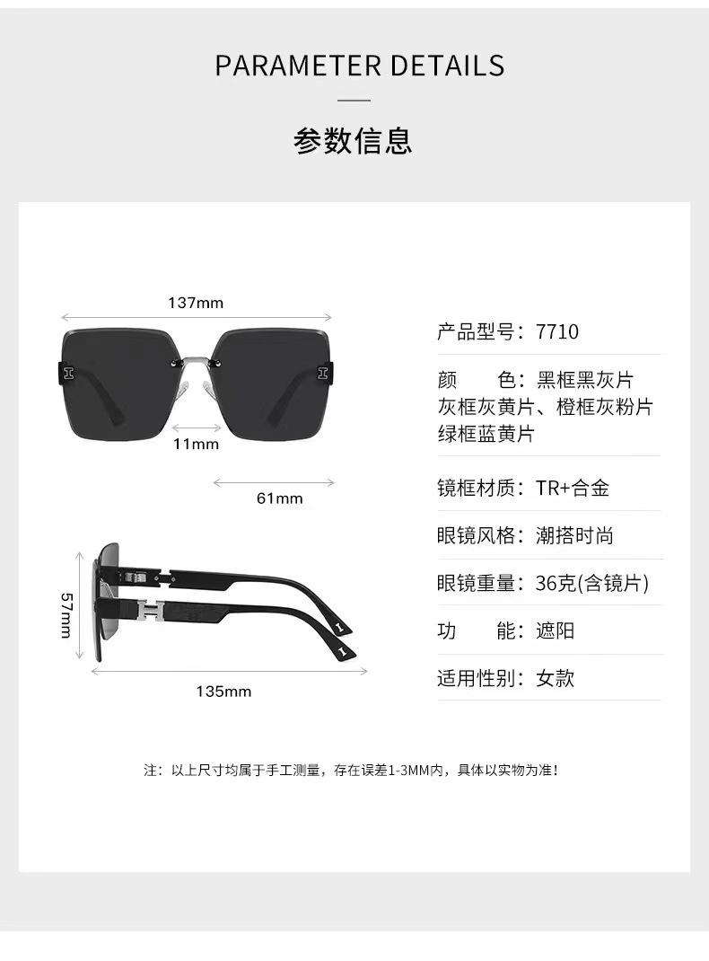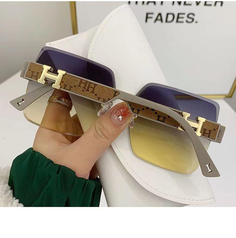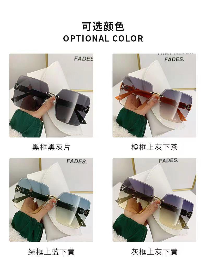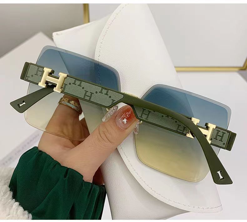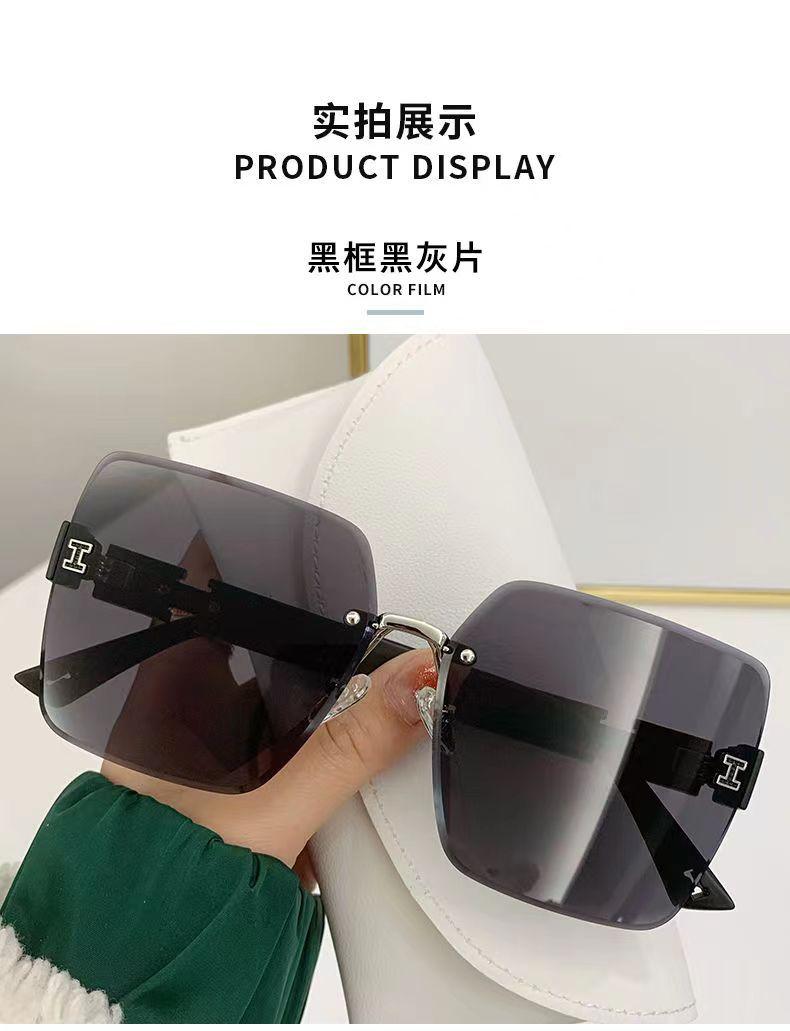 Nuevas Gafas de Sol Cuadradas de Gama Alta con Borde Cortado sin Marco Douyin 2023, Gafas de Sol de Moda Europeas y Americanas de Celebridad de Internet con Montura Grande al por Mayor