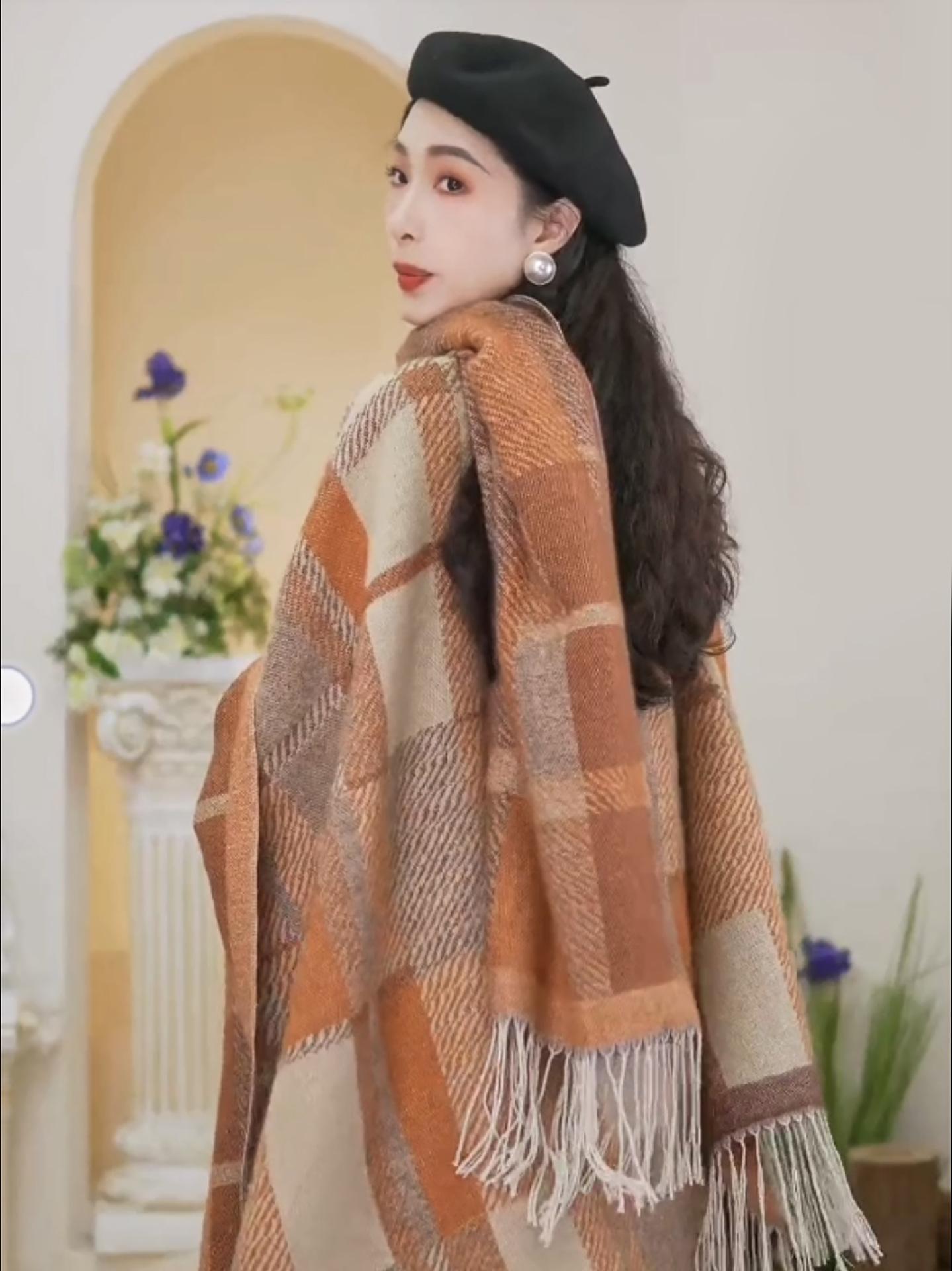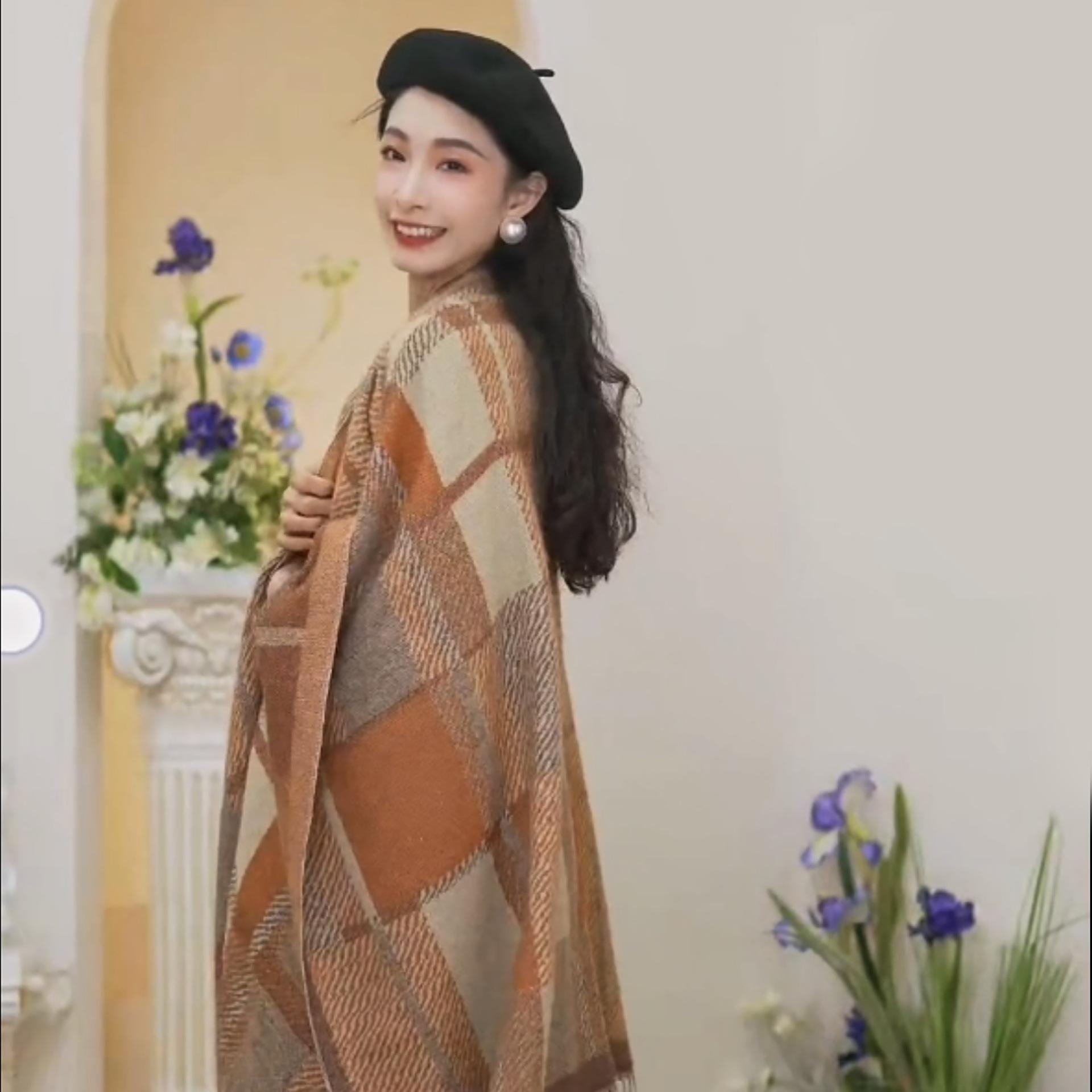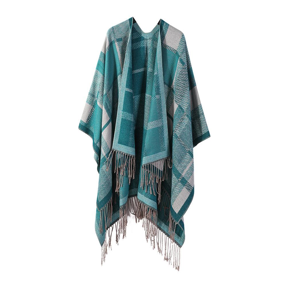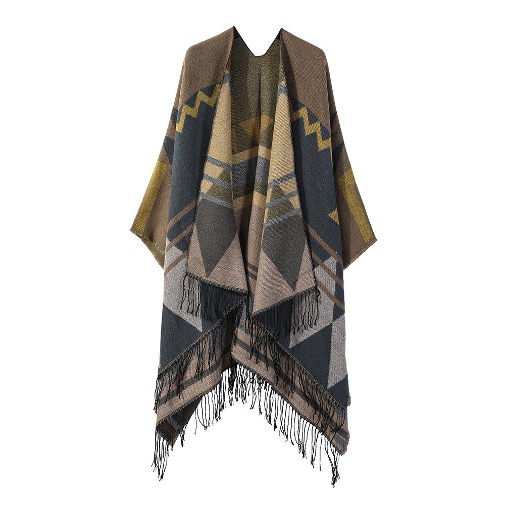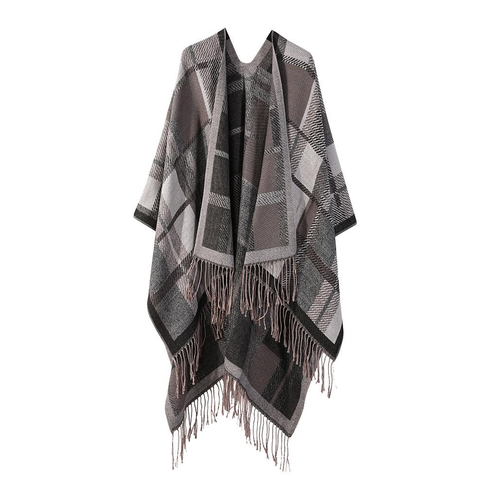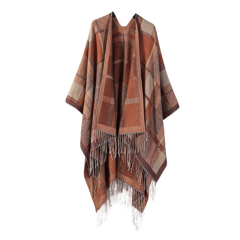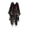 Chal de estilo étnico de otoño, prenda exterior, nuevo estilo de otoño e invierno, chal con borlas, jersey grueso, capa de punto, bufanda a cuadros para mujer