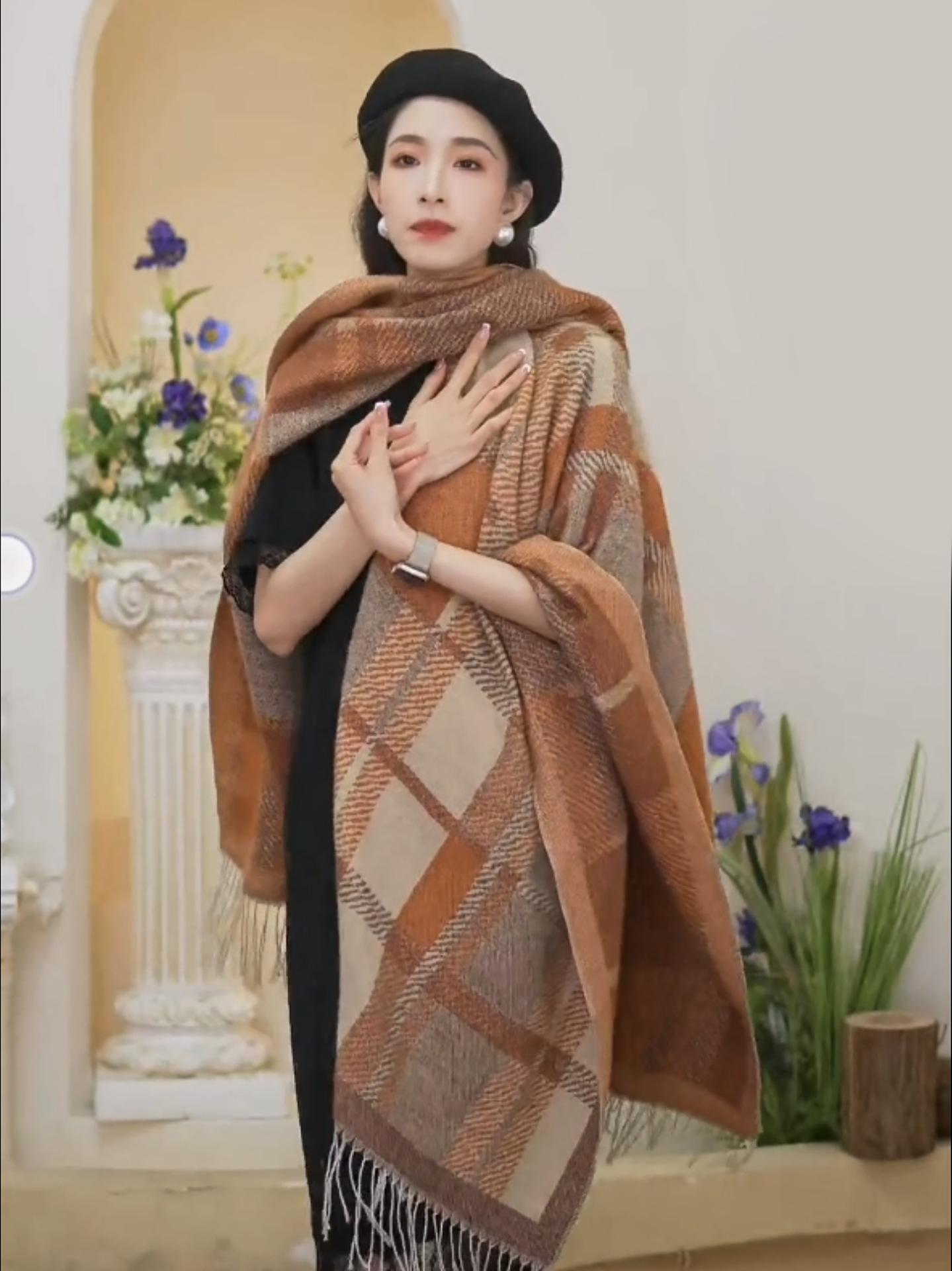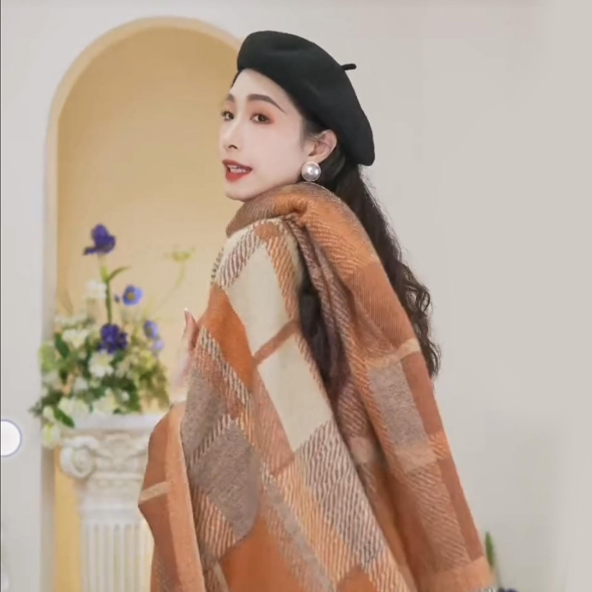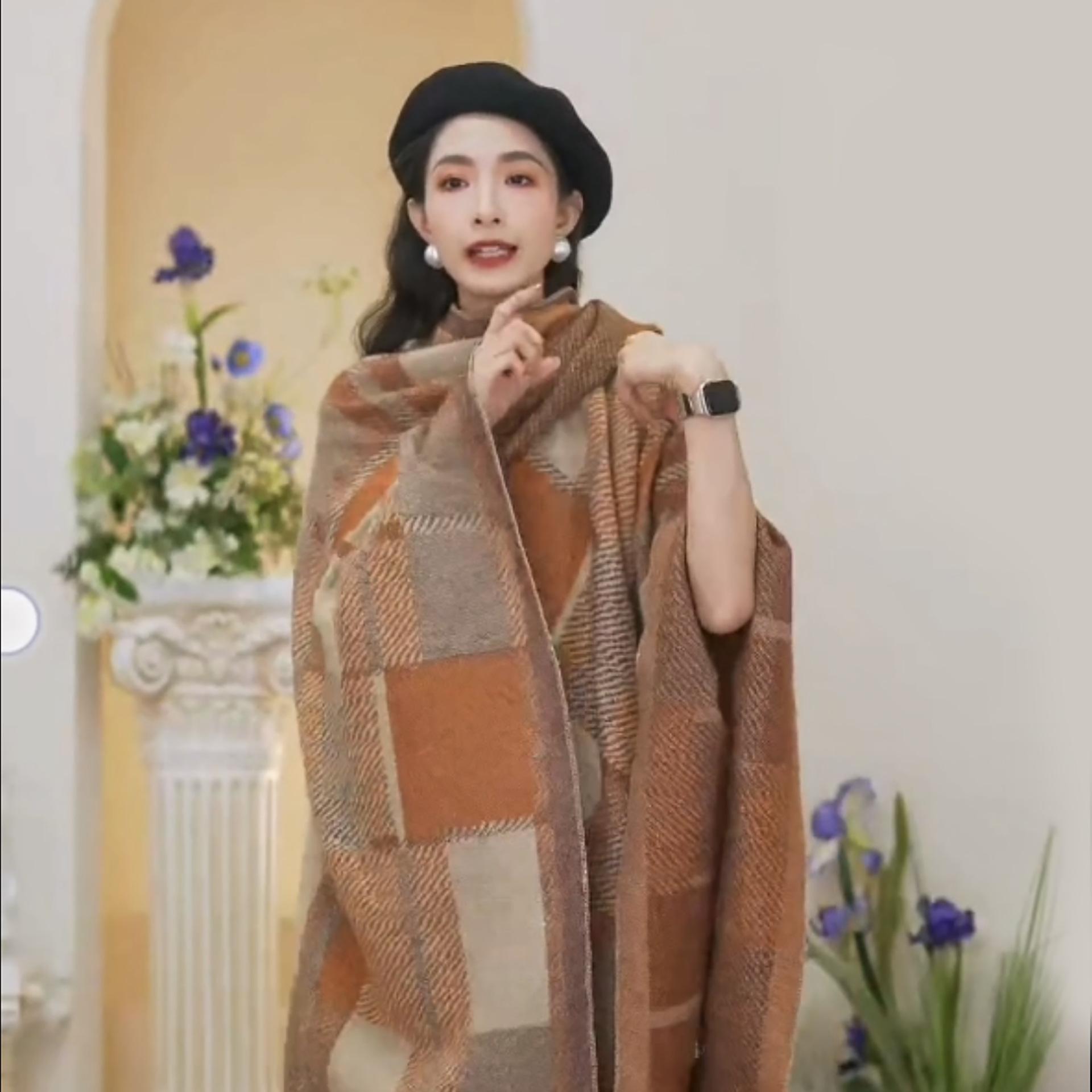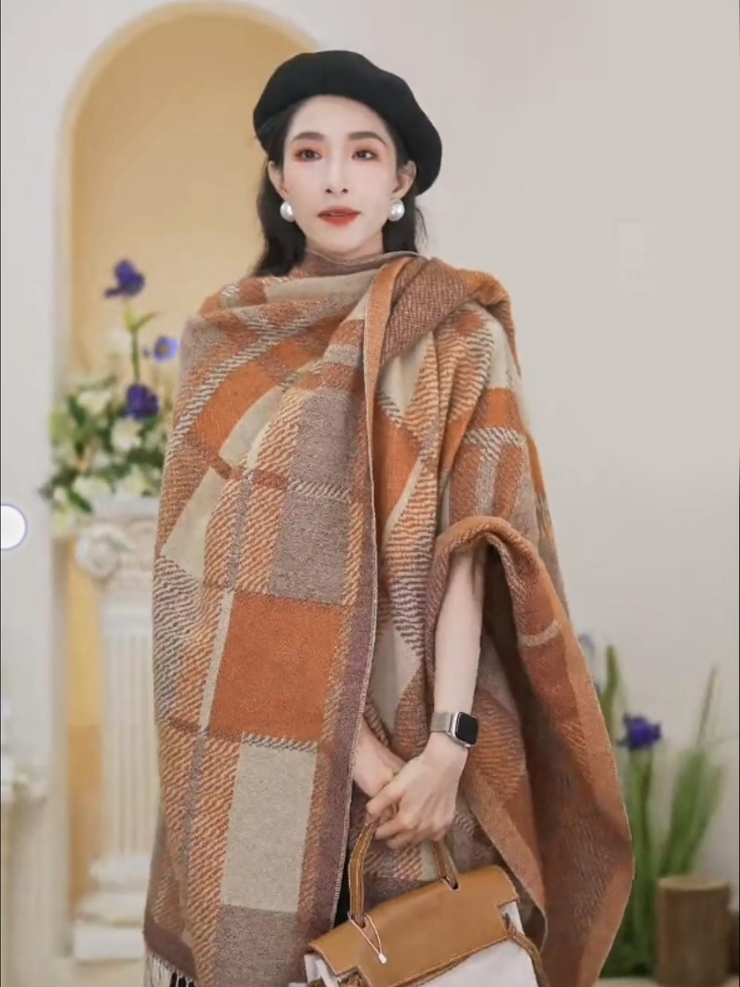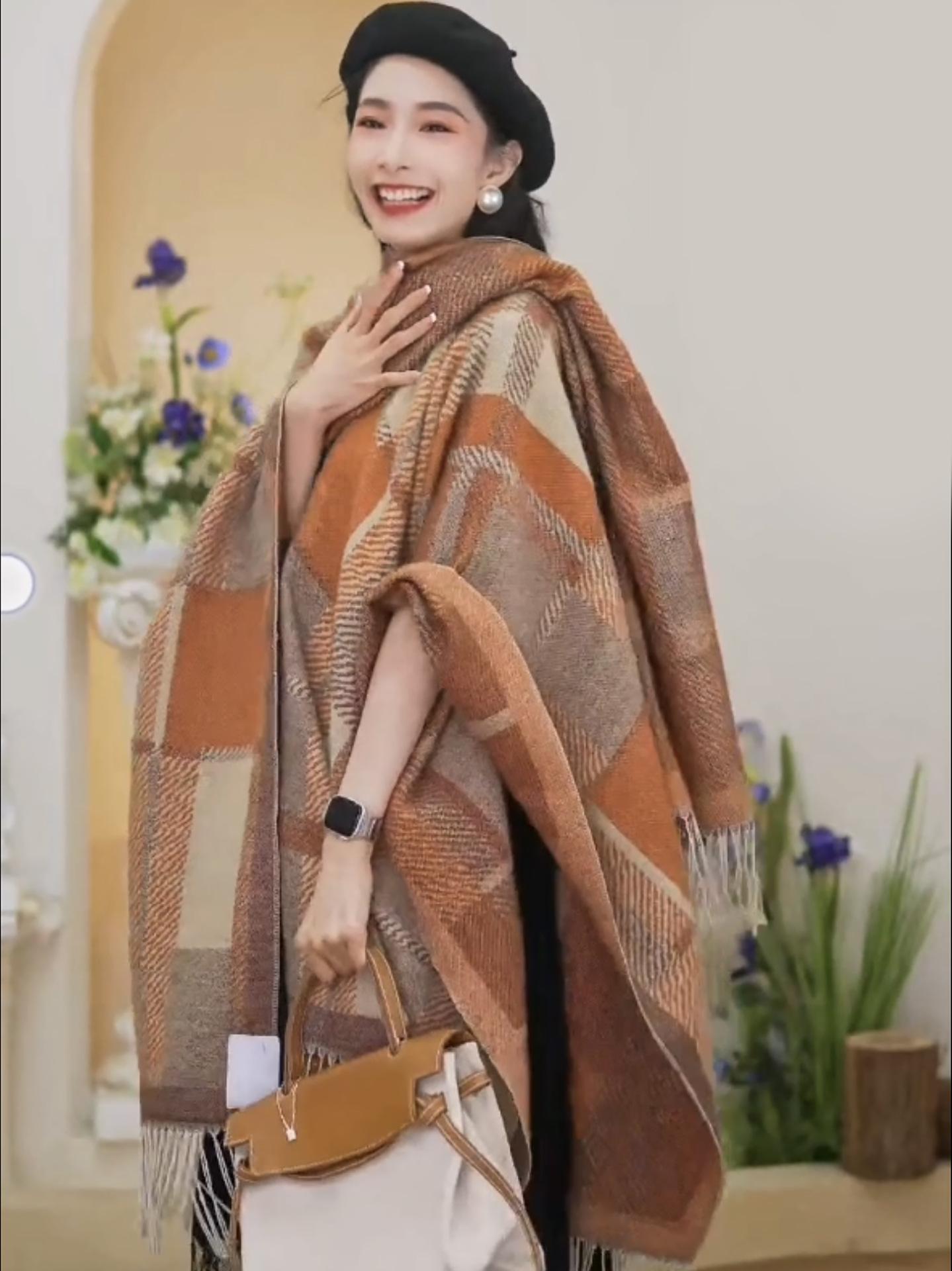Chal de estilo étnico de otoño, prenda exterior, nuevo estilo de otoño e invierno, chal con borlas, jersey grueso, capa de punto, bufanda a cuadros para mujer