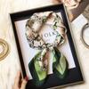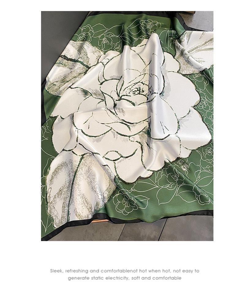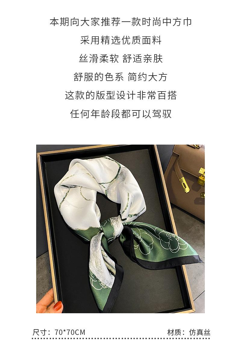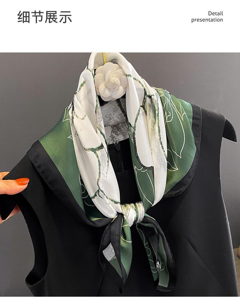 Pañuelo de seda cuadrado pequeño para mujer, de alta gama, con diseño de camelia verde, ideal para combinar con camisas y turbante.