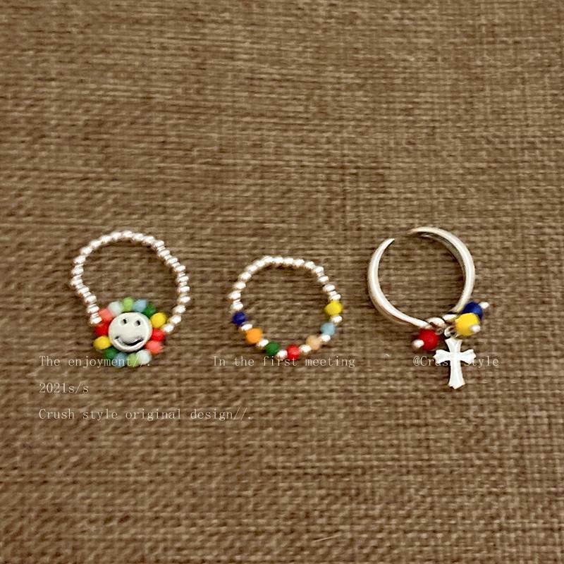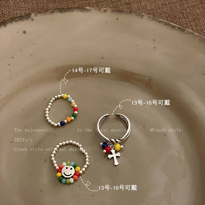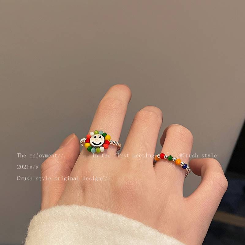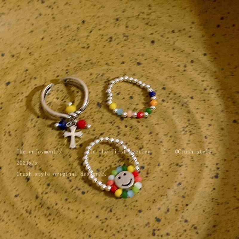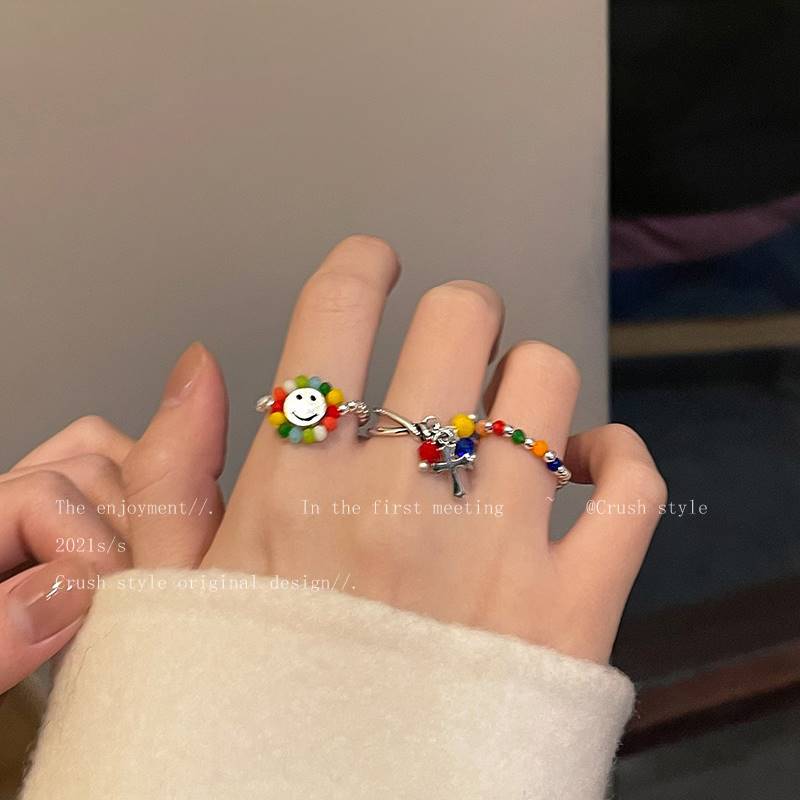 Anillo ajustable con apertura en cruz para mujer, sencillo, moderno, distintivo, colorido, con cuentas, anillo liso con cara sonriente, anillo para el dedo.