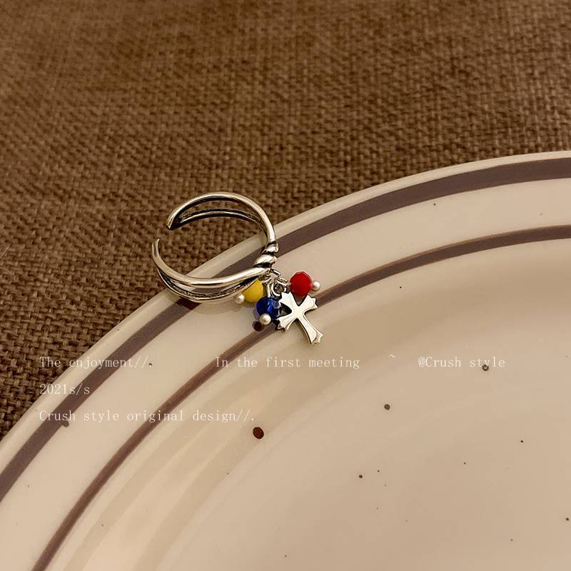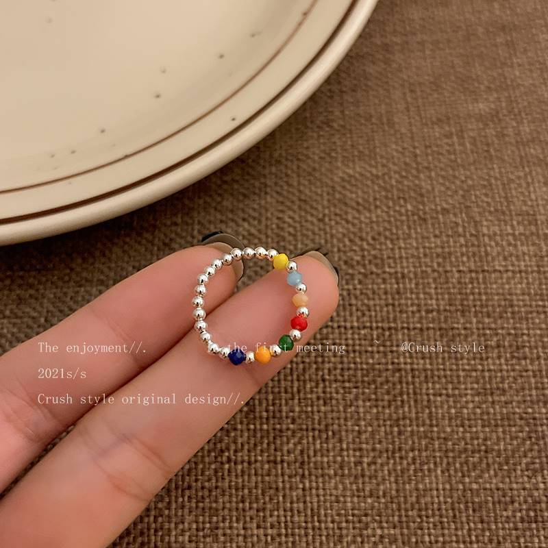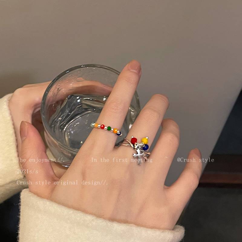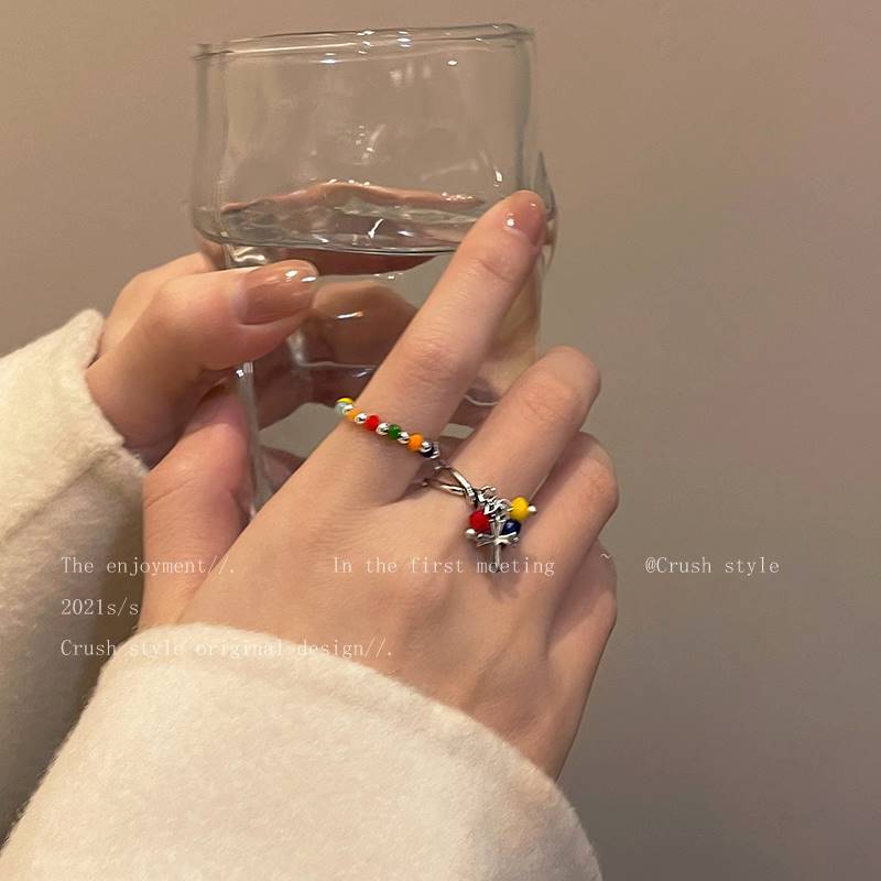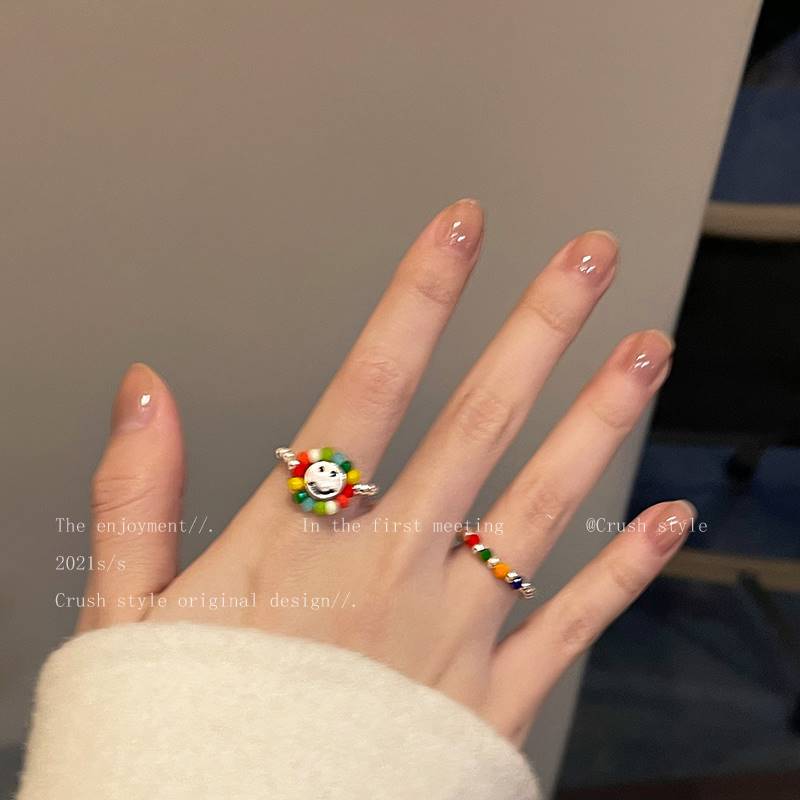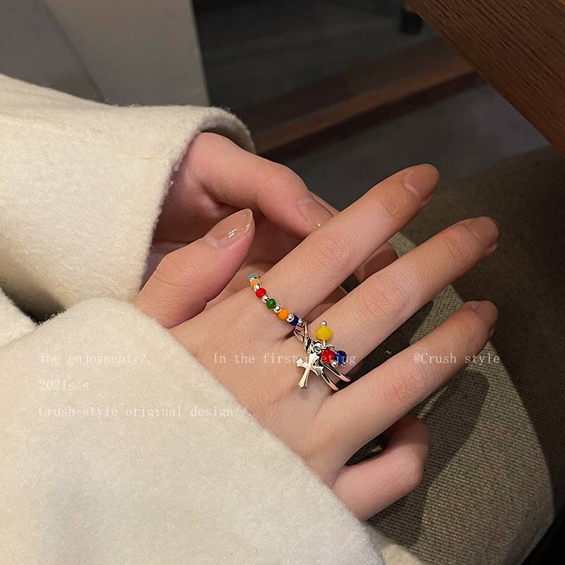 Anillo ajustable con apertura en cruz para mujer, sencillo, moderno, distintivo, colorido, con cuentas, anillo liso con cara sonriente, anillo para el dedo.
