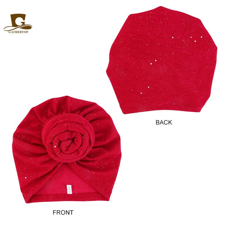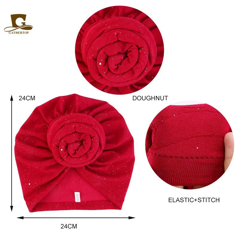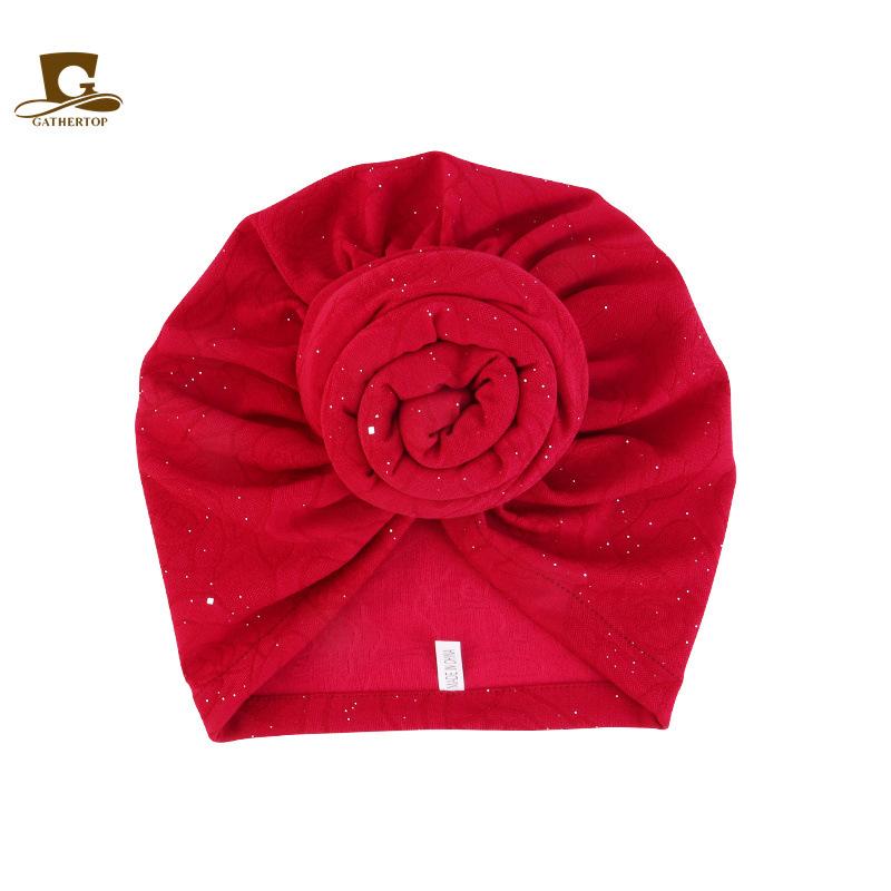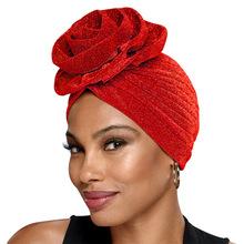 Nuevo Pañuelo para la Cabeza de Lurex con Flor Grande Sombrero Indio Amazon Fuente de Venta Caliente TJM-322 Estilo Étnico Suelto