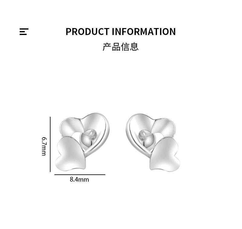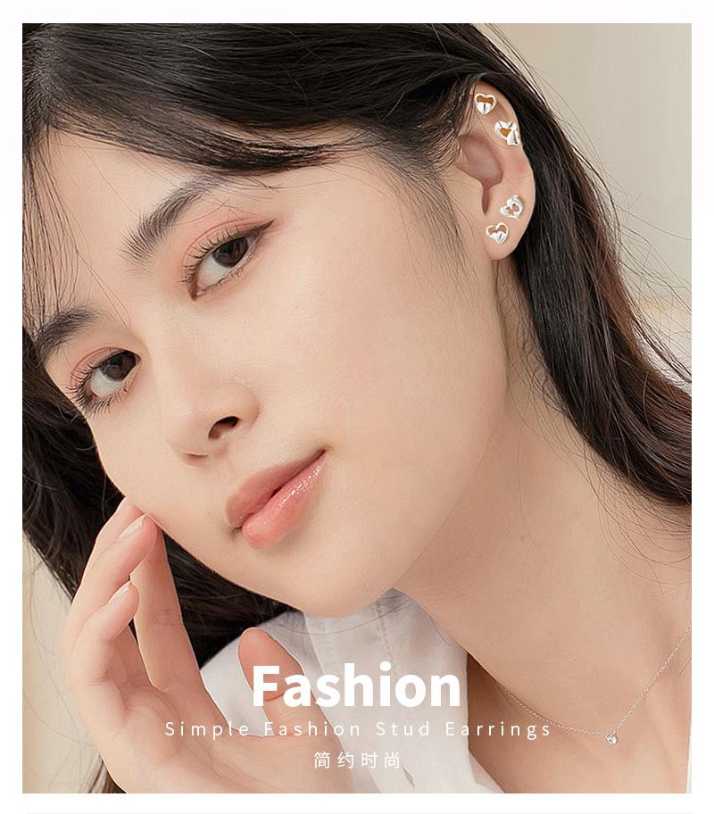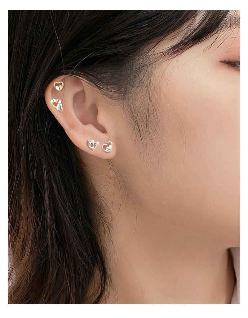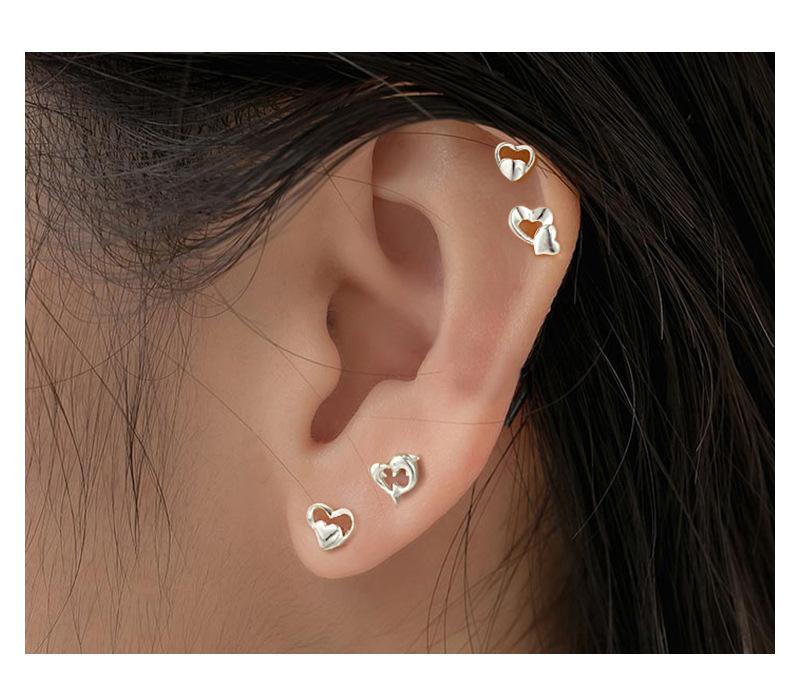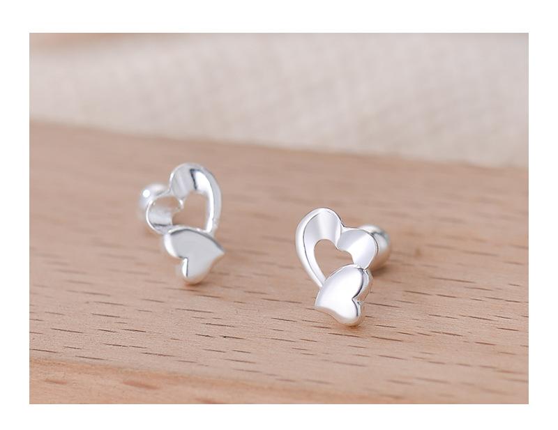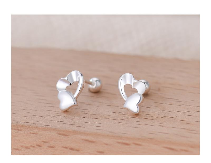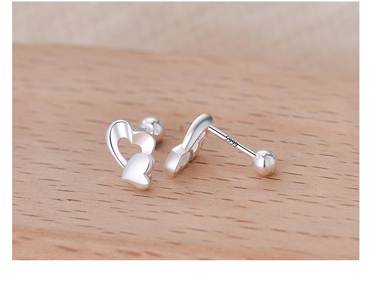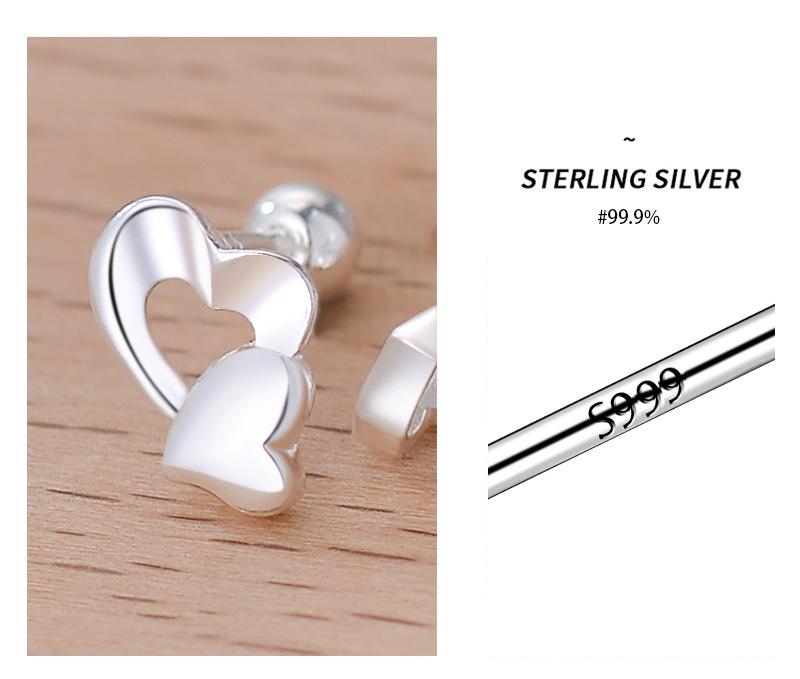 Aretes de Plata Pura 999 para Perforación de Oreja, Aretes de Tuerca con Forma de Corazón, Aretes de Lujo Ligero de Alta Gama con Cierre de Rosca, Venta al por Mayor de Otoño e Invierno