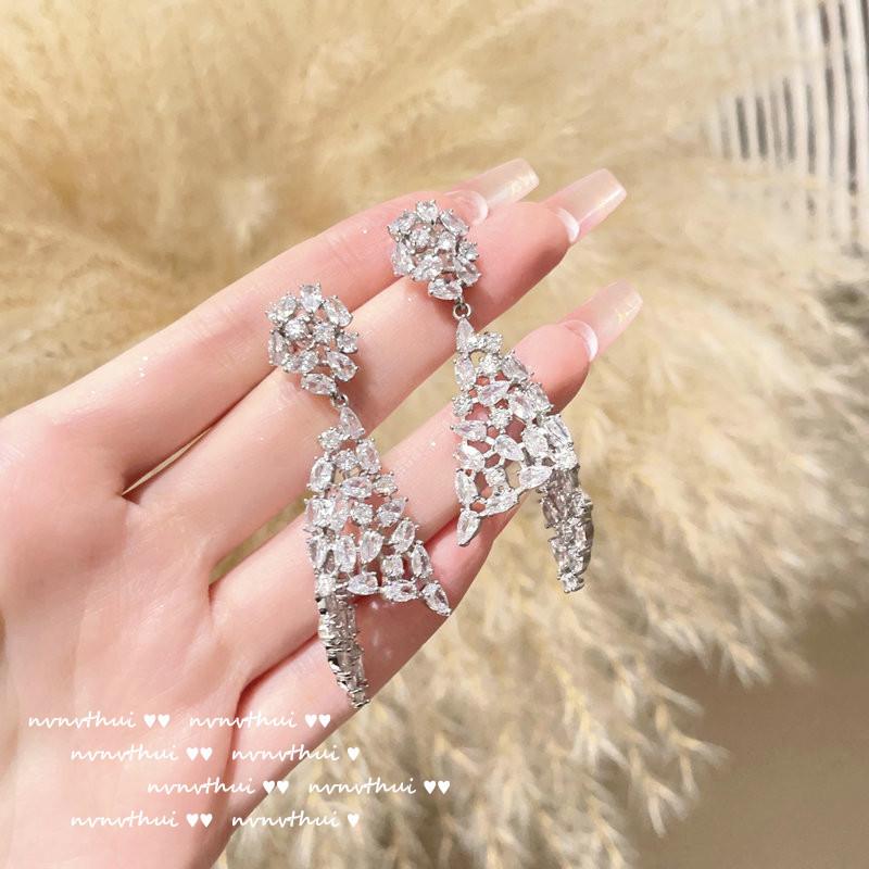 395Y Irregular Flower Drops Zircon Earrings ~ No Box