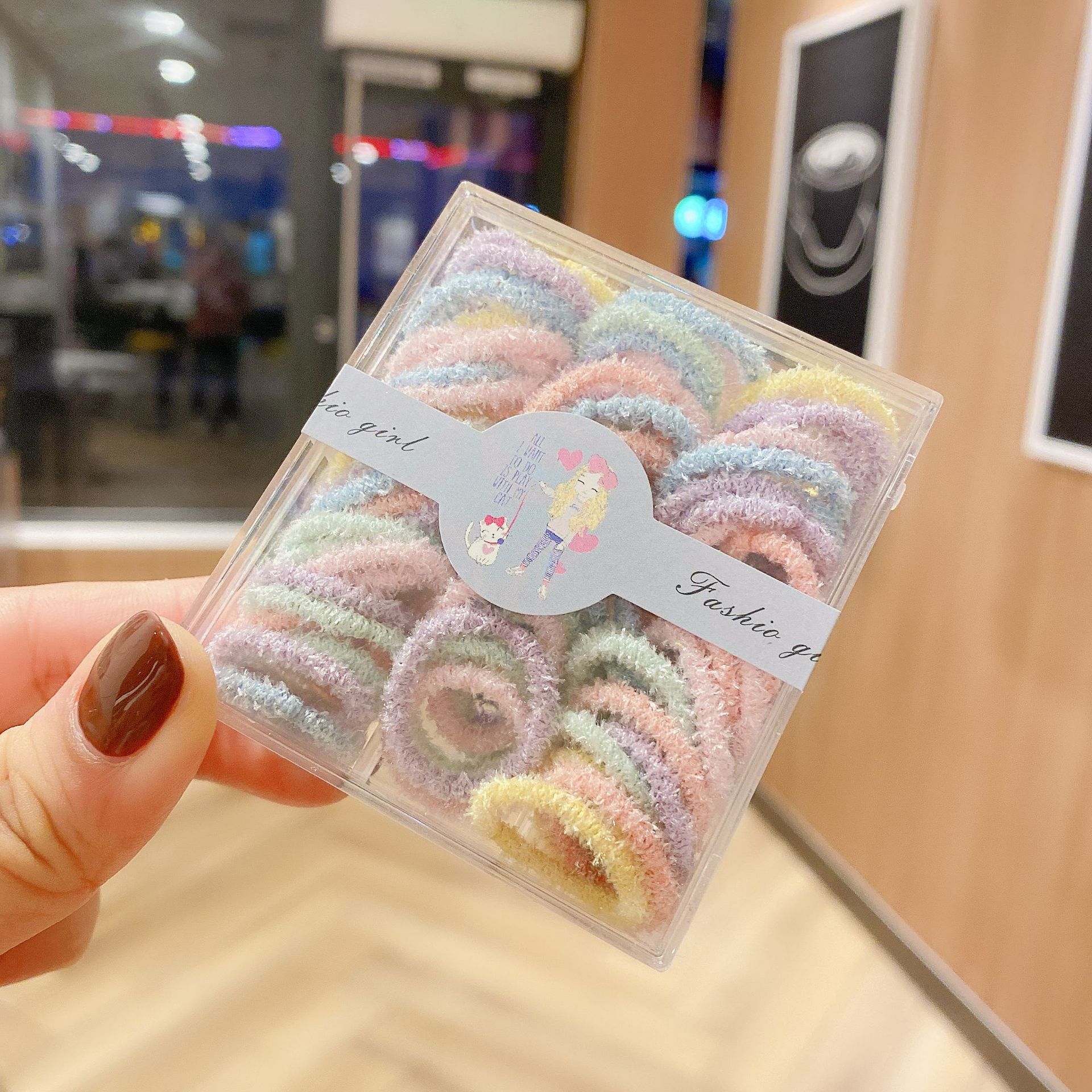 Versión coreana de accesorios para el cabello para niños, aro para el cabello para mujer, cuerda para el cabello de color caramelo en contraste, bola redonda, cola de caballo, cuerda para la cabeza, tocado de princesa, banda de goma