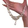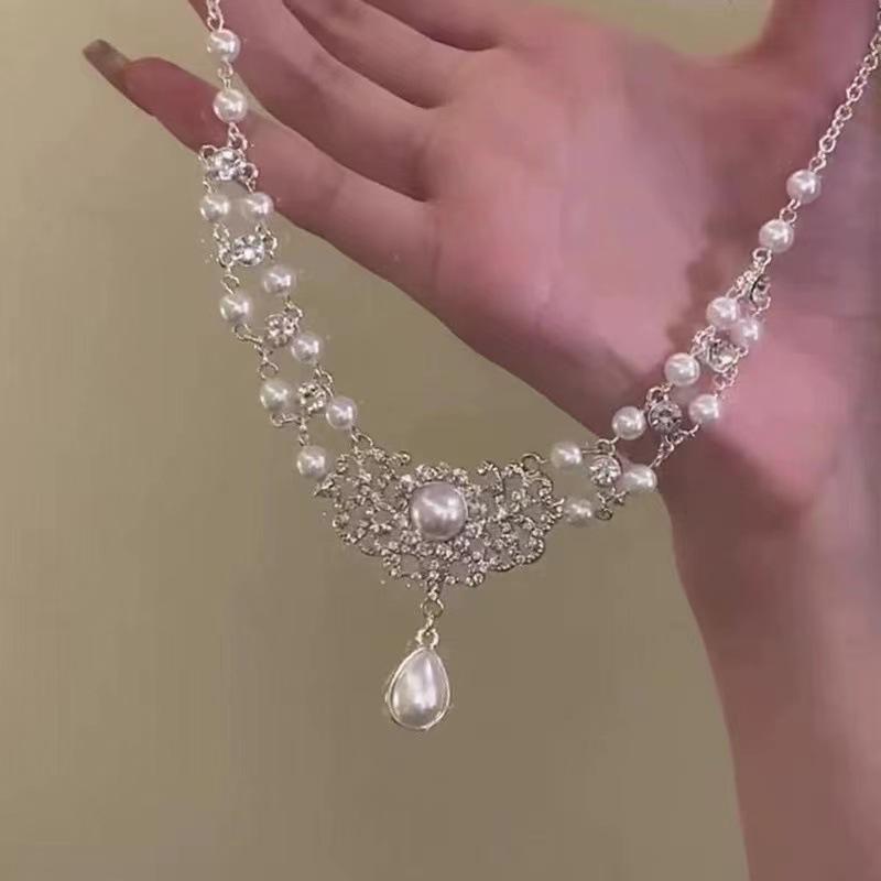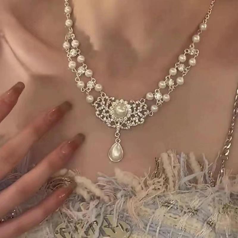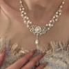 Collar de Perlas de Gota de Agua Francesas Estilo Retro de Palacio de Princesa Clavícula Novia Vestido de Boda Vestido de Noche Collar de Diamantes Zirconia