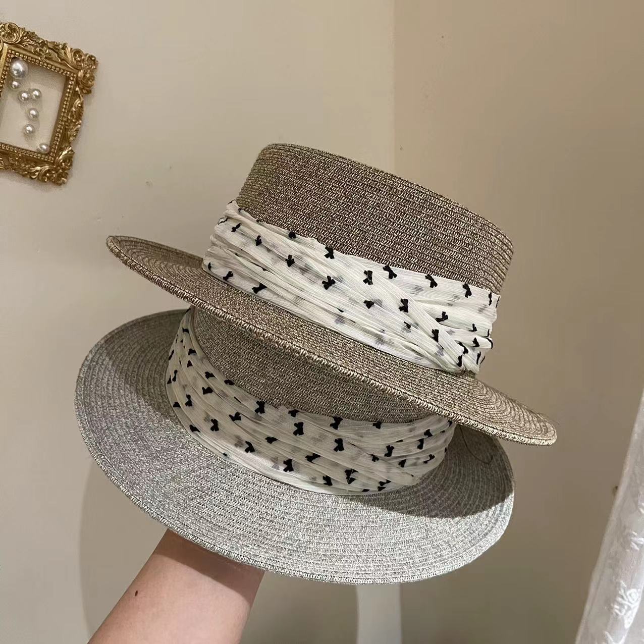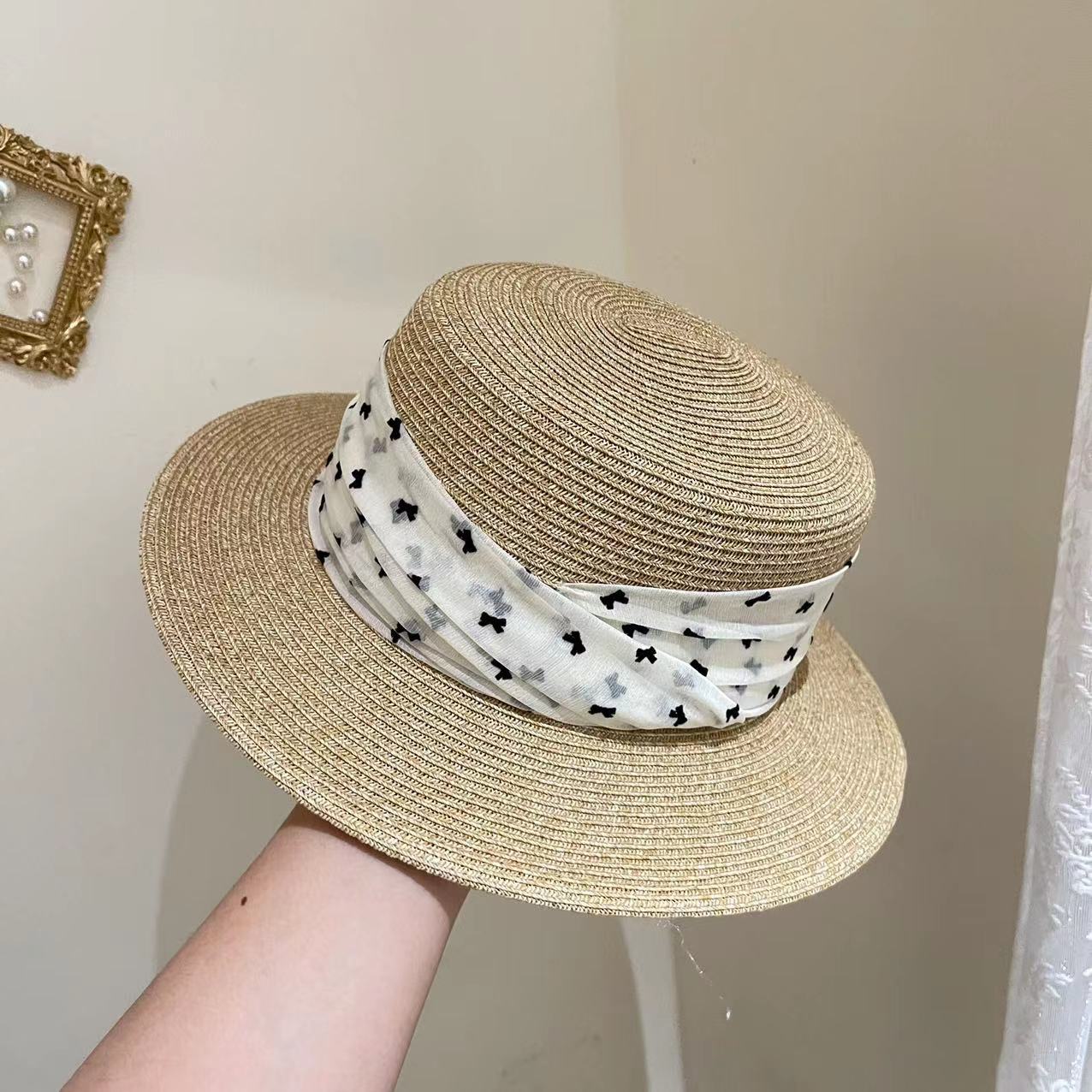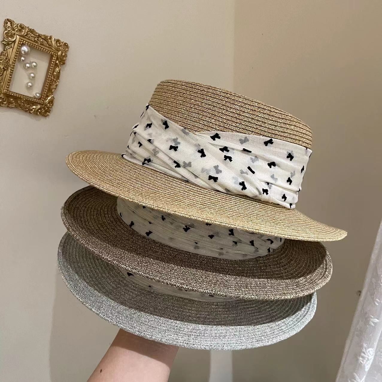 Sombrero de paja de verano para mujer protección solar sombrero de paja elegante lazo cinta sombrero de paja plano ala plana parasol sombrero combinable