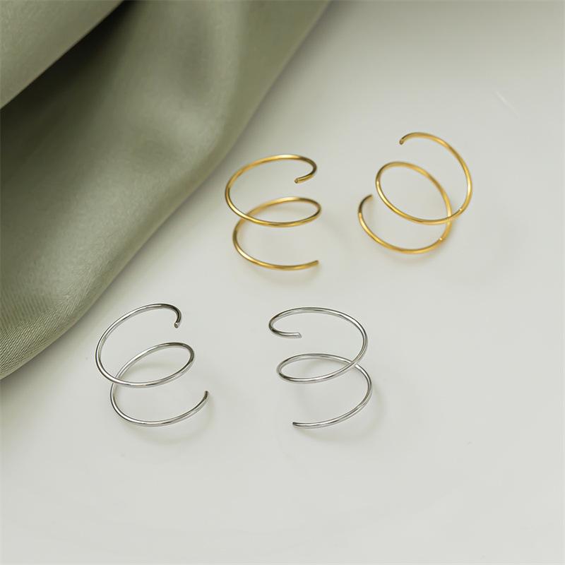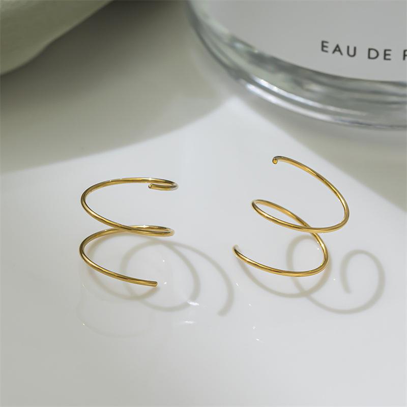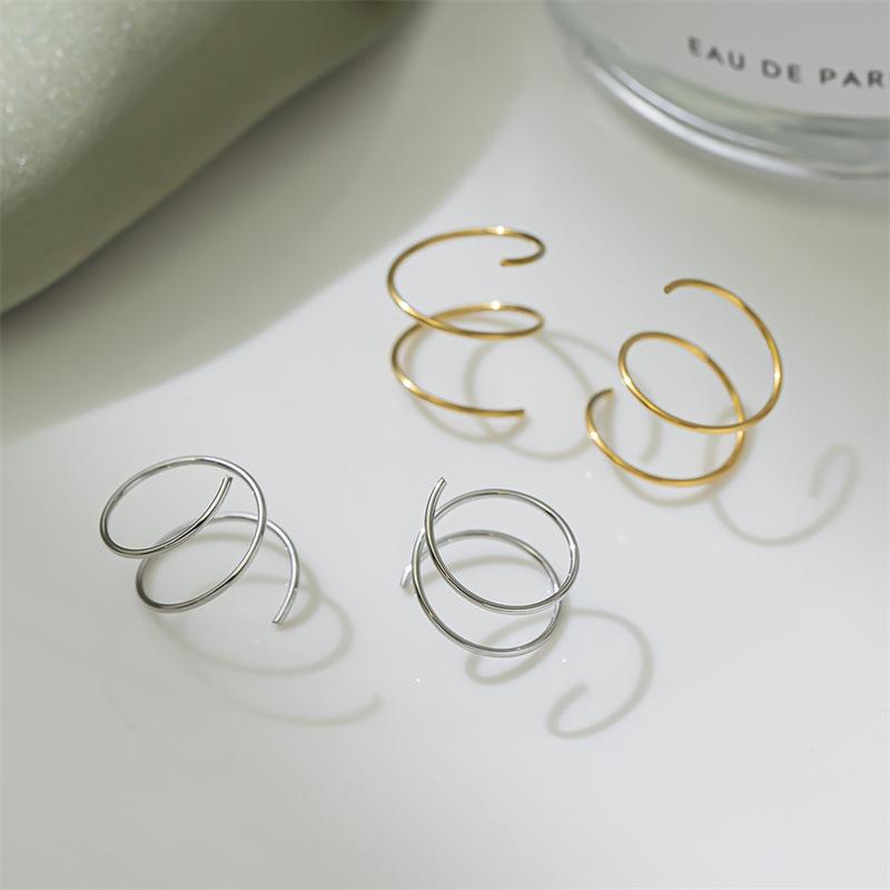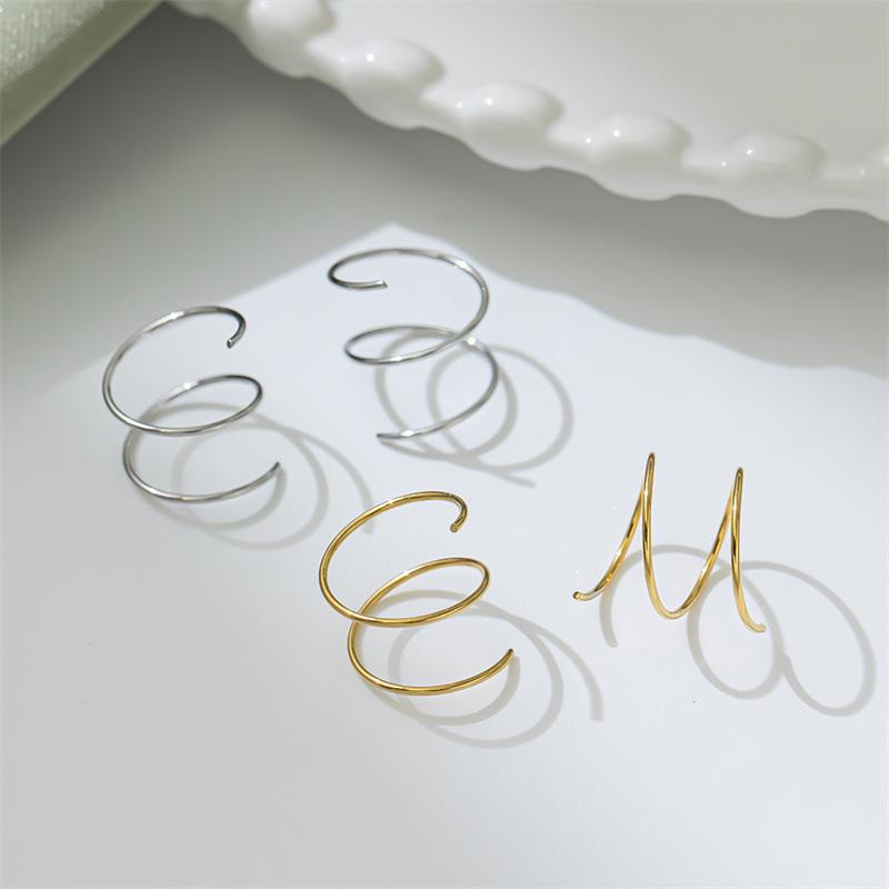 Pendientes de espiral transfronterizos nuevos, joyería de perforación corporal con galvanoplastia, personalidad minimalista, pendientes giratorios en espiral de acero inoxidable