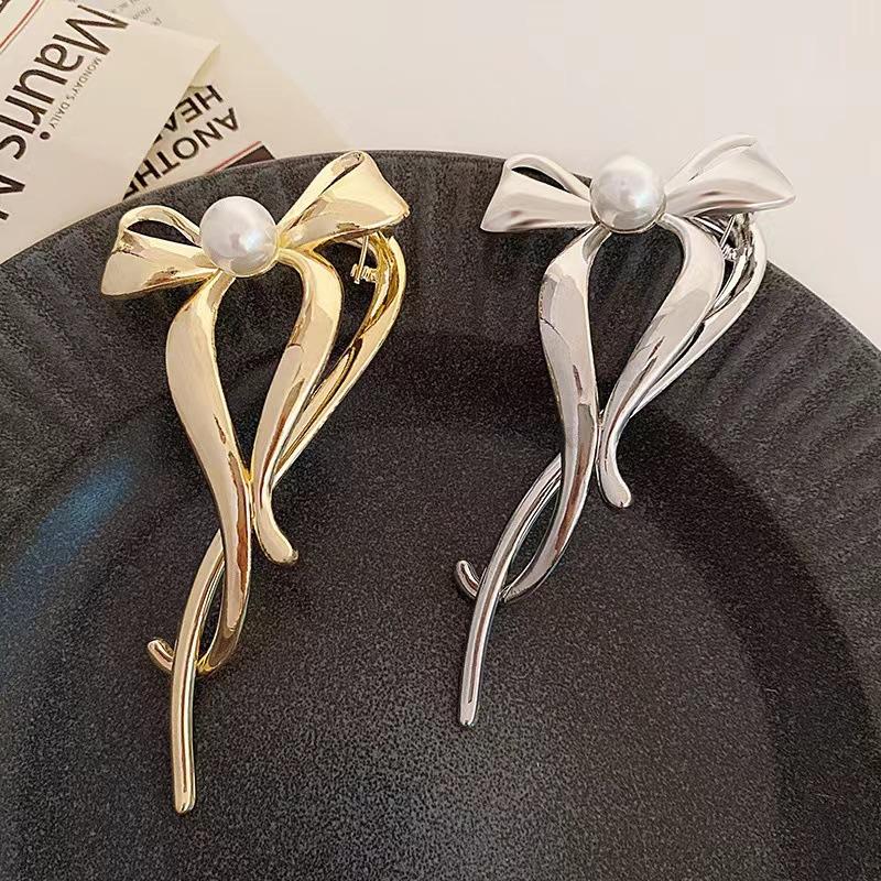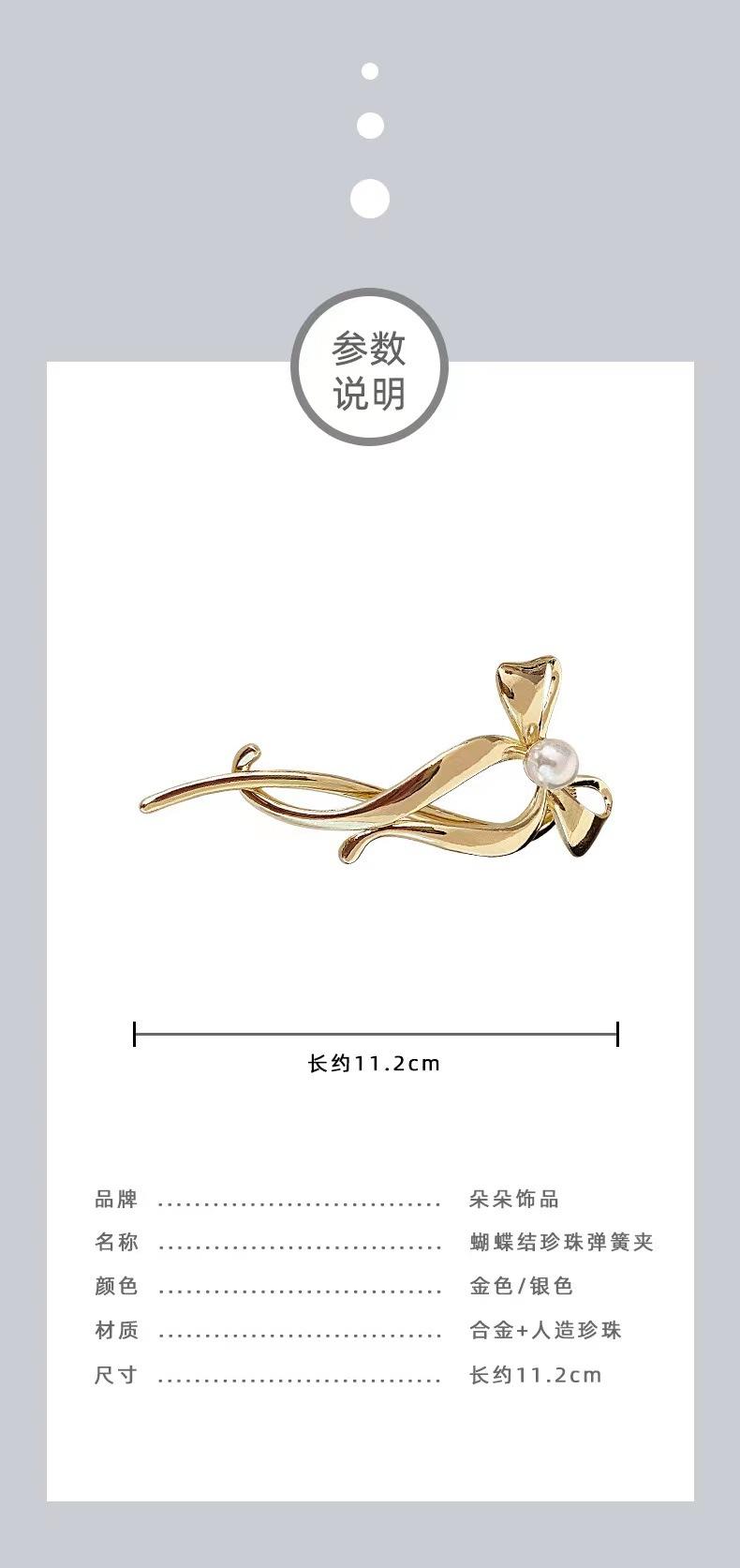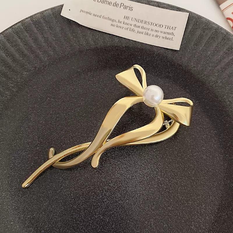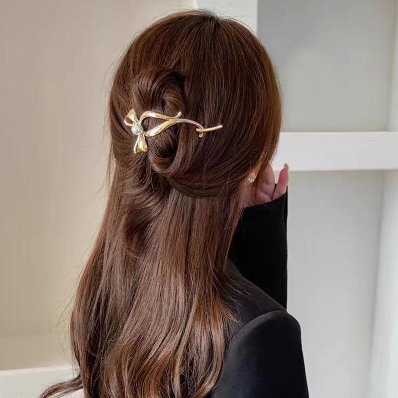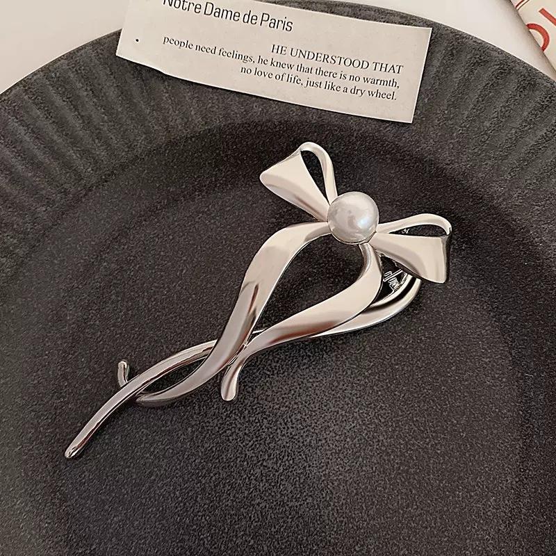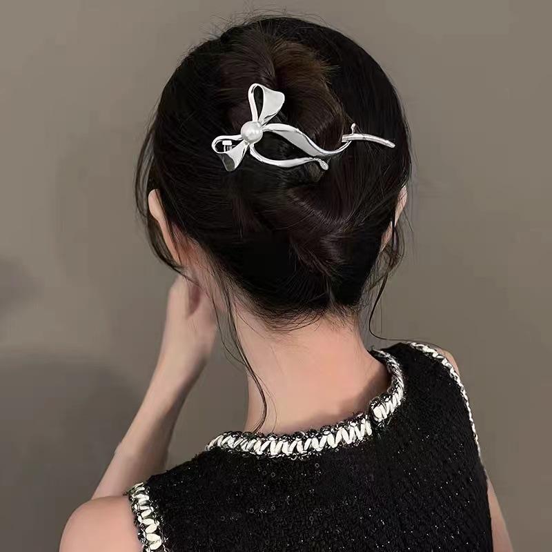 Horquilla con lazo plateado 2023, nueva horquilla con clip trenzado de perla, popular en Internet, para la parte posterior de la cabeza.