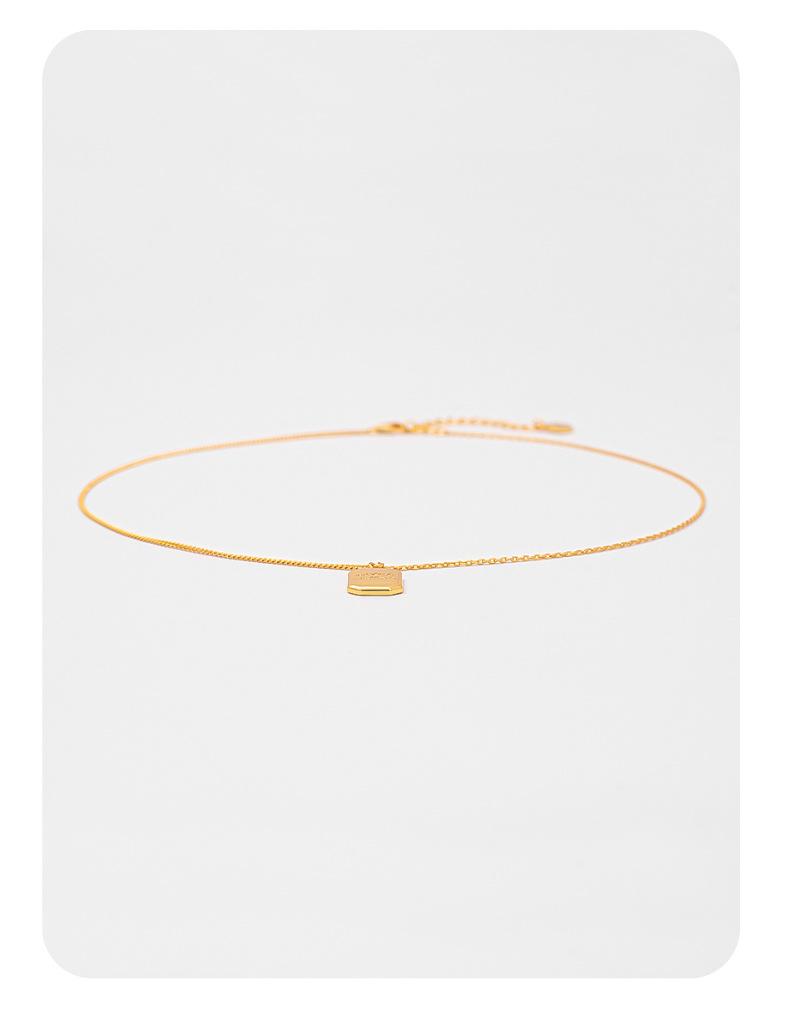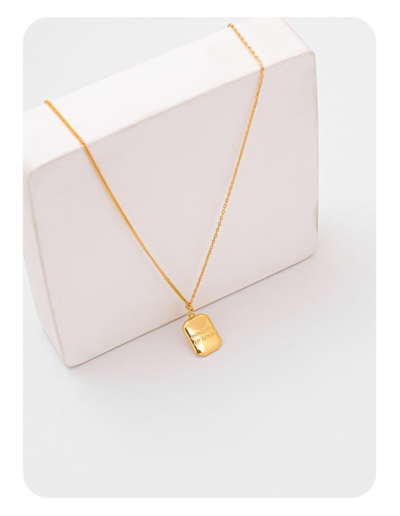 Collar con colgante cuadrado pequeño Love para mujer, cadena de clavícula asimétrica de lujo, ligera y combinable, chapada en latón y oro de 18 quilates.