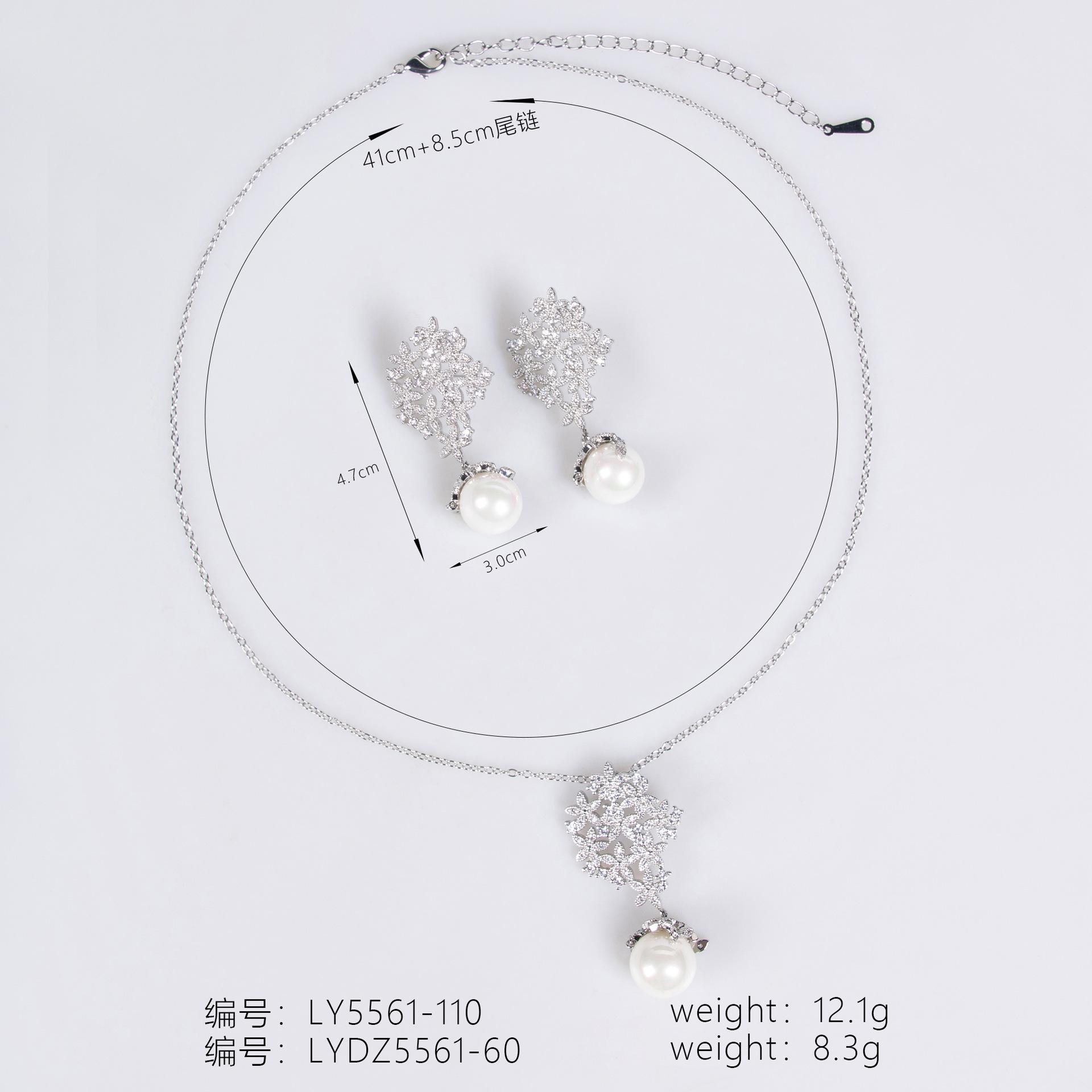 Conjunto de joyería para traje de novia de dos piezas, collar y pendientes de perlas de alta gama de estilo europeo y americano para el viaje diario.