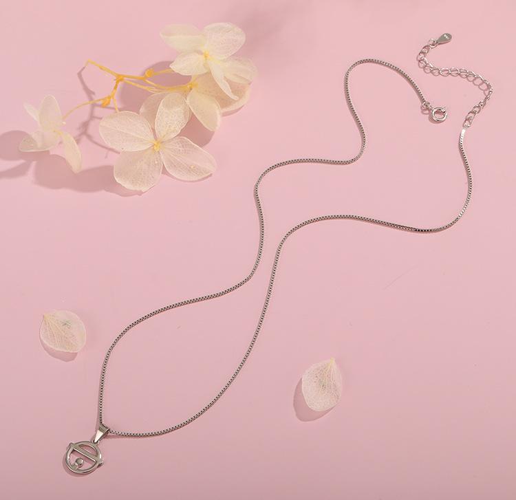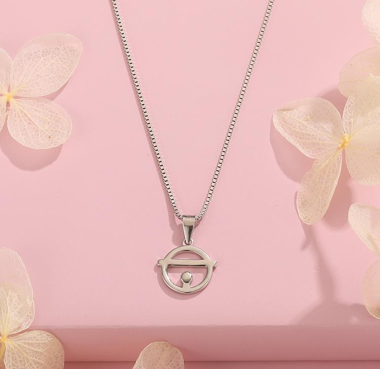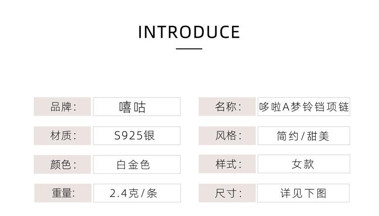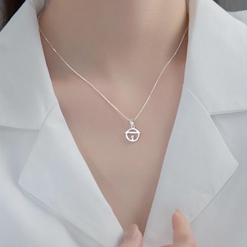 Collar de Plata de Ley 925 Hip-Hop D0417 para Mujer, Cadena Clavicular de Campana Personalizada Doraemon, Joyería de Plata con Colgante de Gato Jingle