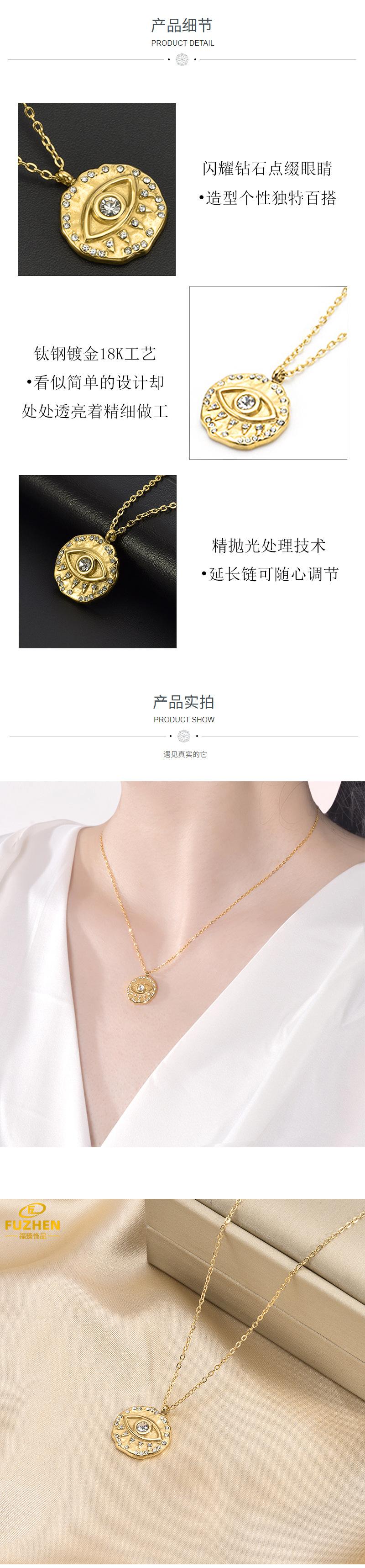 Colgante de ojo de diablo de acero inoxidable con accesorios de personalidad, collar de galvanoplastia de 18 quilates que no se decolora, joyería de acero de titanio para mujer al por mayor