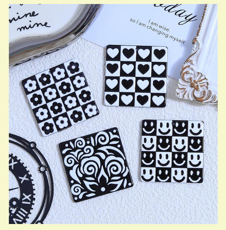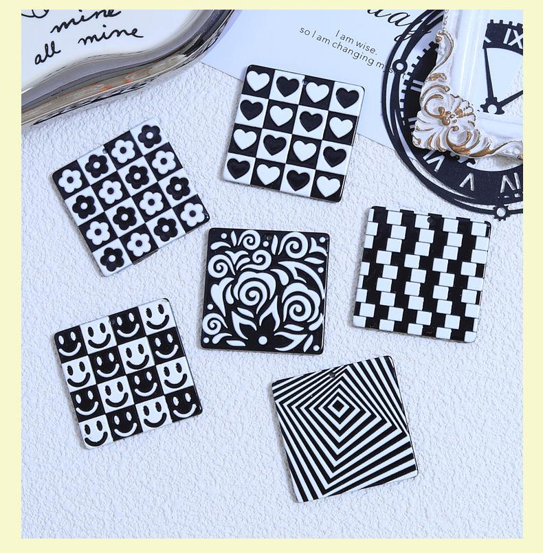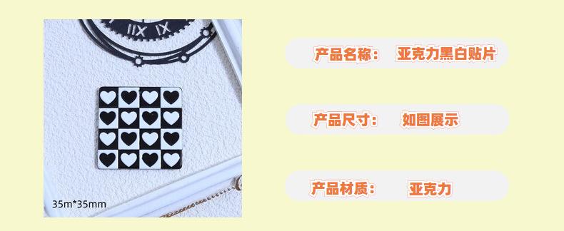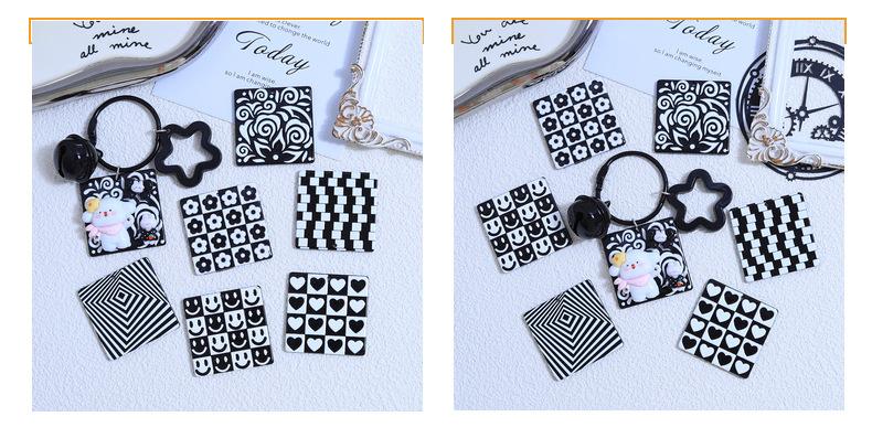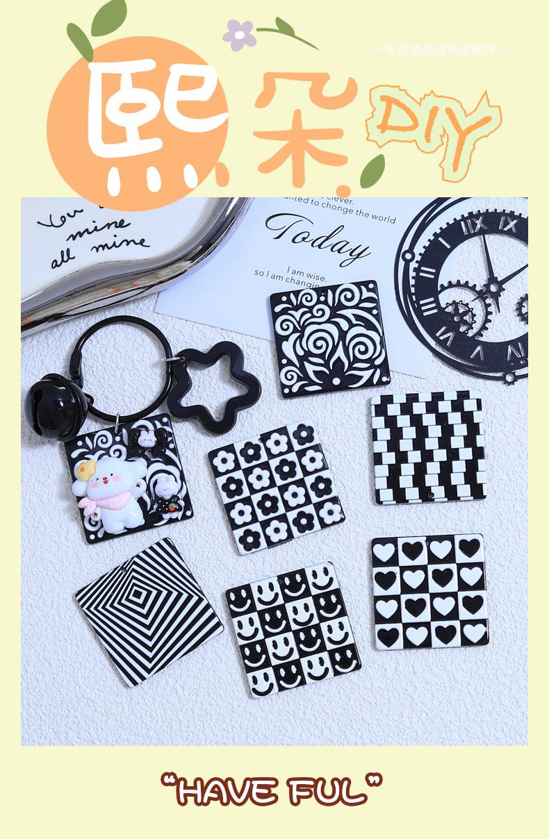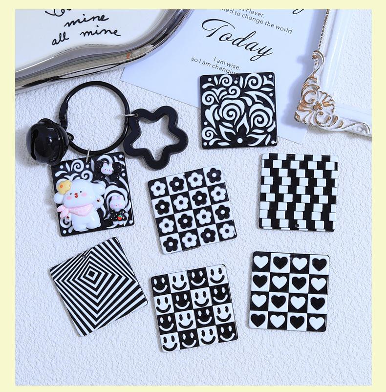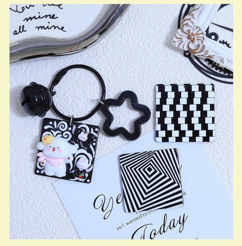 Parche acrílico en blanco y negro de dibujos animados, accesorios de joyería hechos a mano, llavero colgante de alto sentido, material al por mayor