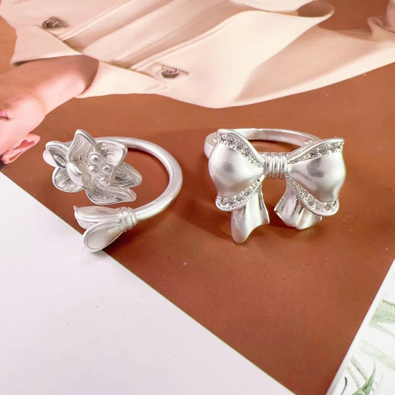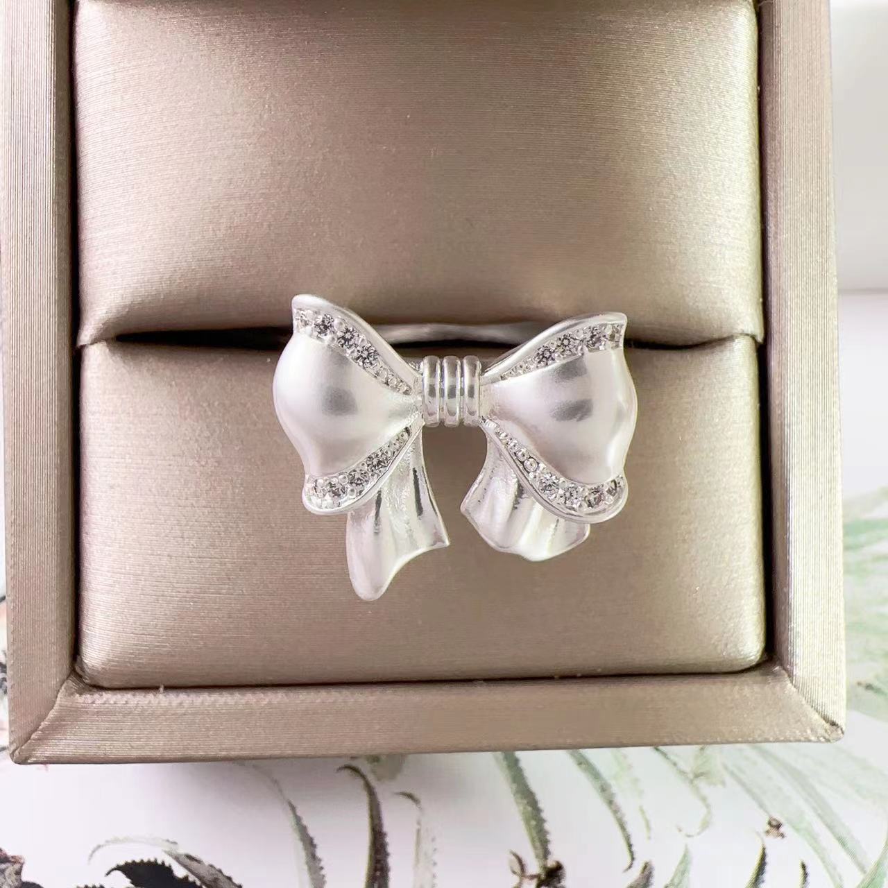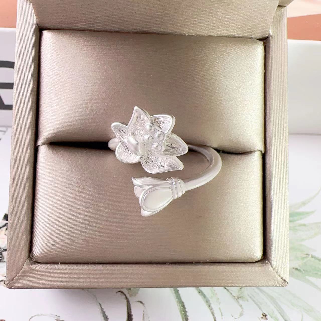 Anillo de loto mate plateado lazo vacío anillo de circonio incrustado esmerilado moda femenina exquisito para todo anillo abierto