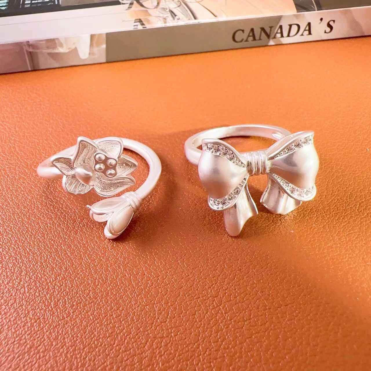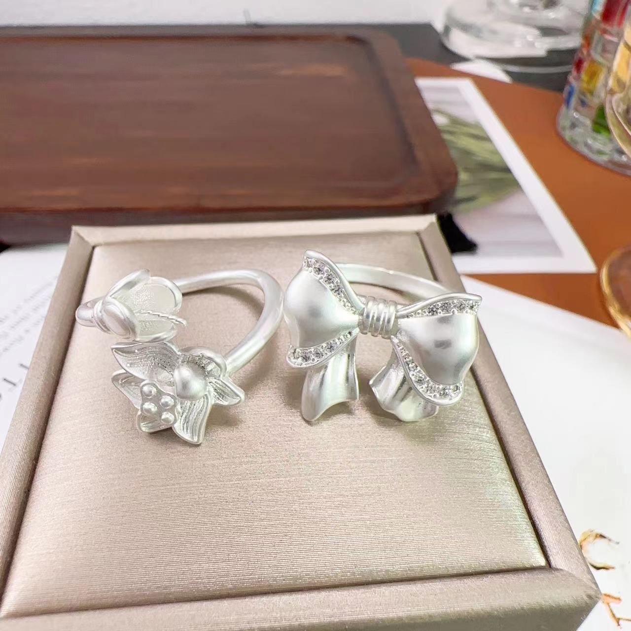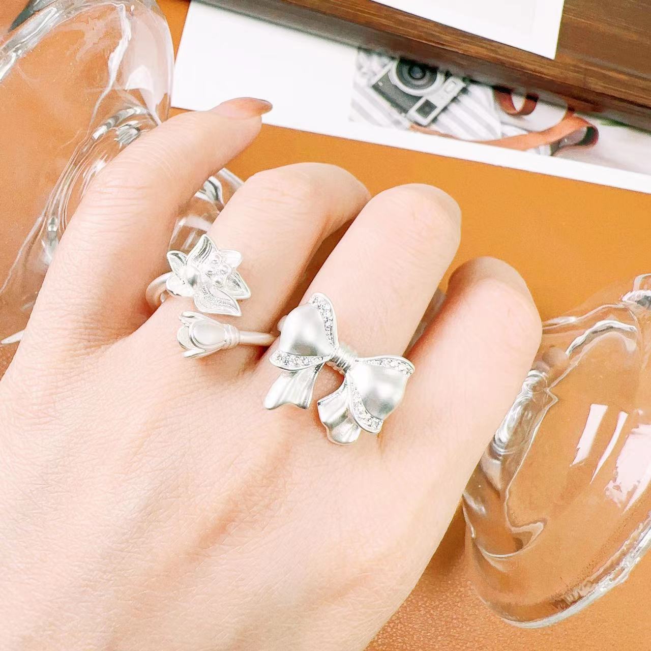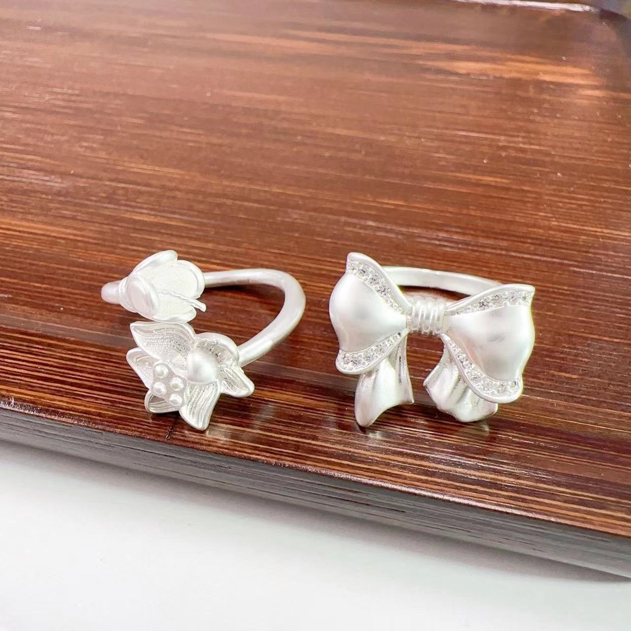 Anillo de loto mate plateado lazo vacío anillo de circonio incrustado esmerilado moda femenina exquisito para todo anillo abierto
