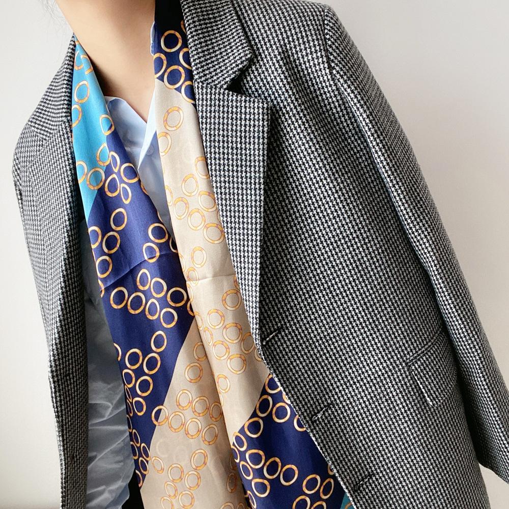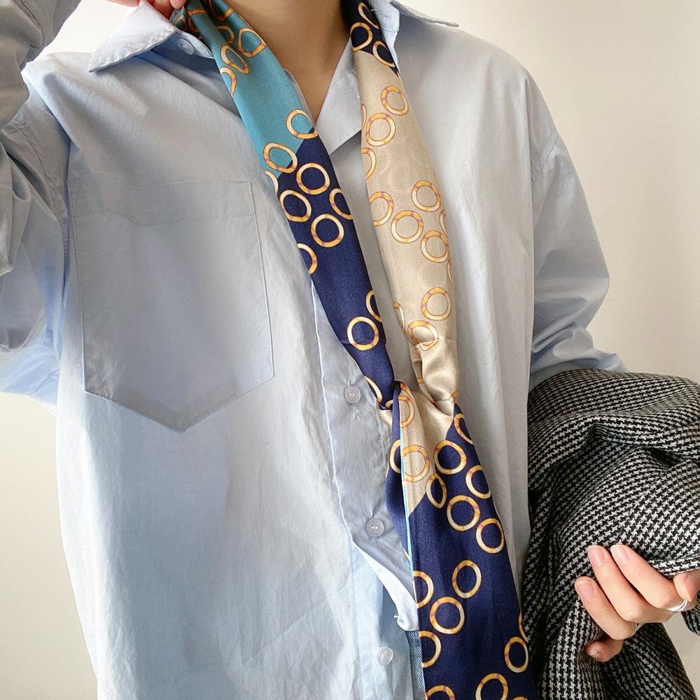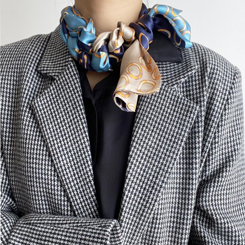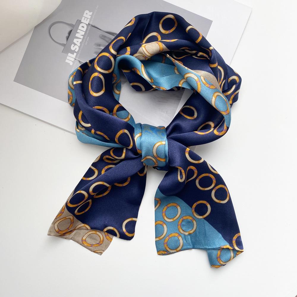 Bufanda Larga de Seda Azul de Lujo Ligero para Mujer Verano Delgada Seda de Morera Bufanda Cinturón Bufanda Larga de Seda de Doble Cara