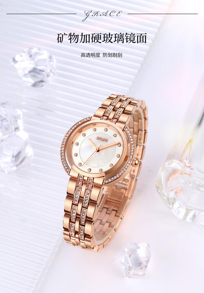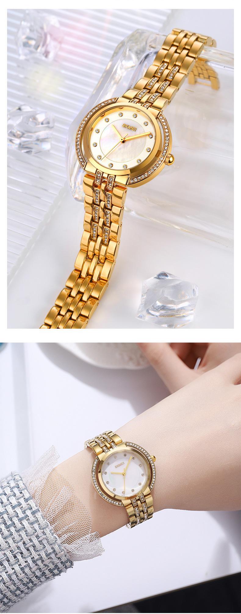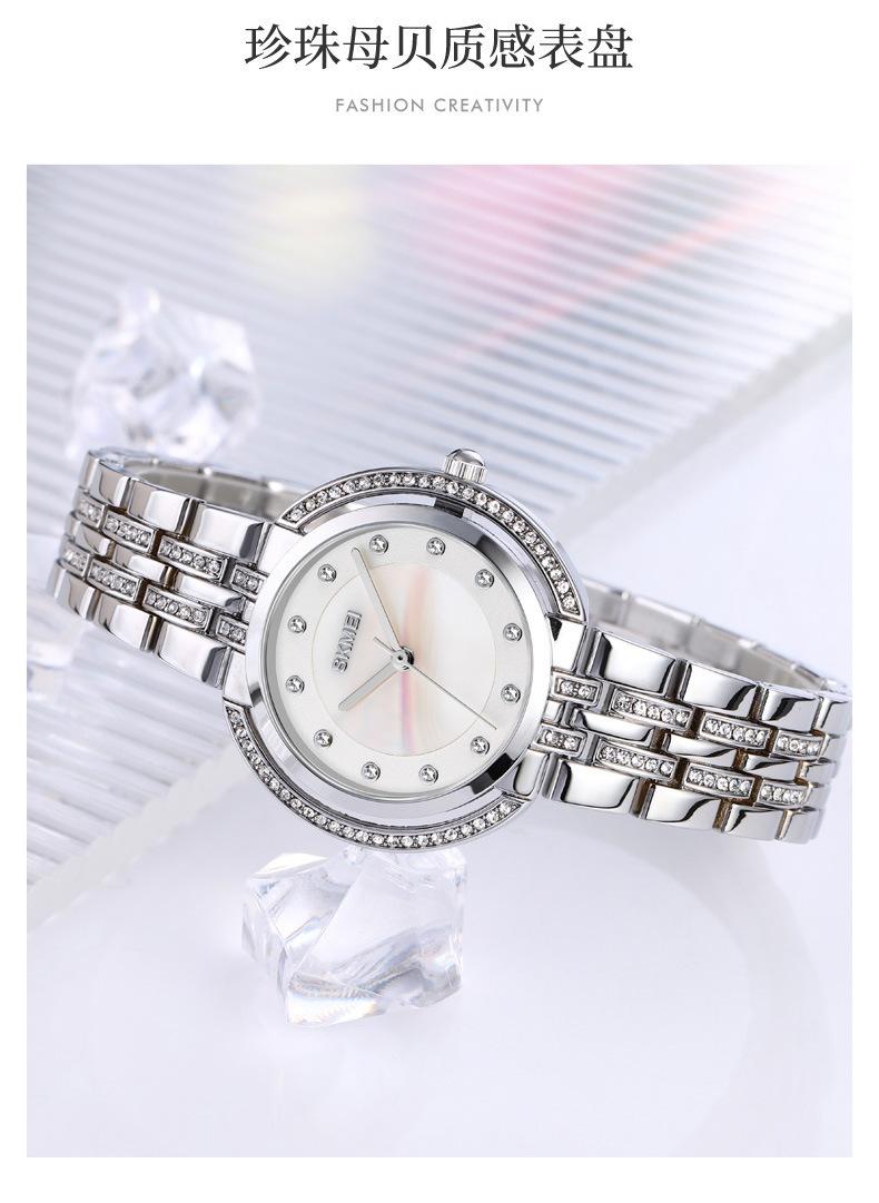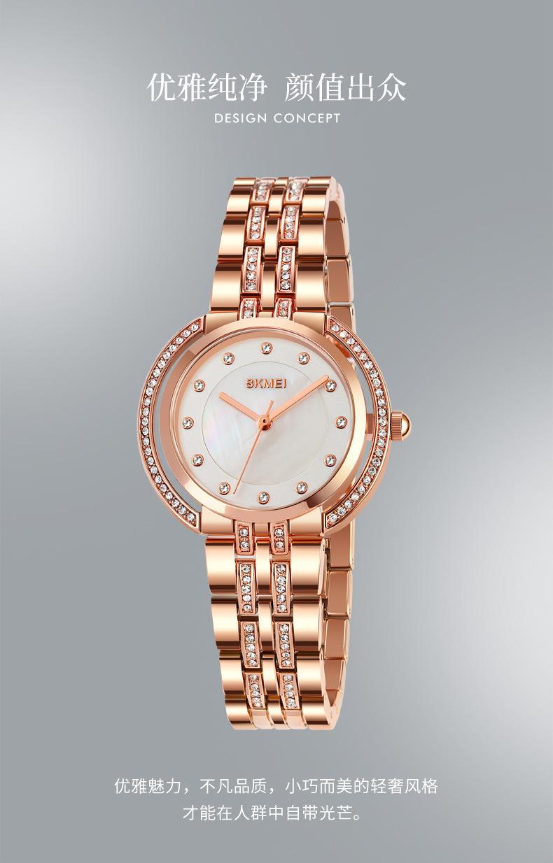 Hermoso reloj de cuarzo Skmei para mujer, elegante, con incrustaciones de diamantes, para estudiantes, con pulsera totalmente combinable.