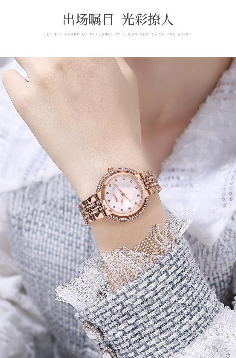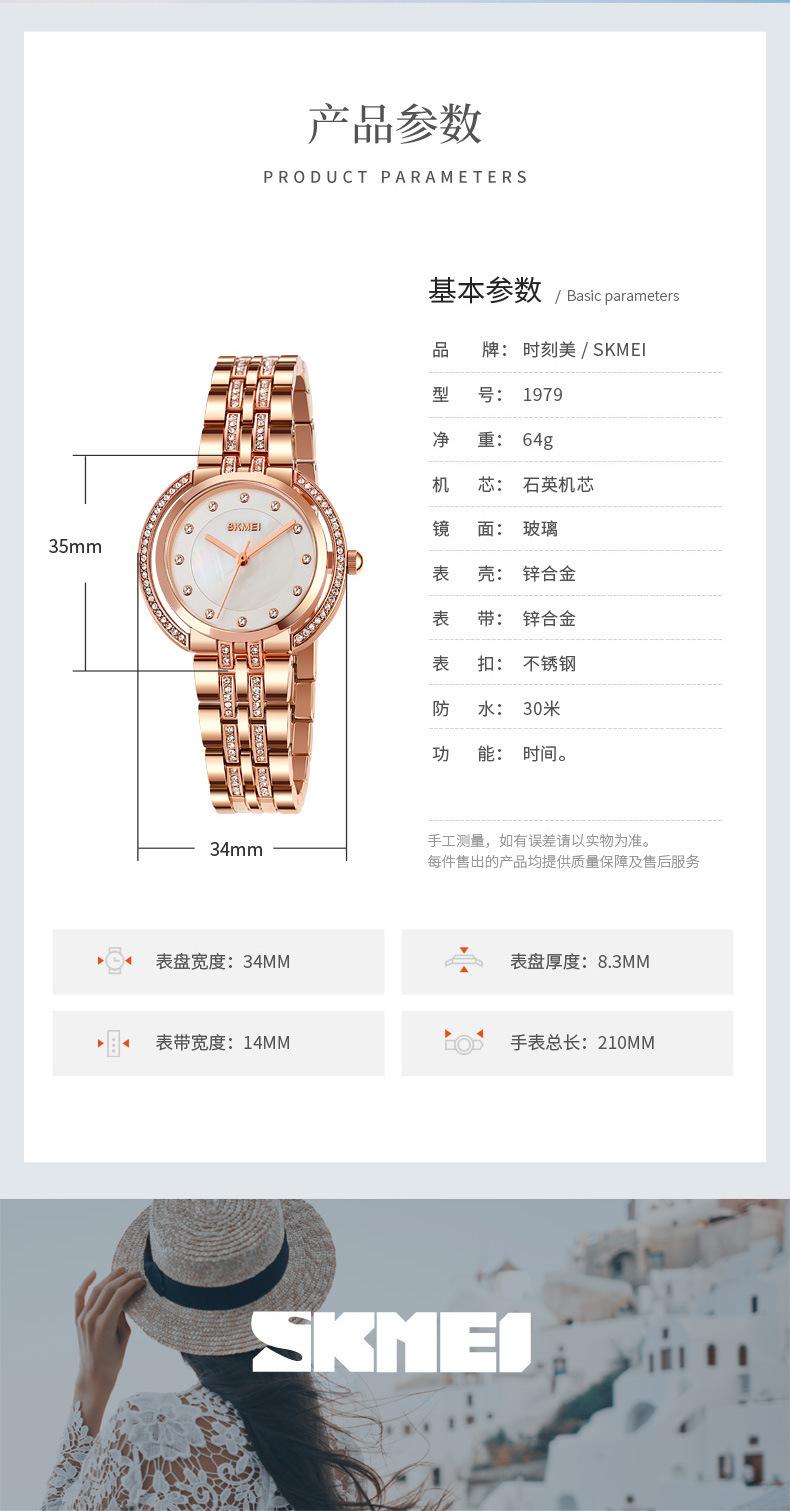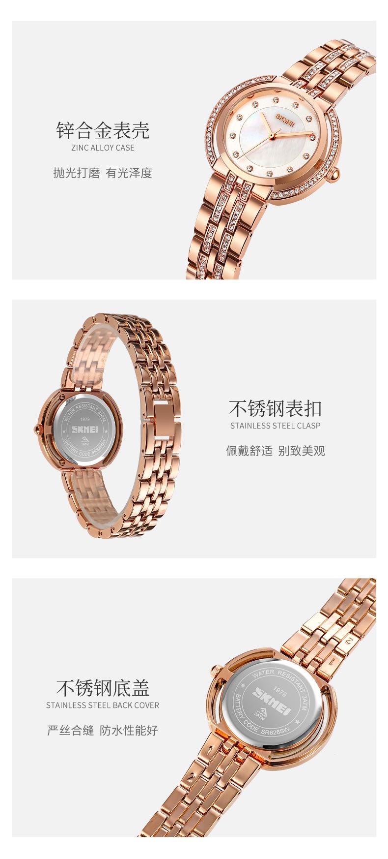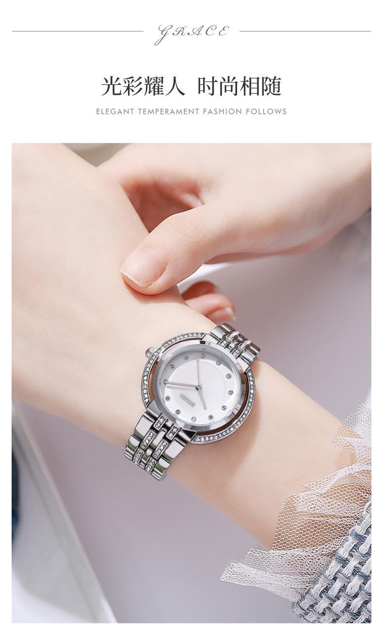 Hermoso reloj de cuarzo Skmei para mujer, elegante, con incrustaciones de diamantes, para estudiantes, con pulsera totalmente combinable.