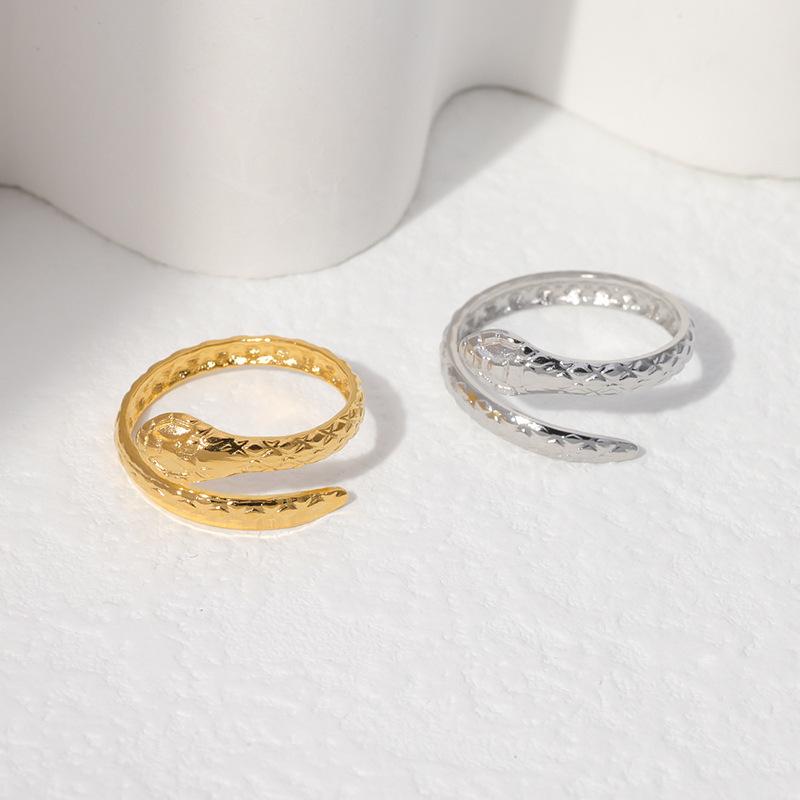 Anillo Abierto Transfronterizo Europeo y Americano de Acero de Titanio para Mujer Anillo de Metal de Acero Inoxidable con Forma de Serpiente Retro Personalizado Punk Venta al por Mayor