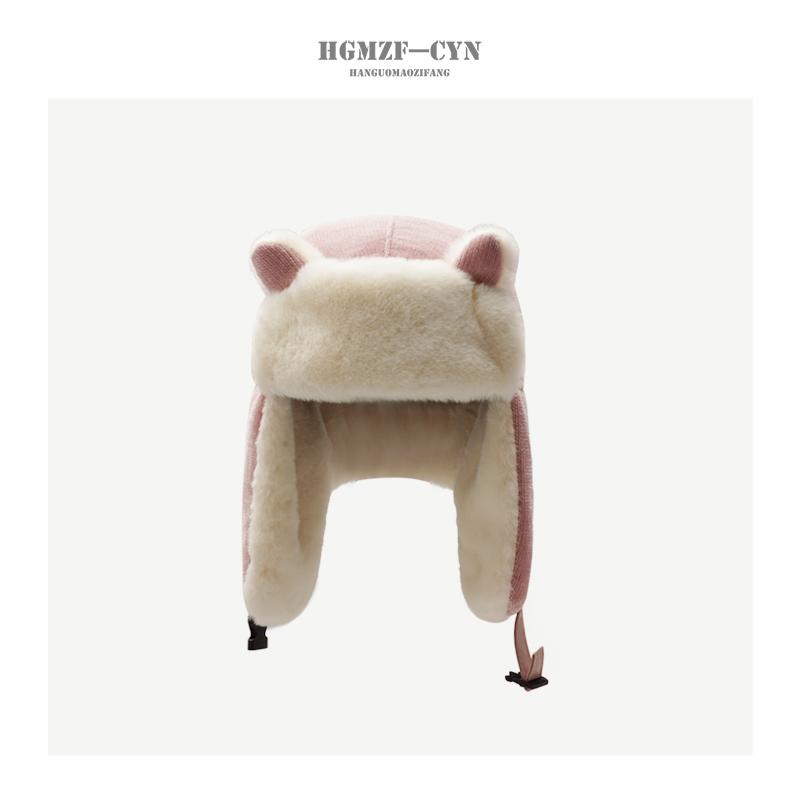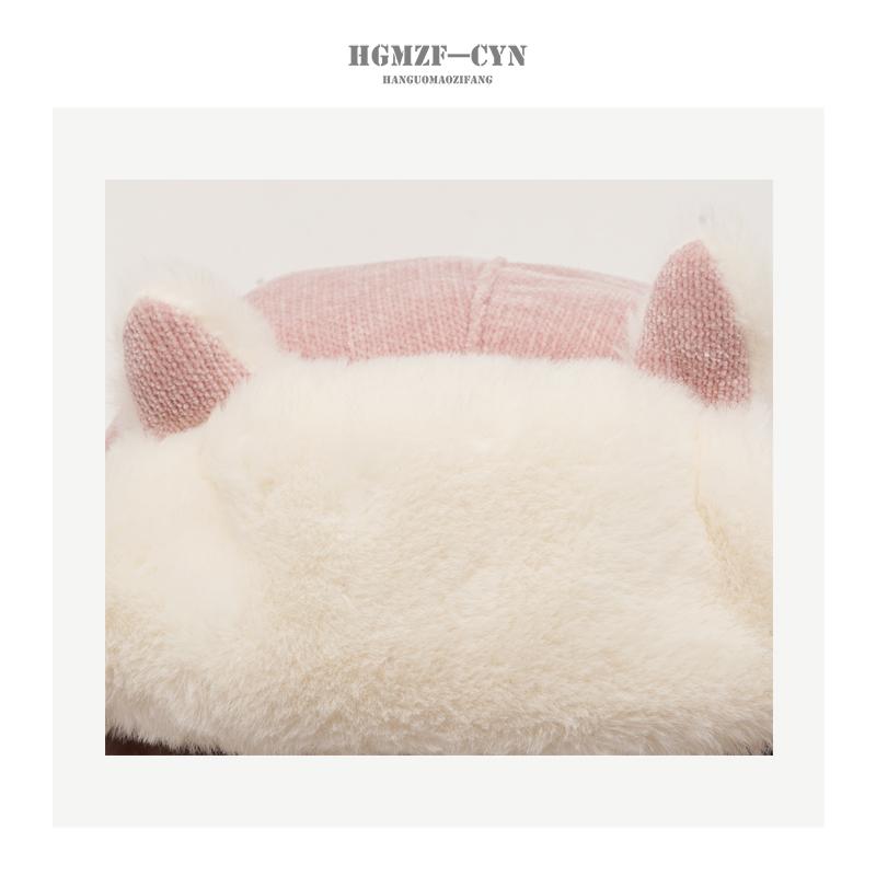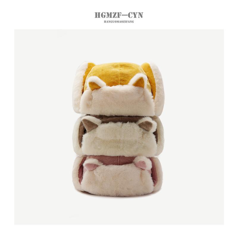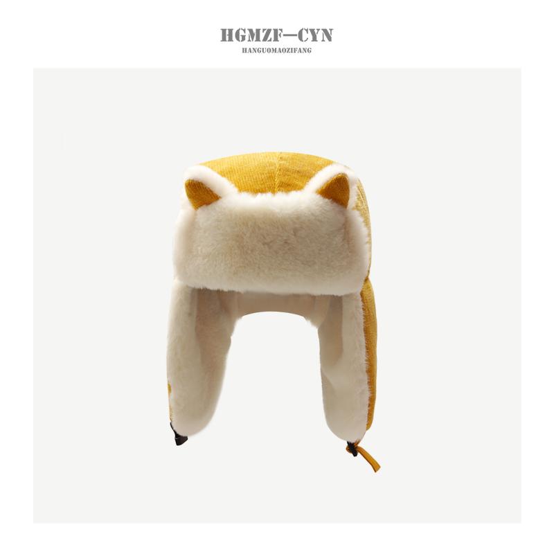 Sombrero de Invierno para Mujer de Felpa Cálido Sombrero Lei Feng Estilo Japonés Lindo Oreja de Zorro Sombrero Protector de Orejas Estilo Coreano Sombrero Rojo de Red para Exteriores