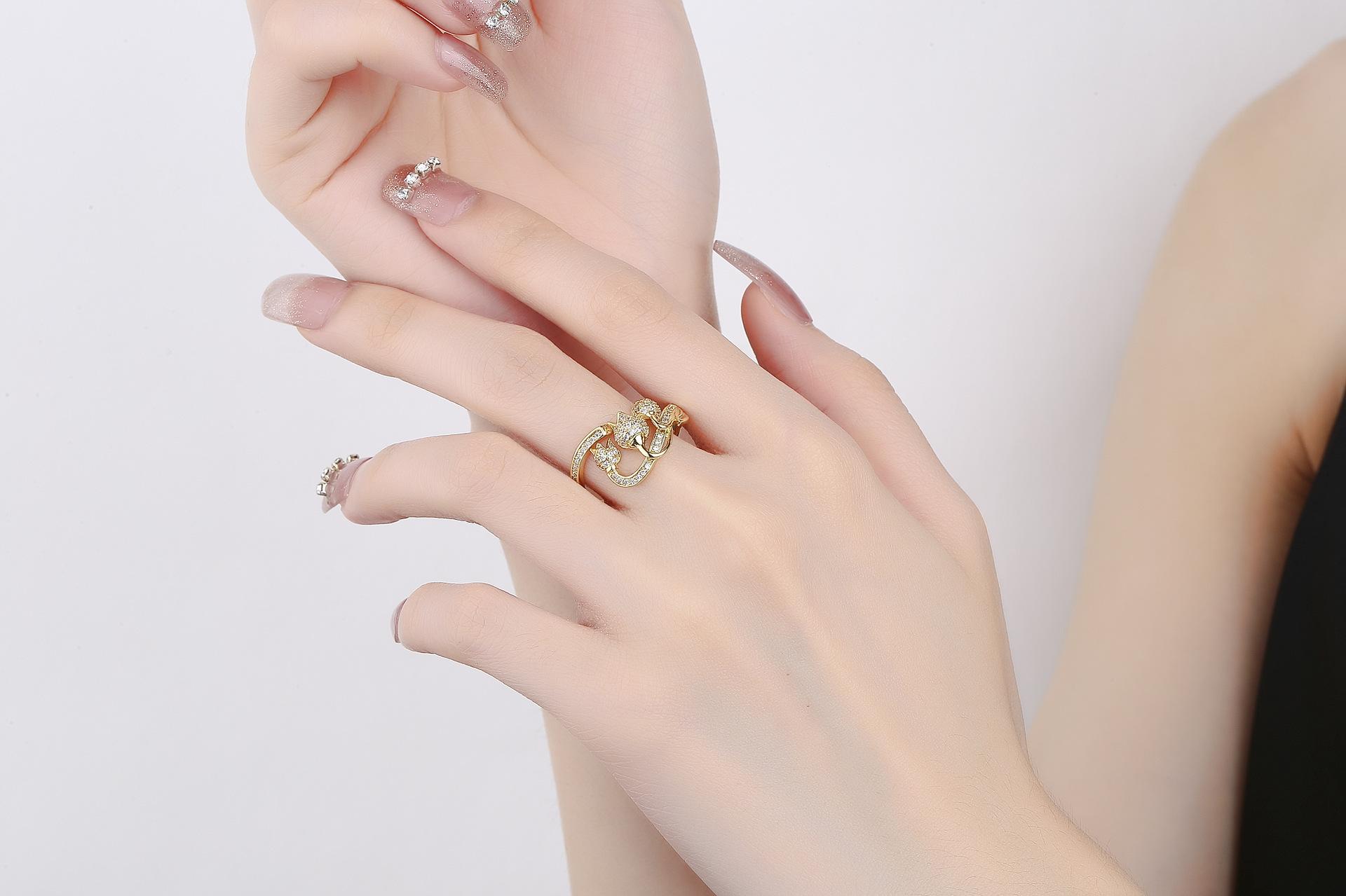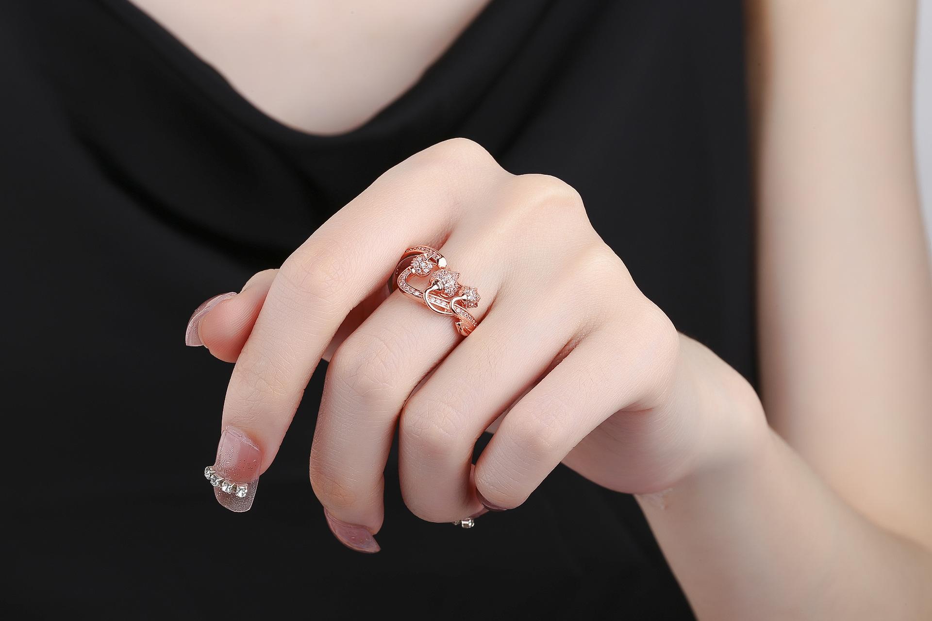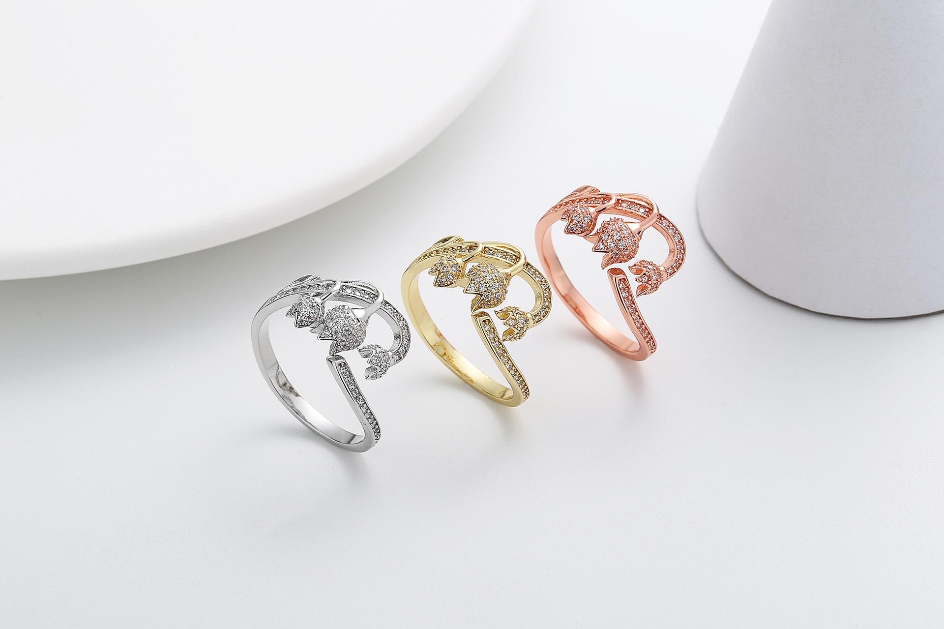 Anillo de Pareja de Rosas de Venta Caliente Transfronterizo Estilo Ins Simple Creativo Diseño Nicho Elegante Versátil Anillo Abierto