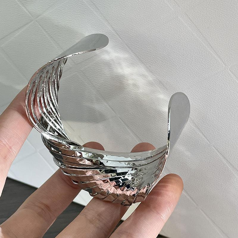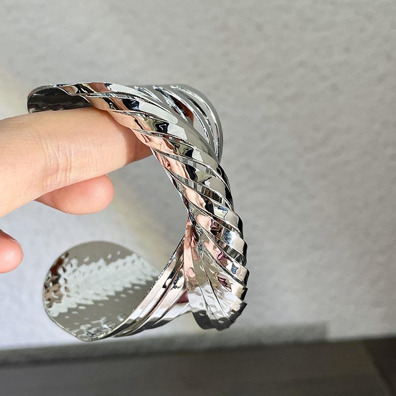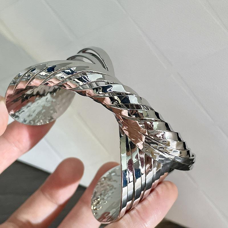 Pulsera Abierta de Metal Entrelazada Estilo Ins Europeo y Americano, Pulsera Femenina para Parejas, Brazalete de Moda