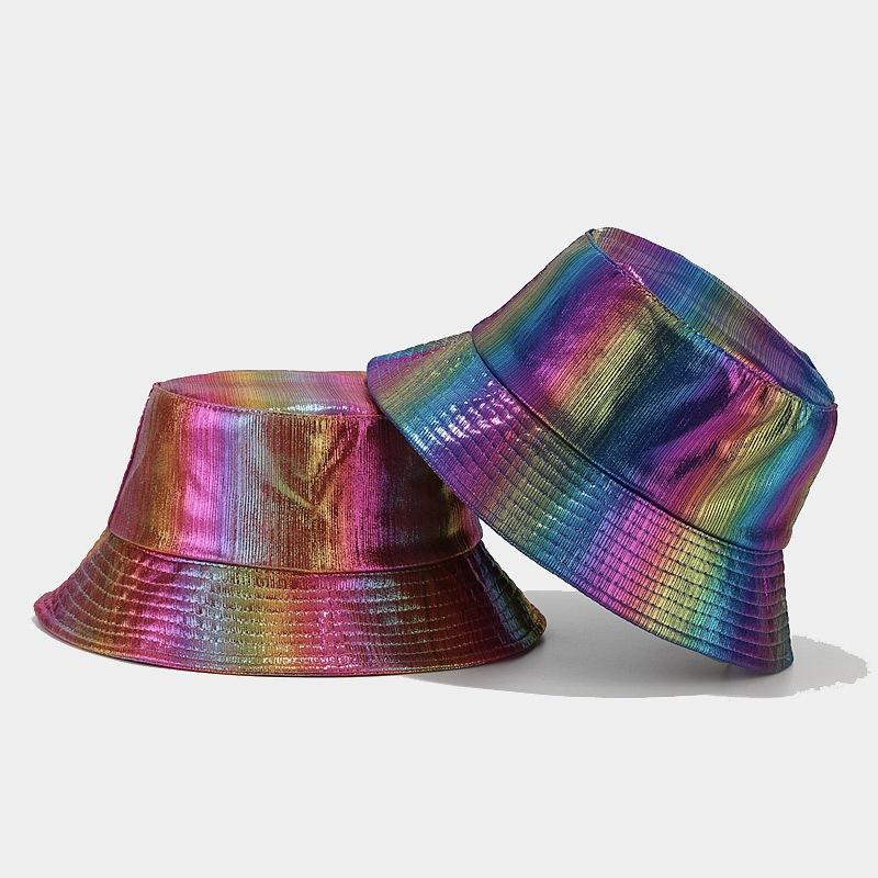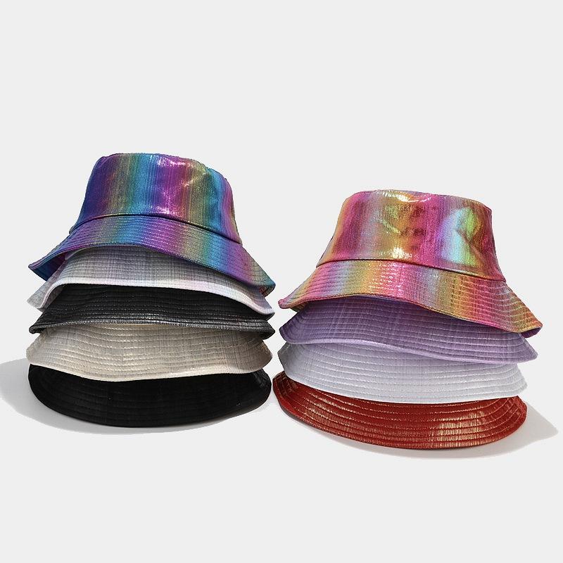 Sombrero de pescador láser colorido europeo y americano nuevo 2024, sombrero de lavabo de celebridades de Internet a la moda para mujer, sombrero de sol informal para hombre