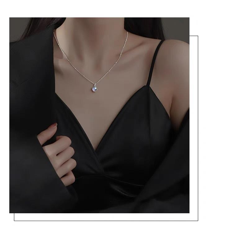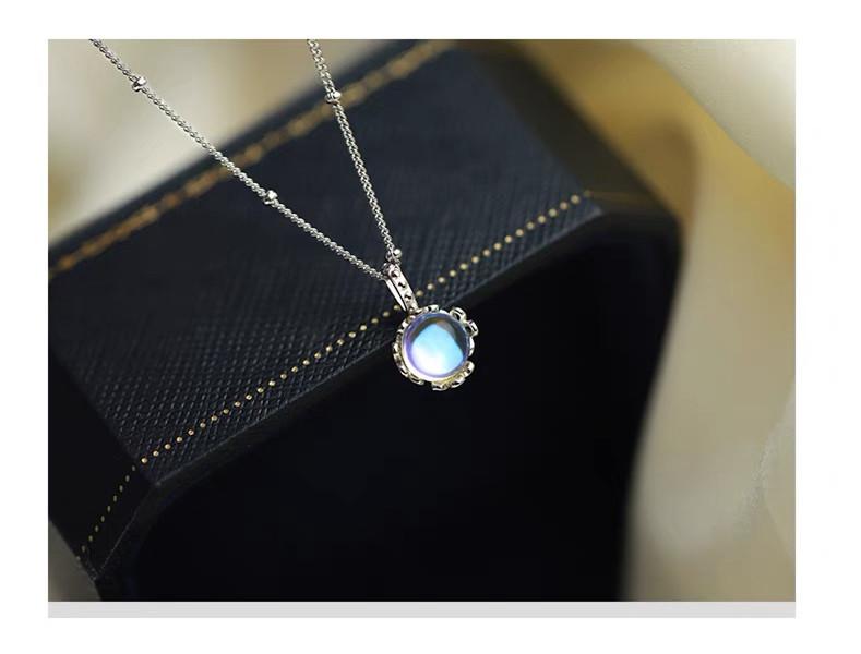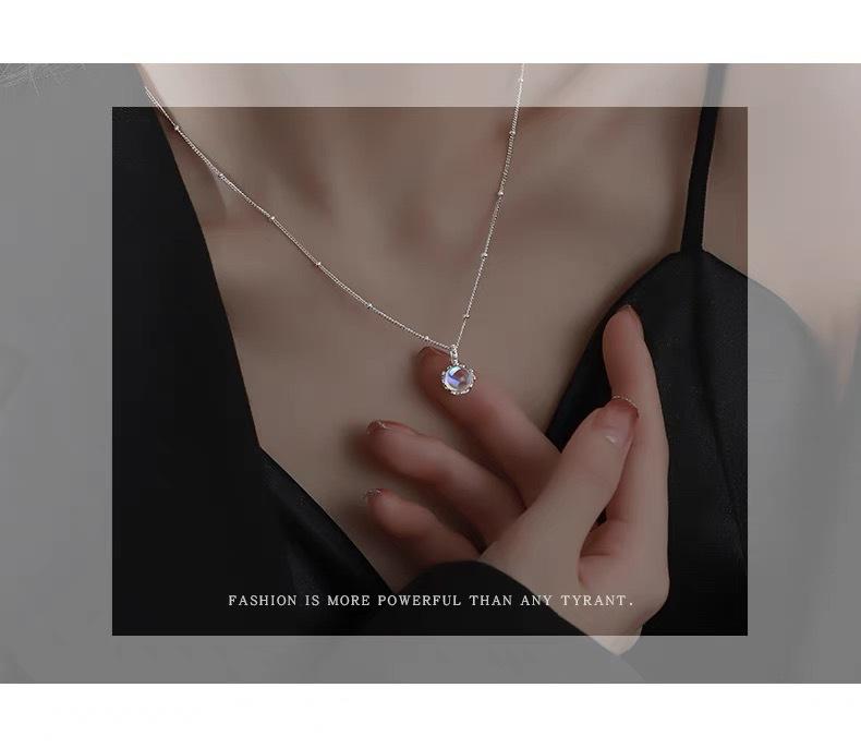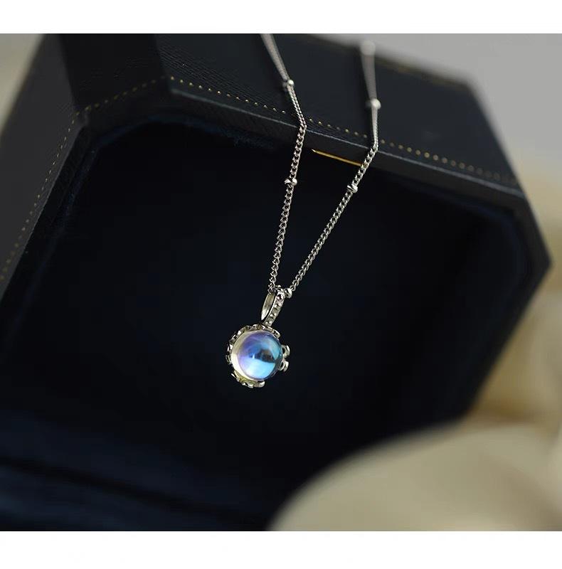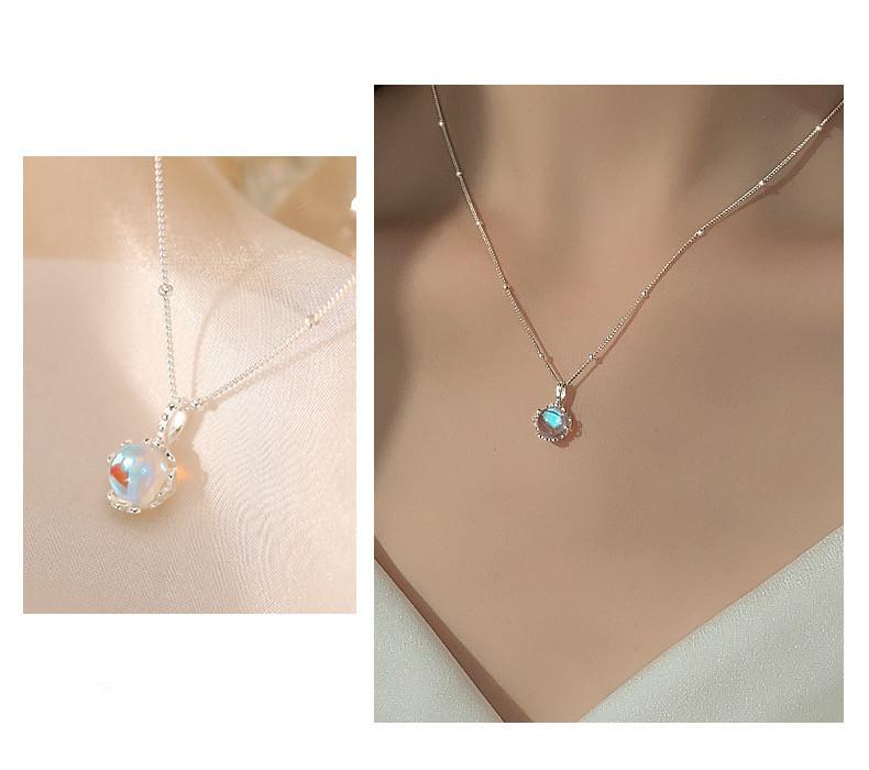 Collar de piedra lunar colorido para mujer, colgante de capullo de flor de nicho de lujo ligero de verano 2023, nuevo diseño avanzado, cadena de clavícula