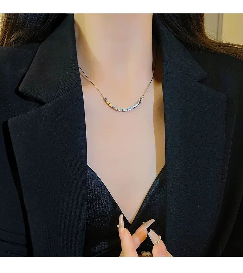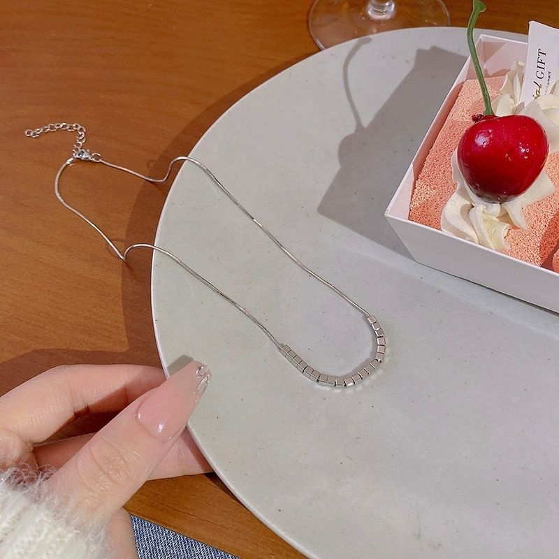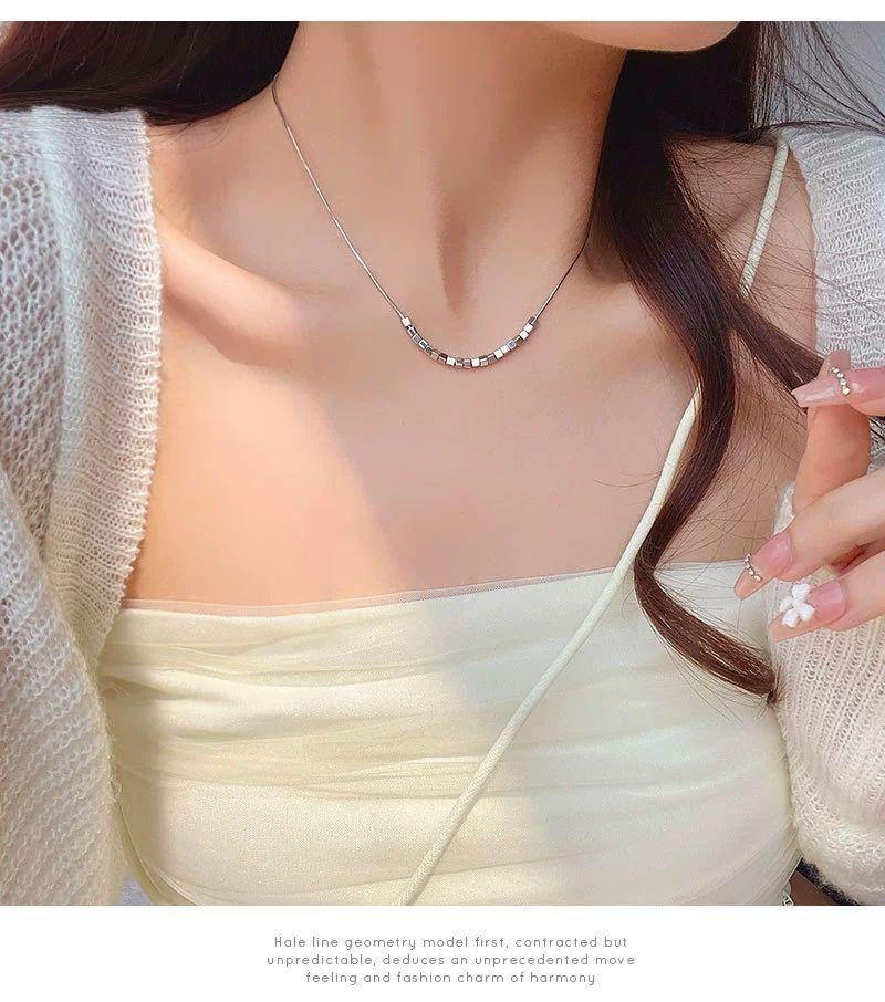 Collar cuadrado de plata de estilo frío para mujer, ligero, de lujo, de nicho, de alta calidad, versátil, popular en línea, cadena de clavícula de celebridades, joyería