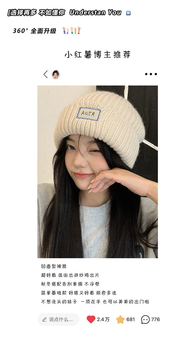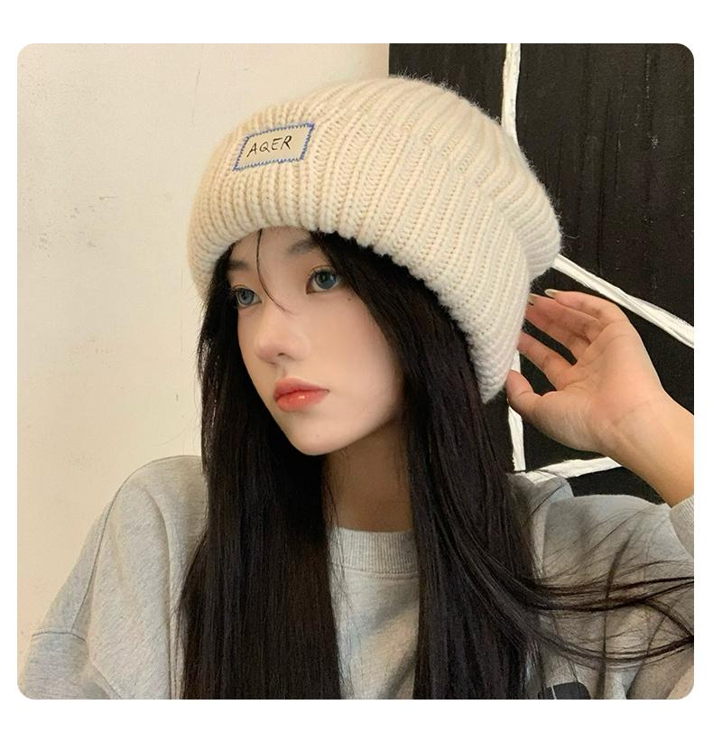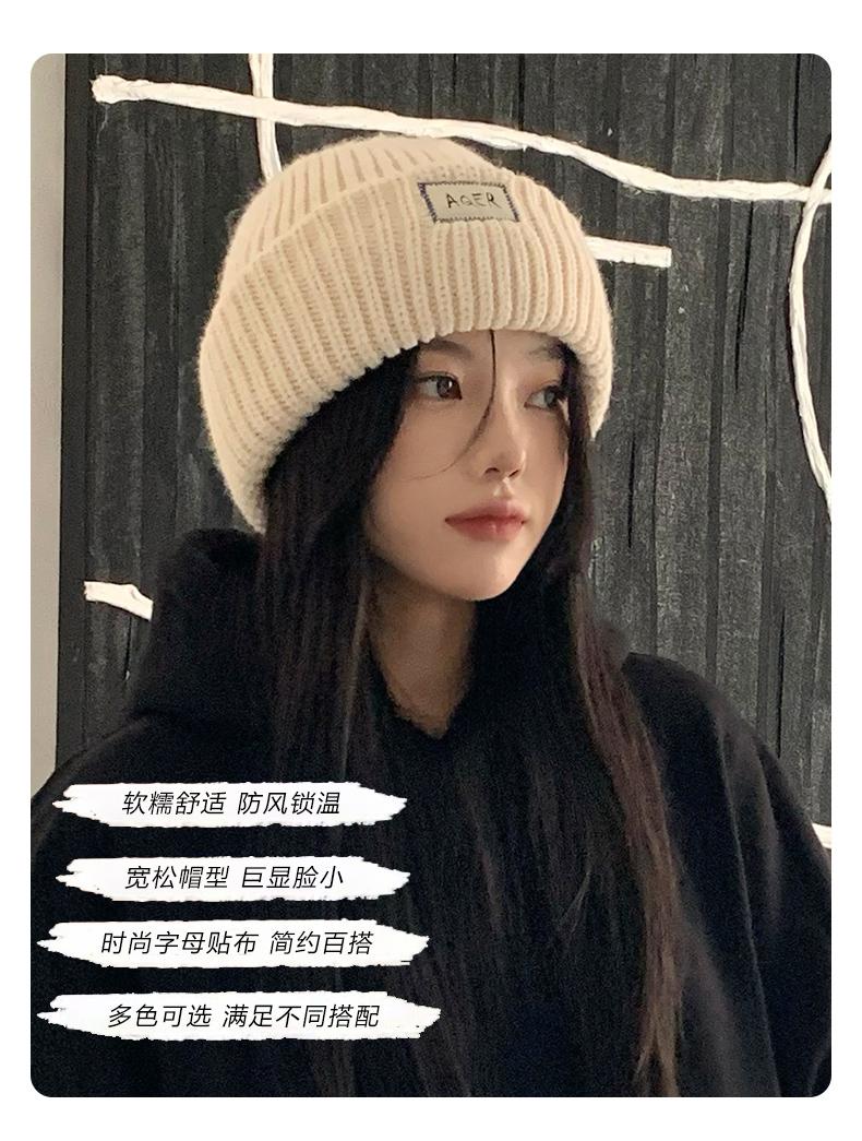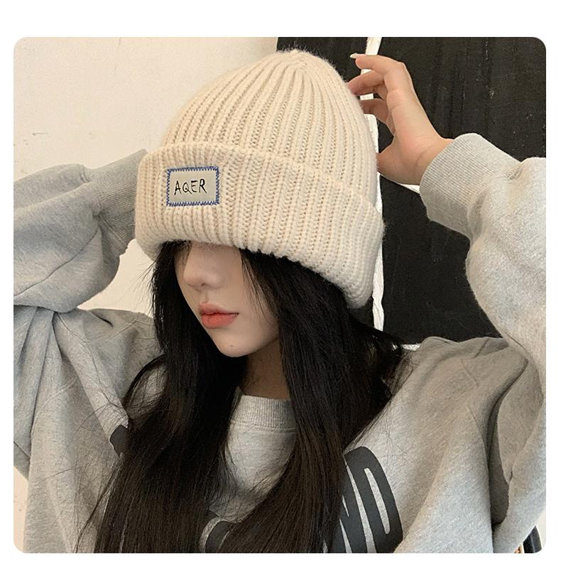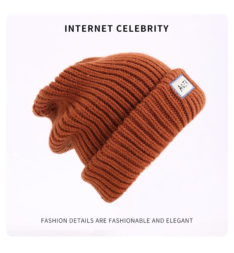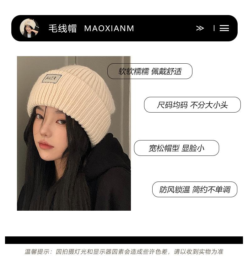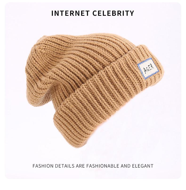 Gorro de punto holgado de circunferencia de cabeza grande para mujer, gorro de lana de invierno, cálido para otoño e invierno, adecuado para rostro redondo y rostro pequeño, gorro de pila de moda