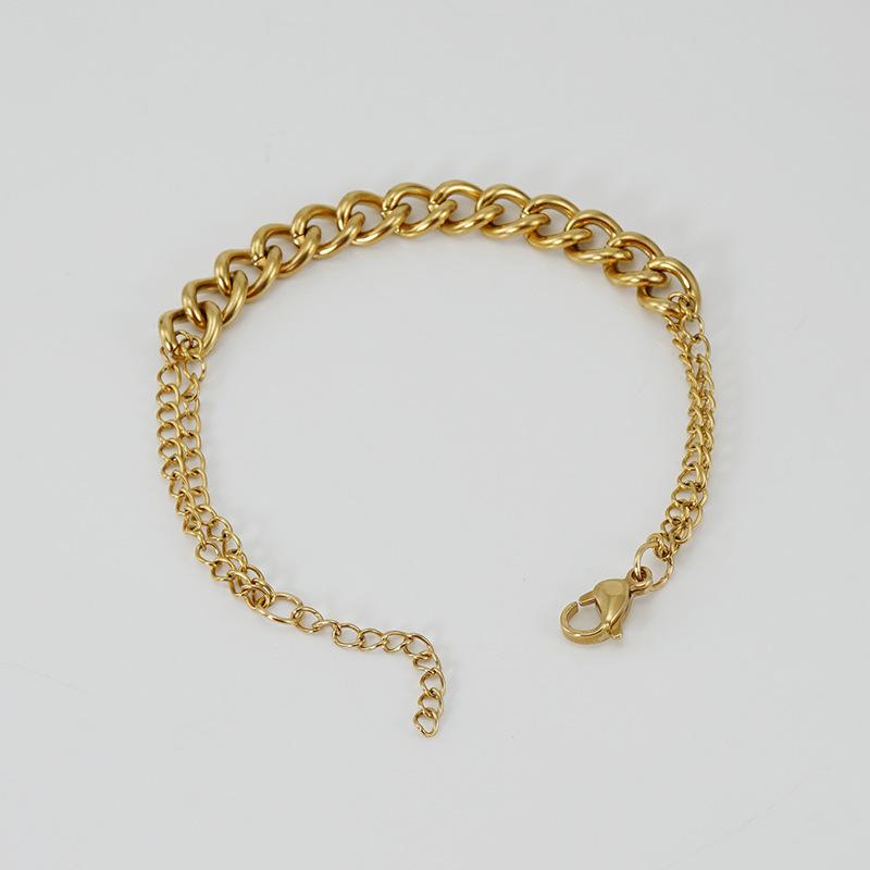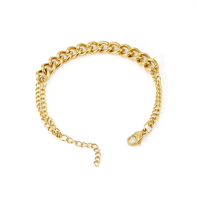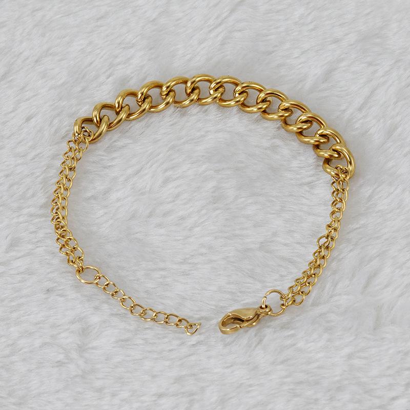 Pulsera Cadena de Acero Titanio Dorado 18K Fashion Joker para Hombres y Mujeres Transfronteriza Europea y Americana Joyería de Acero Inoxidable Cadena Terminada Accesorios