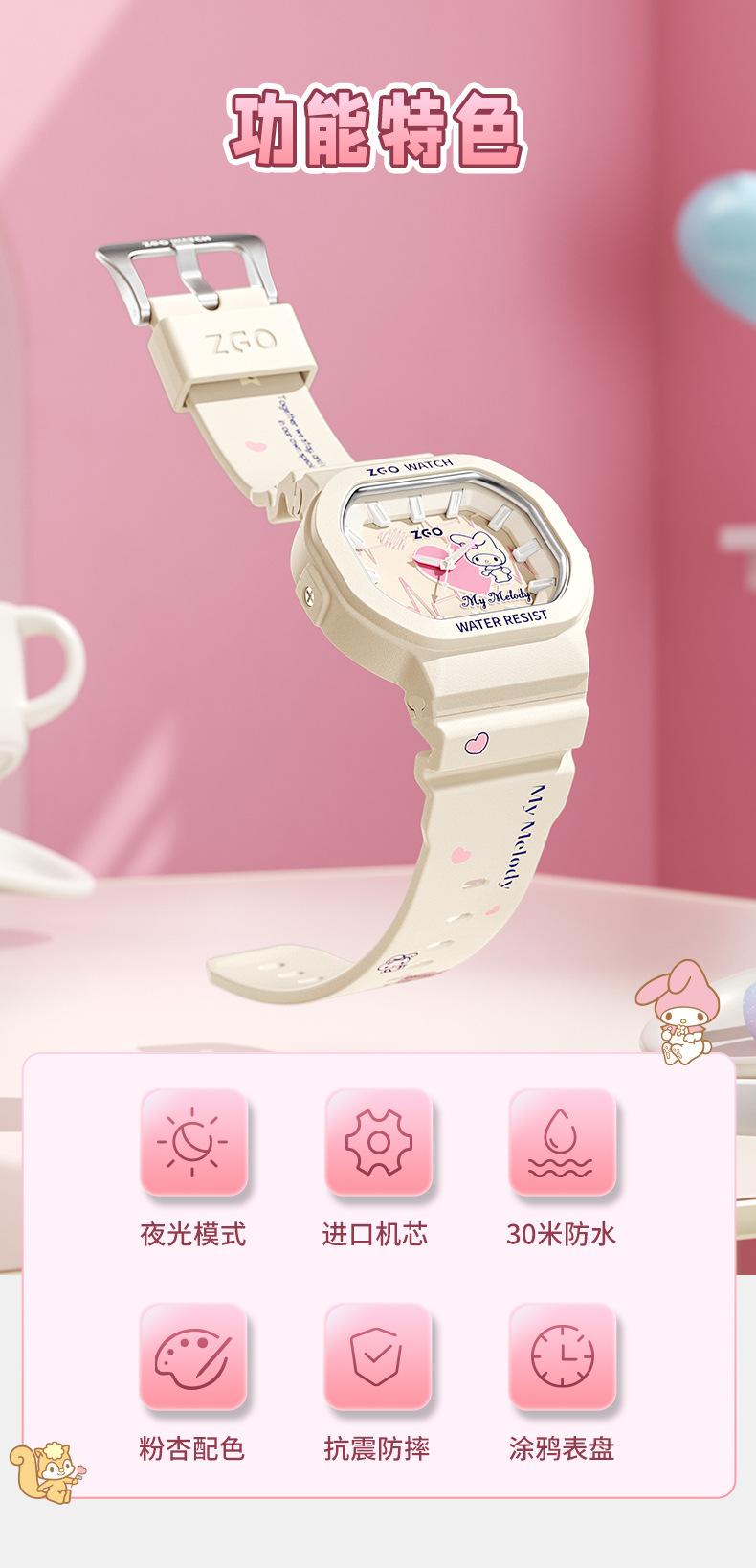 Reloj Sanrio Melody para Mujer Deportivo Año Nuevo Cuadrado Reloj Electrónico para Estudiantes de Secundaria y Preparatoria