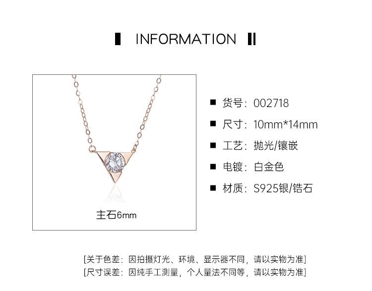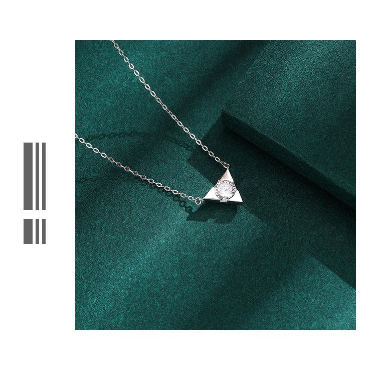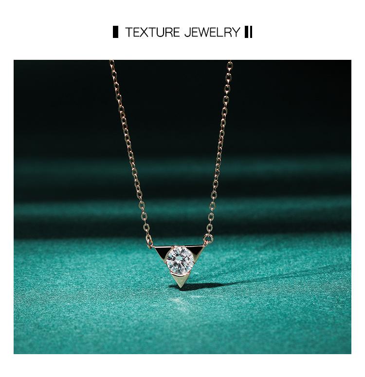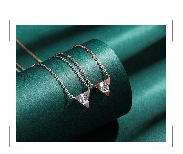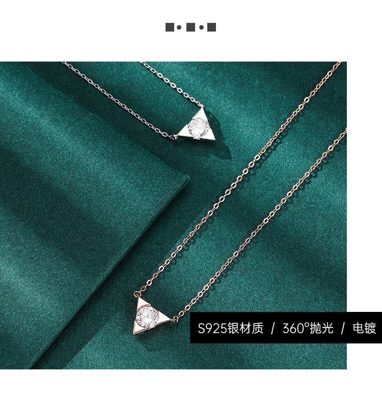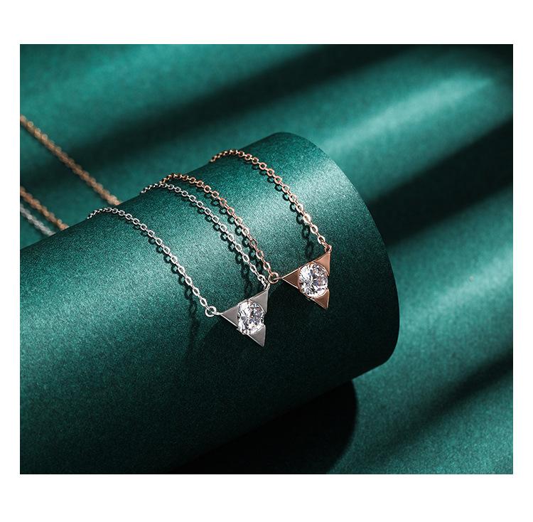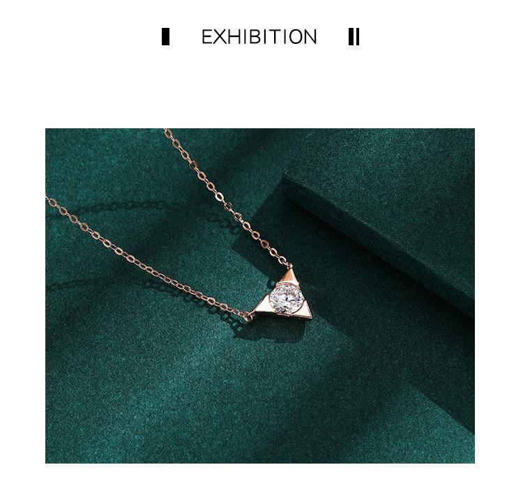 Collar con colgante de circonita y diamante en plata esterlina s925, versión japonesa y coreana, con forma de triángulo geométrico chapado en oro rosa, cadena de clavícula para mujer, venta al por mayor