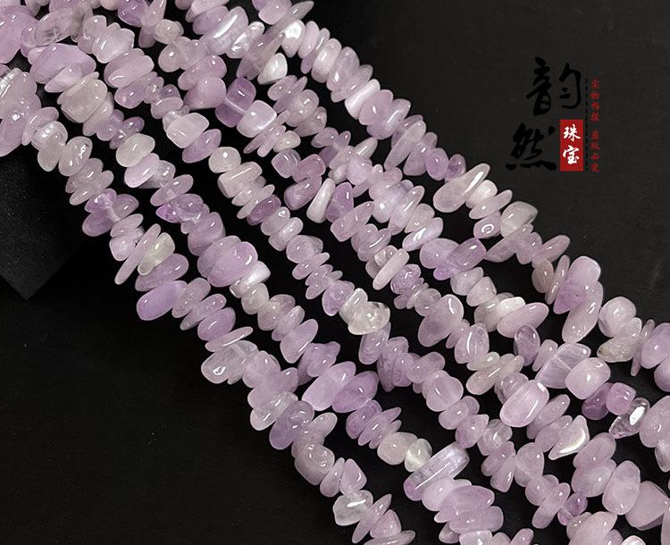 Cadena larga semiacabada de piedra triturada de espodumena morada natural, pulsera de bricolaje, cadena de clavícula, cadena de suéter, collar, cuentas sueltas, accesorios
