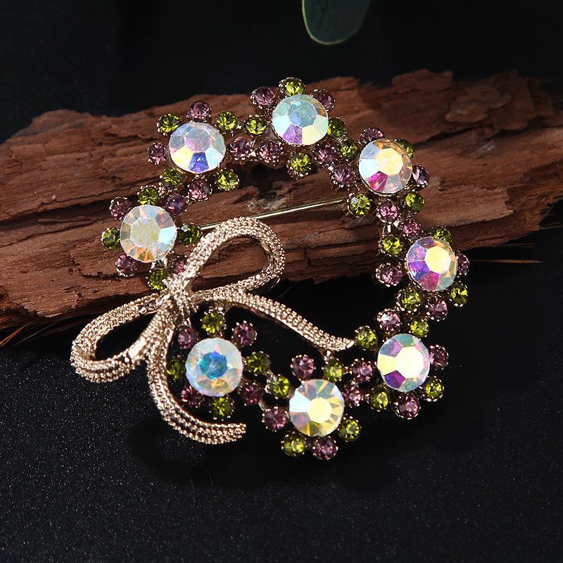 Lanhao Lujo Europeo y Americano Vintage Cristal Gema Lazo Flor Aleación Broche Pin Corsage Accesorios broche