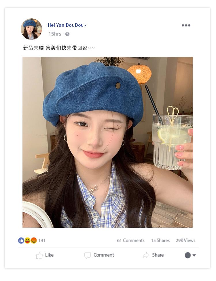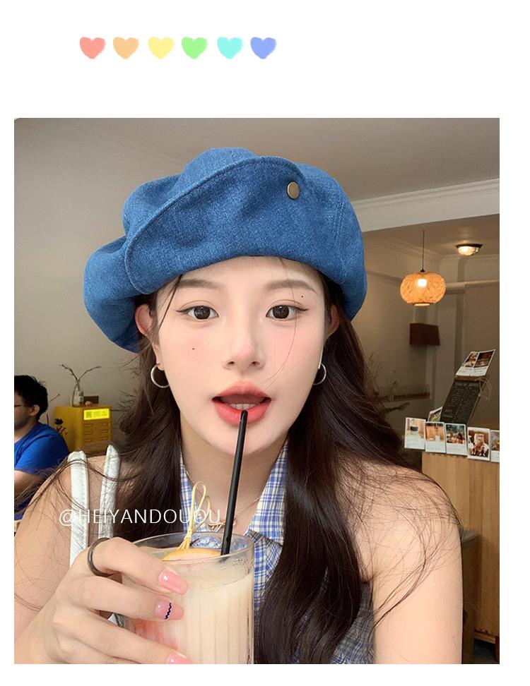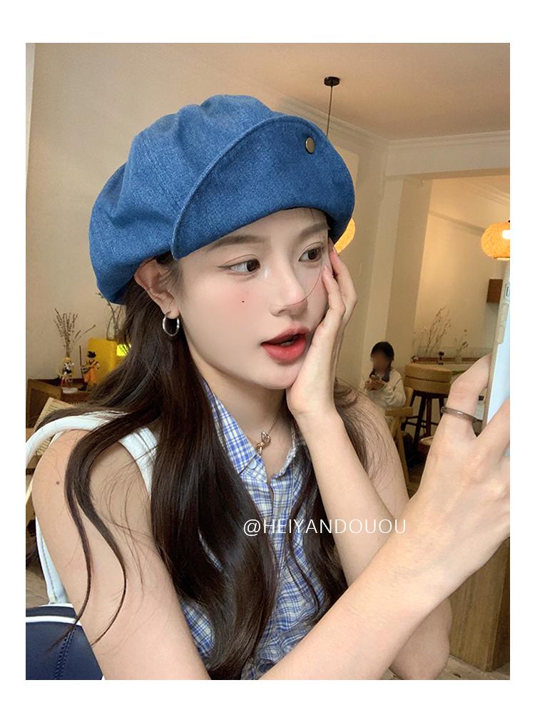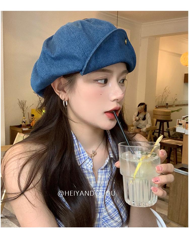 Boina vaquera para chica, dulce, fresca y sexy, diseño de nicho femenino, gran circunferencia de la cabeza, sombrero octogonal, boina de pintor pequeña y delgada con aspecto de cara.