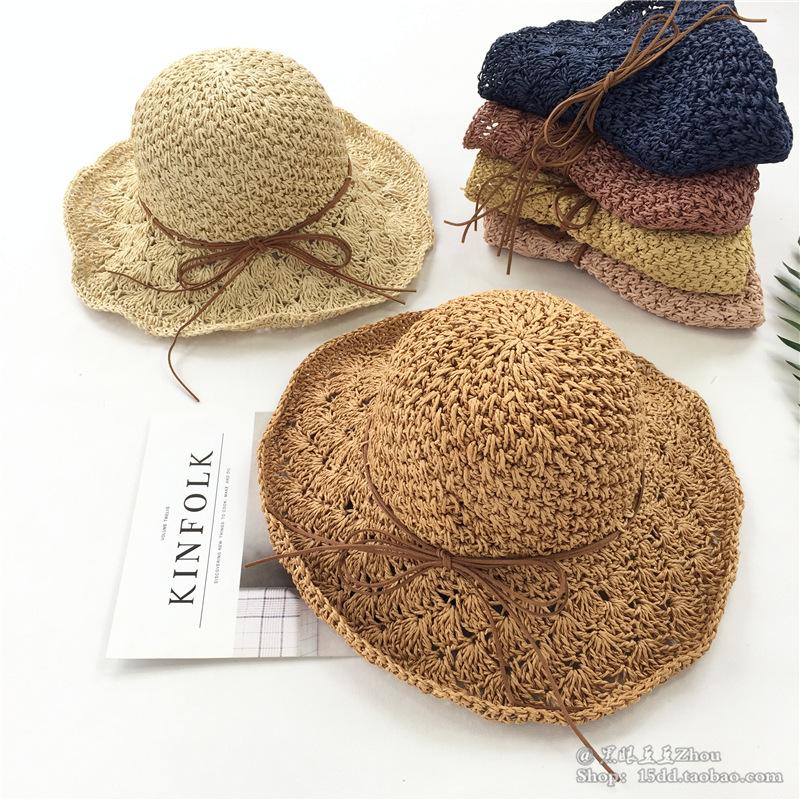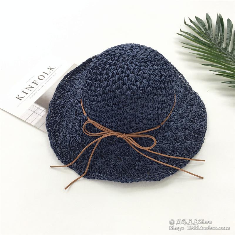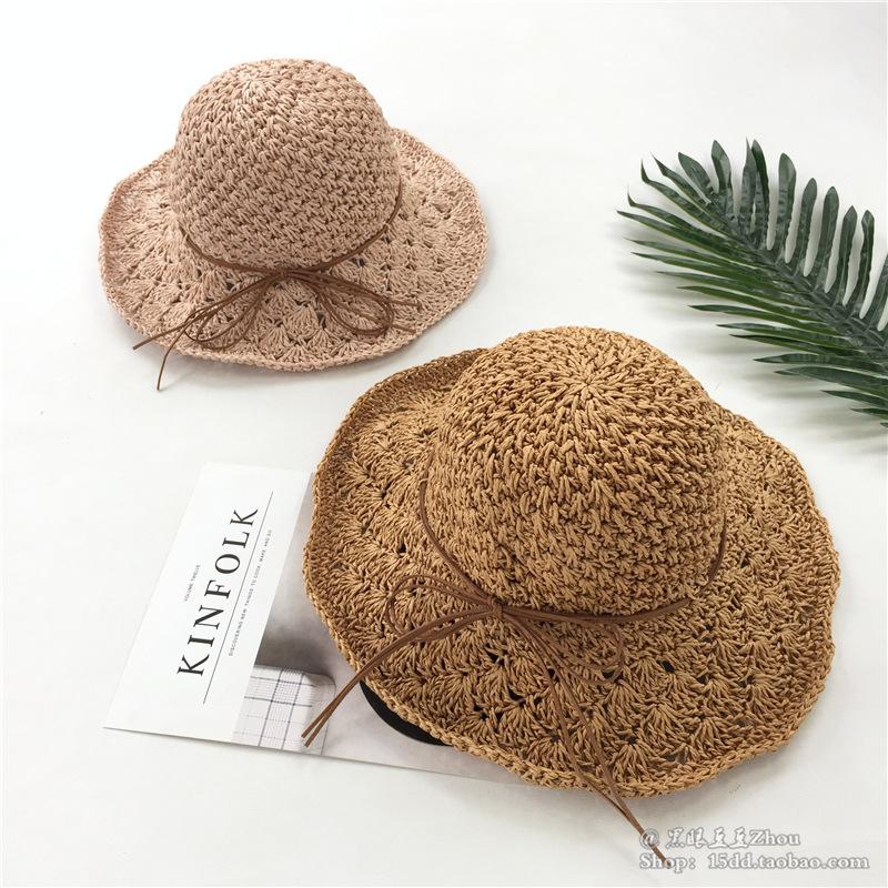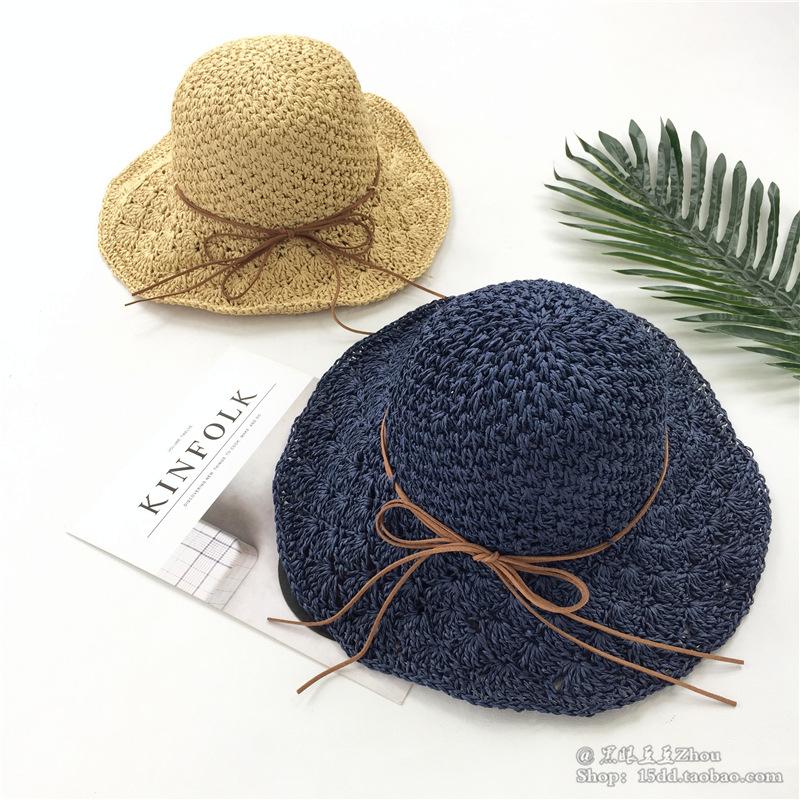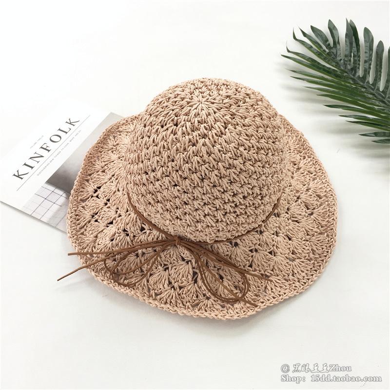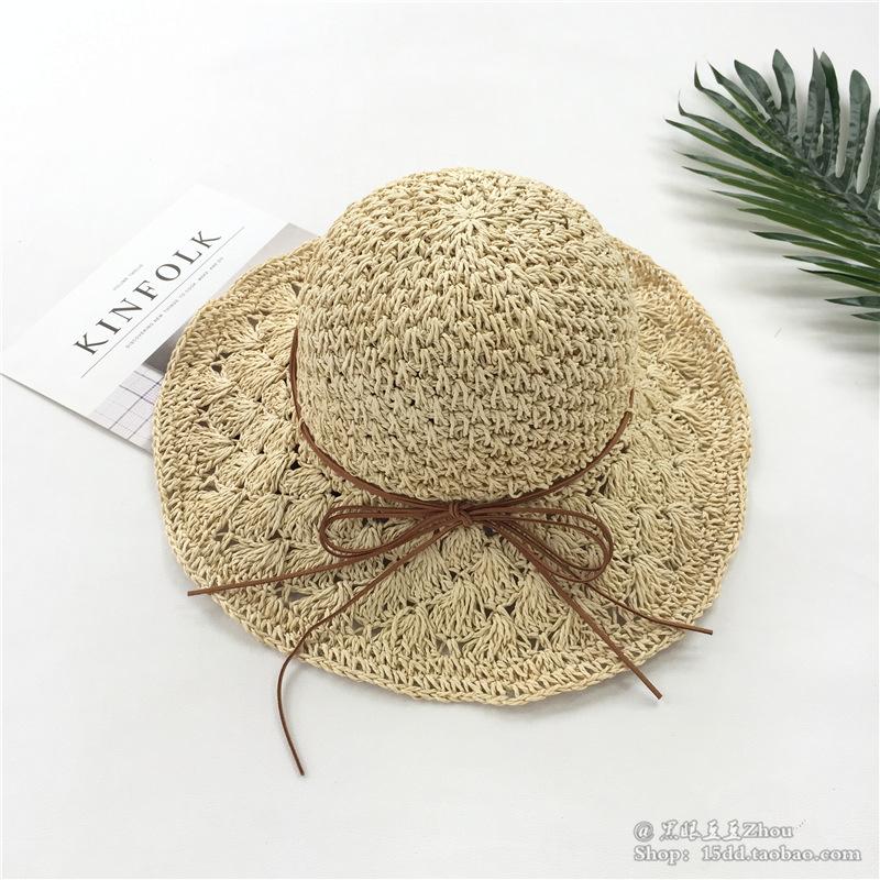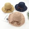 Sombrero para el sol, plegable, de verano, para mujer, con ala grande, de paja, protector solar, para playa, con lazo, transpirable y fresco.