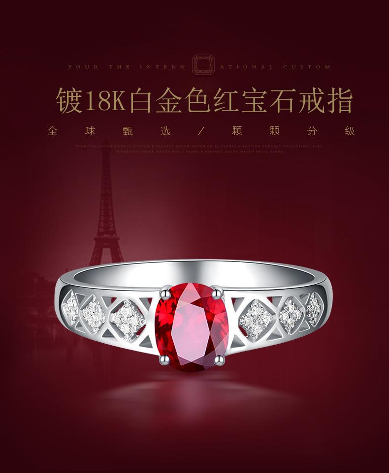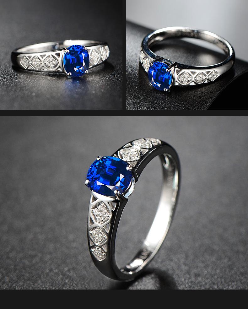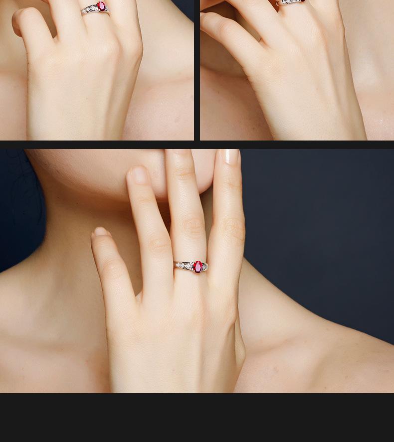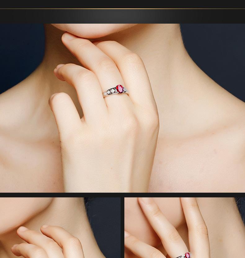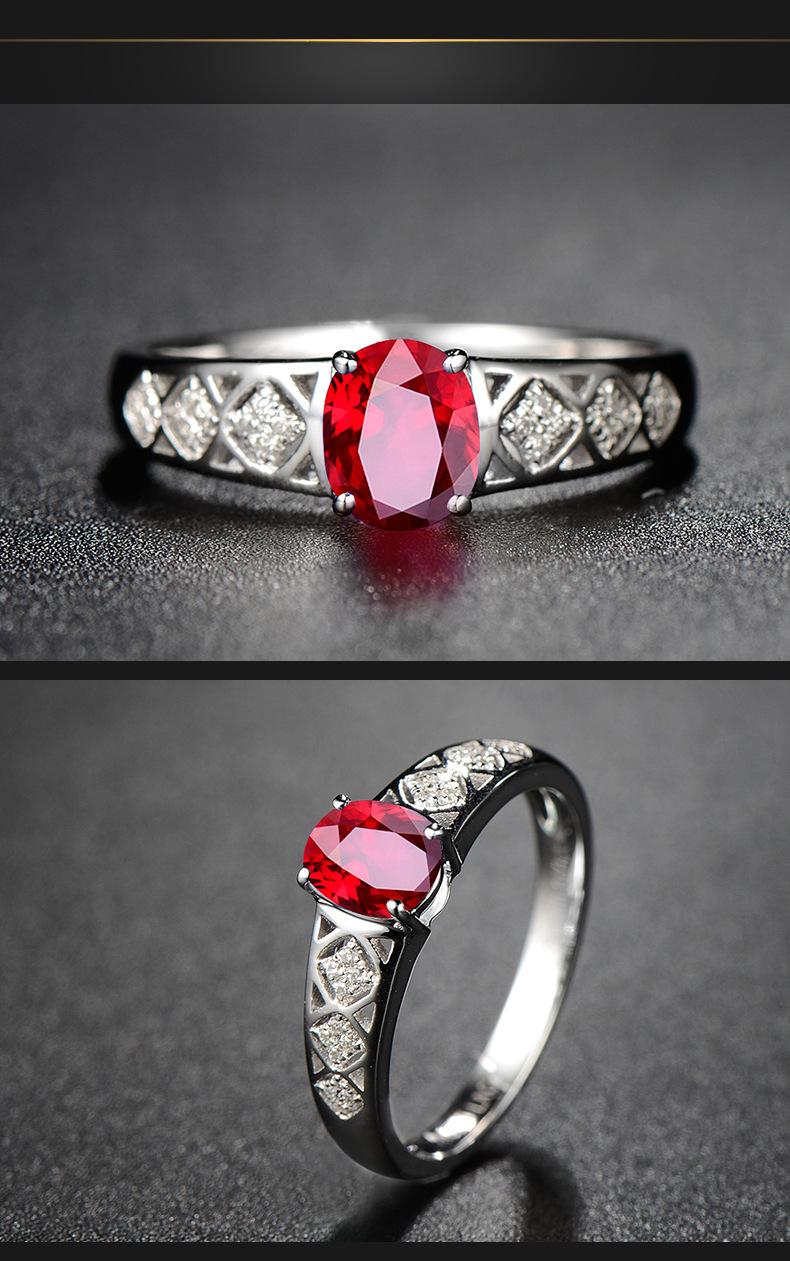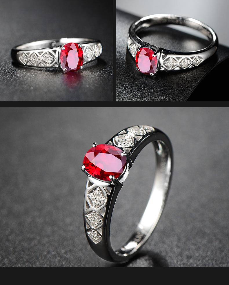 Anillo de apertura hueca con gema chapada en oro blanco, elegante, sencillo, de zafiro rojo y corindón, estilo europeo y americano, para mujer.