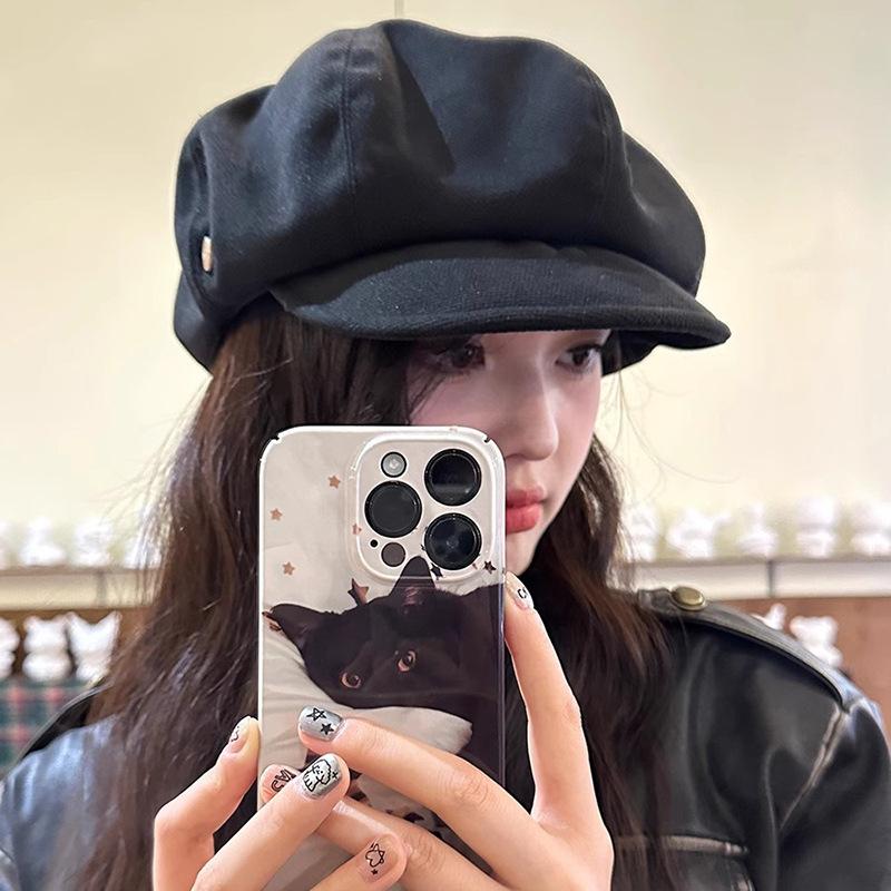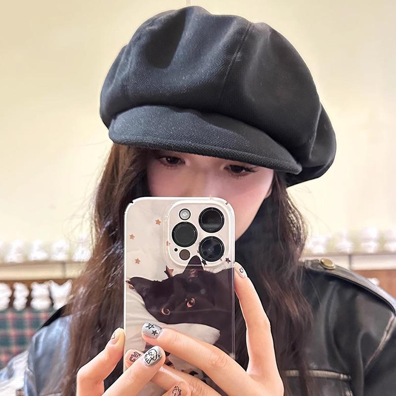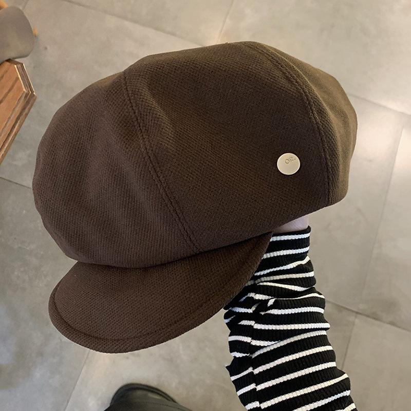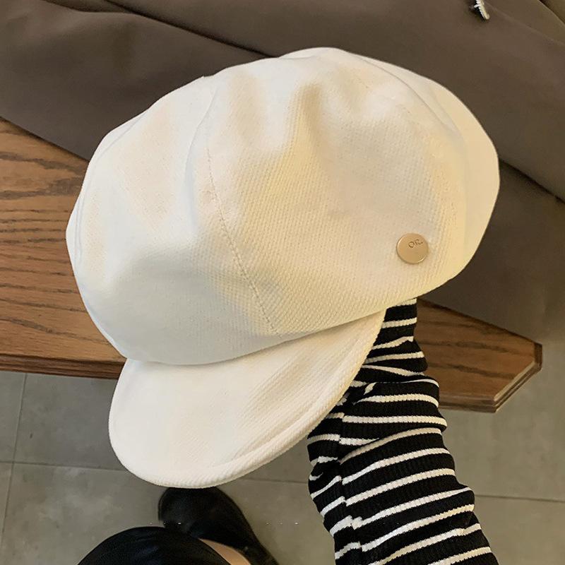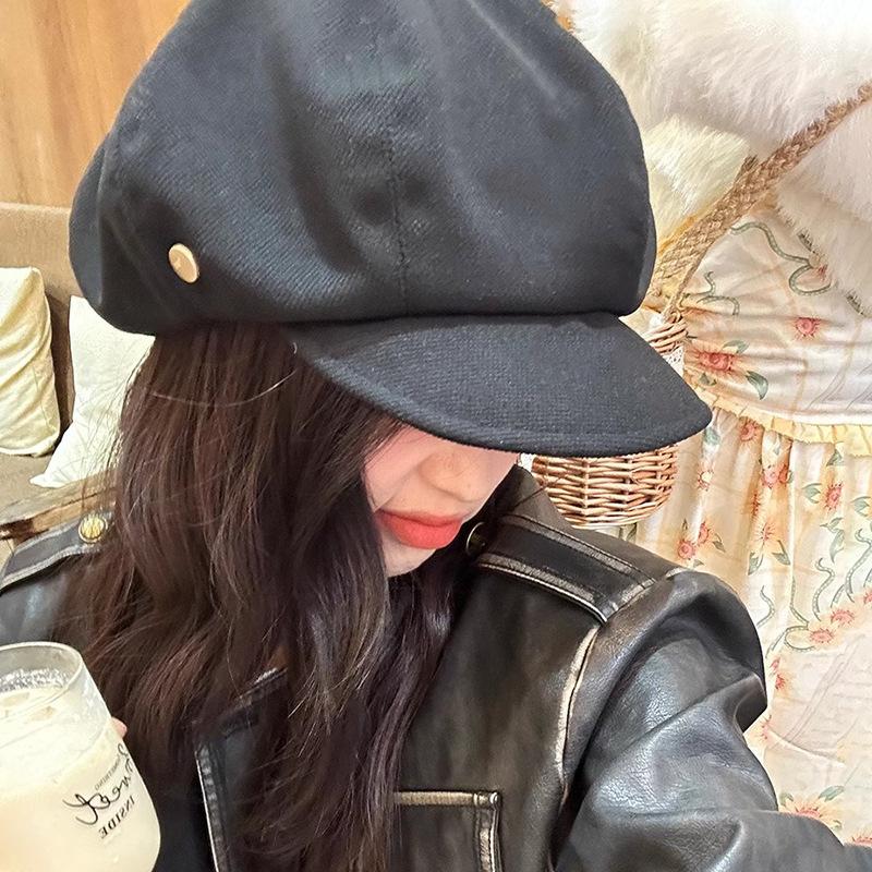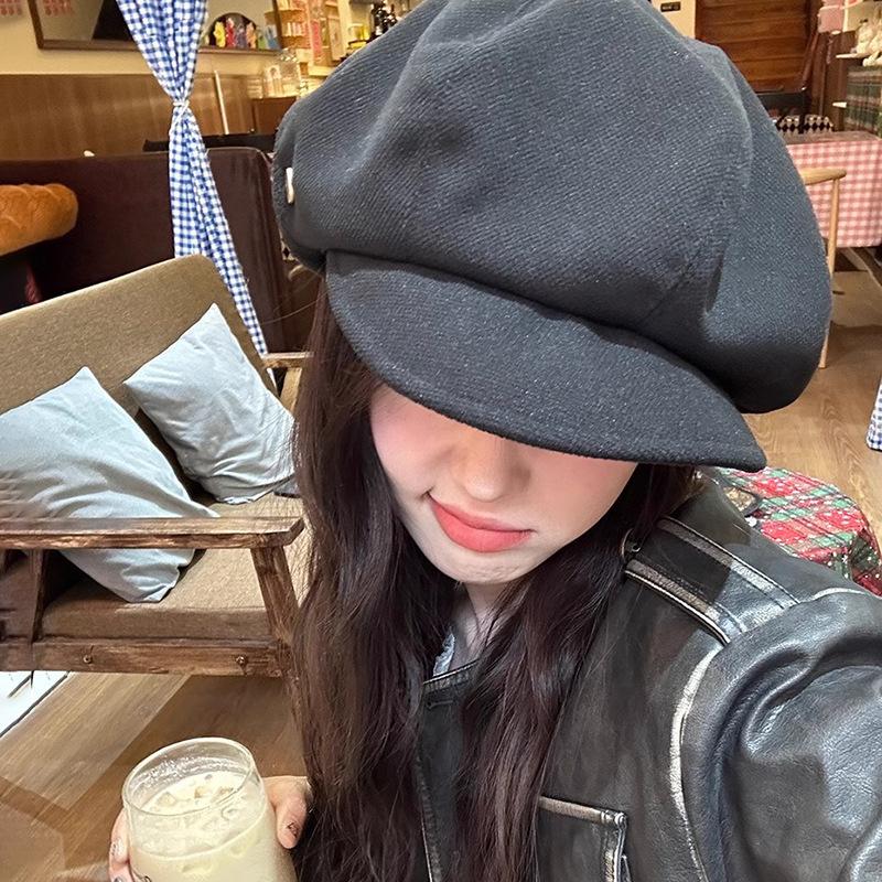 Gorro octogonal de lana retro de diseñador para mujer, boina pequeña con aspecto de cara de otoño e invierno, gorro de vendedor de periódicos de celebridades de Internet, versión grande, gorro de nube