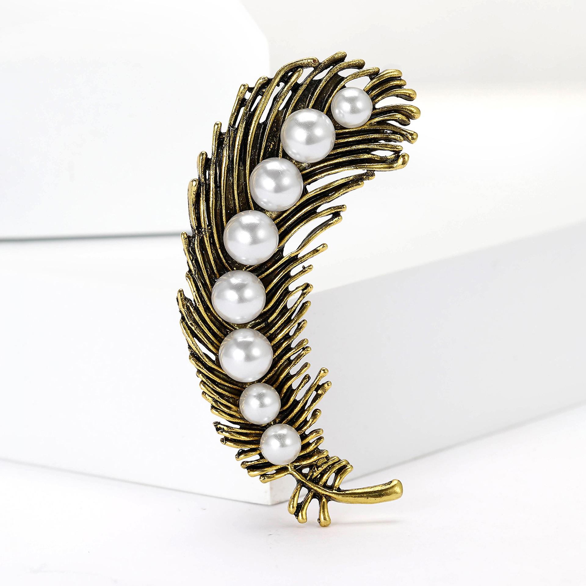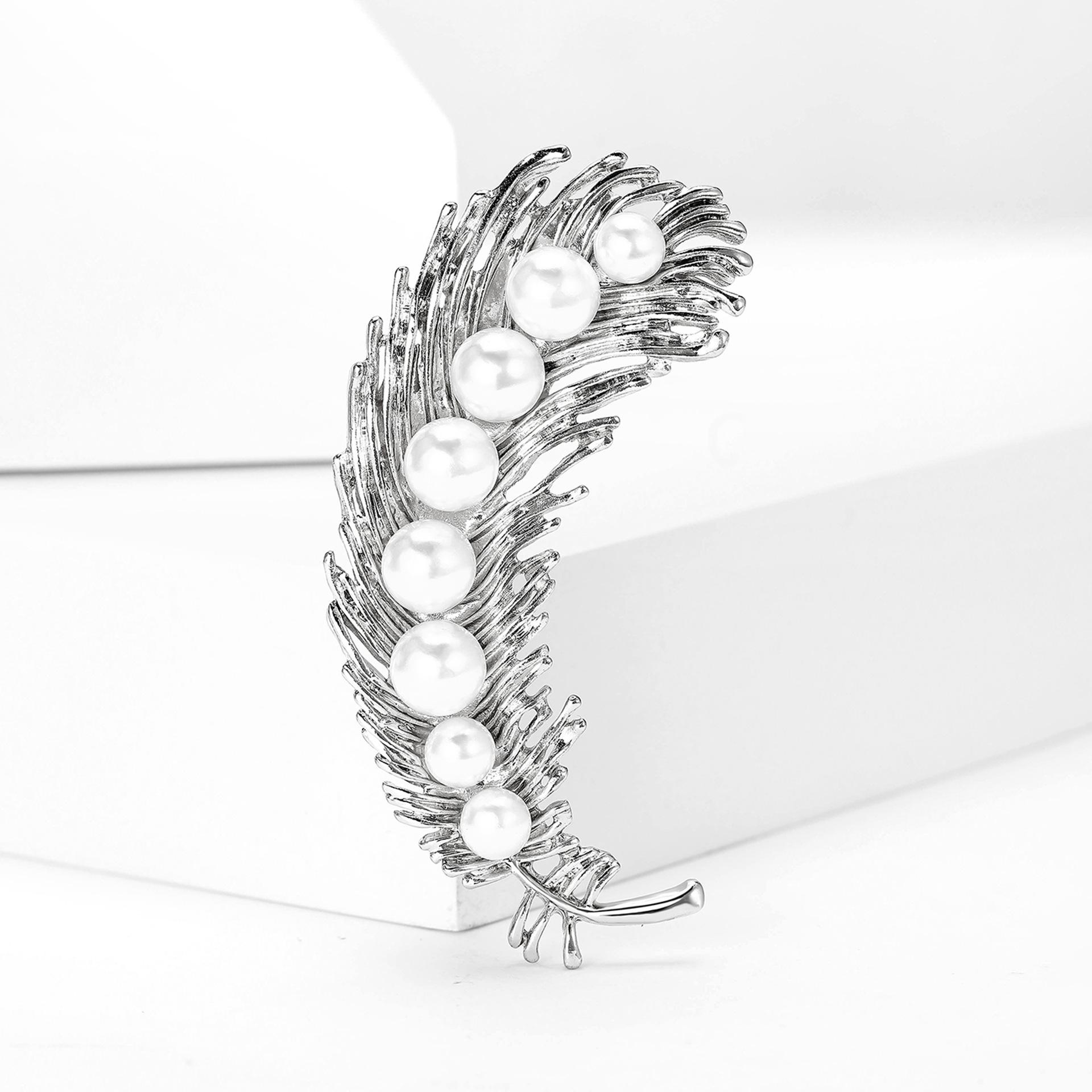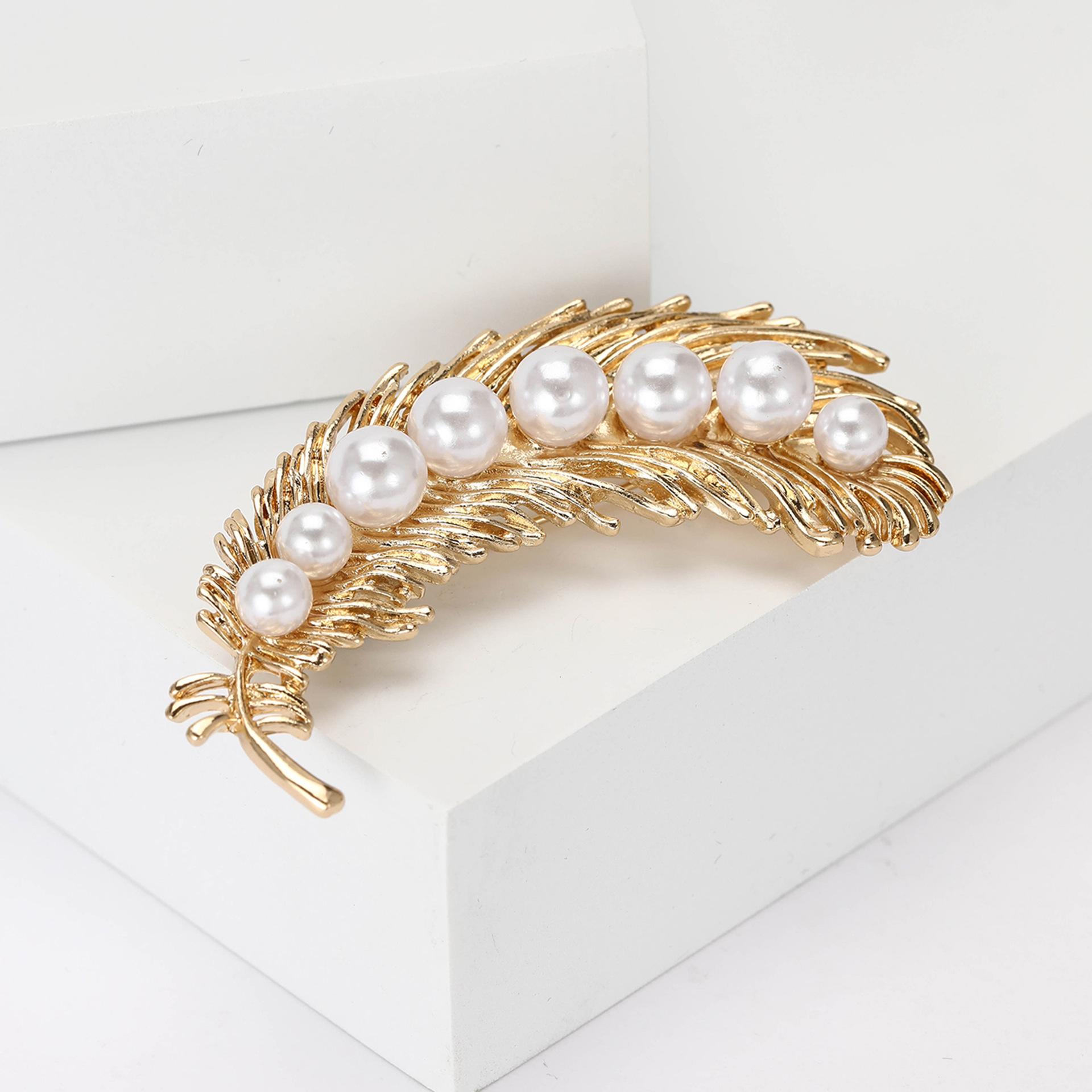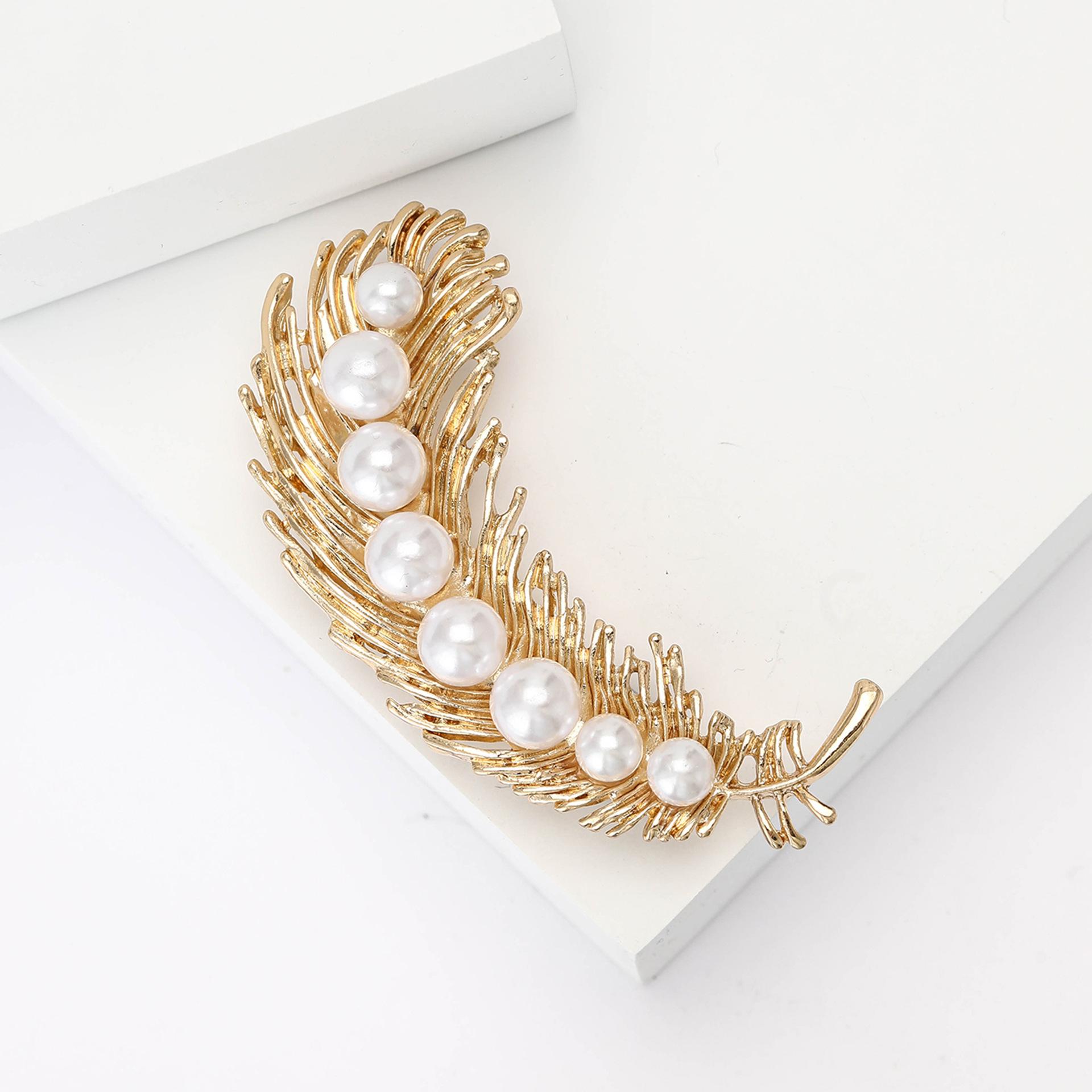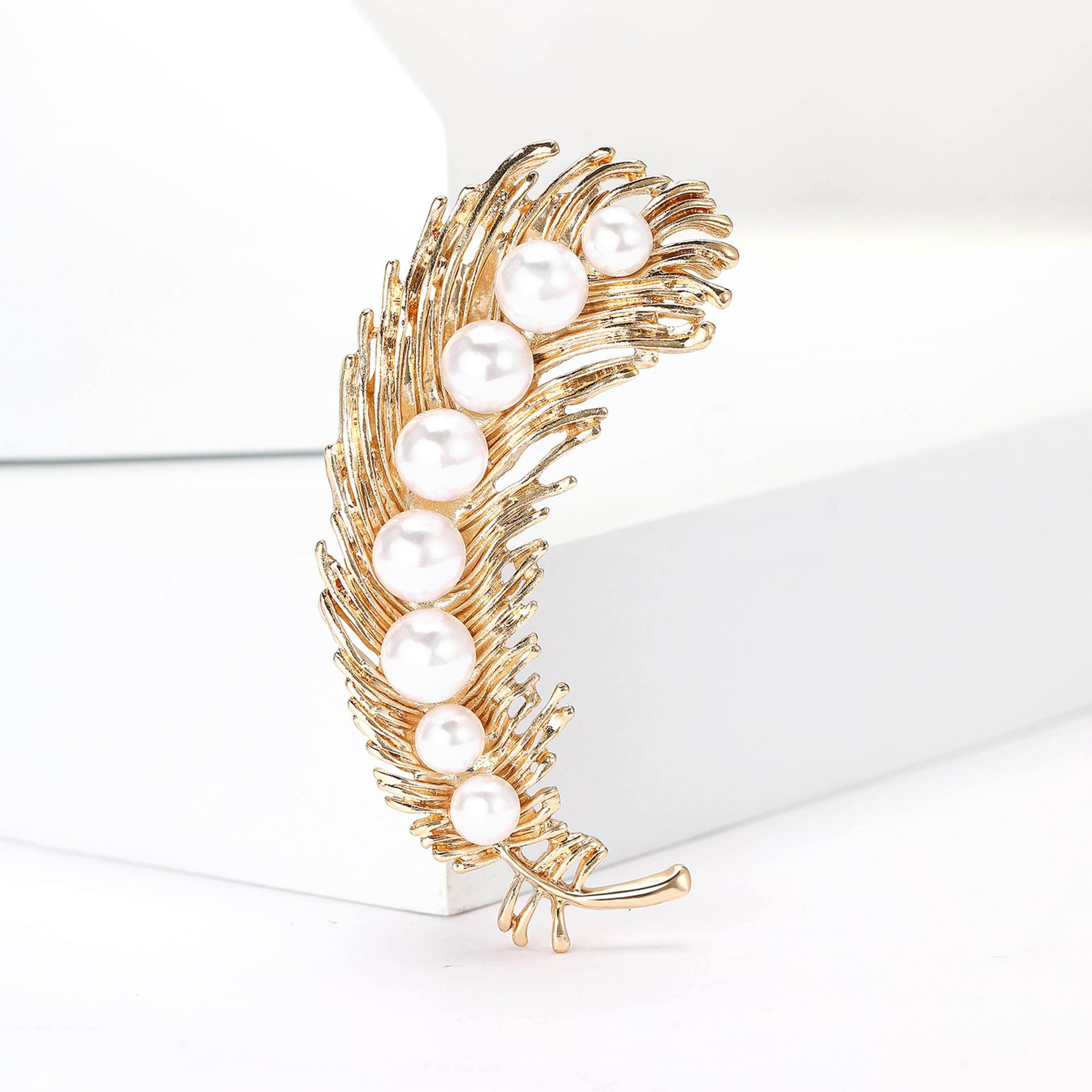 Nuevo broche de plumas de perla de aleación creativa coreana, exquisito broche de ramillete para abrigo de traje de mujer que combina con todo, alfiler de joyería