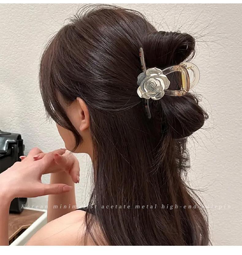 Pinza para el pelo con forma de rosa para mujer, pinza grande con diseño de tiburón, estilo elegante, 2023