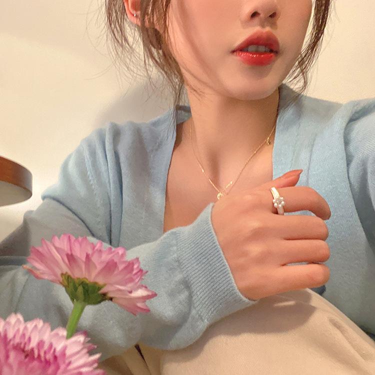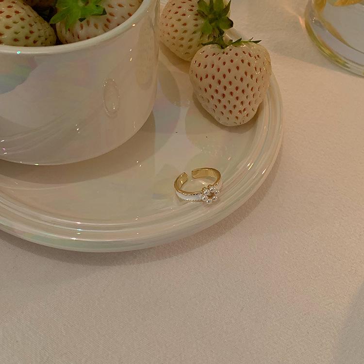 Anillo de Flor de Perla de Primavera Temprana Diseño Nicho de Alta Gama Lujo Accesible Exquisito Anillo Abierto para el Dedo Índice Moderno Elegante