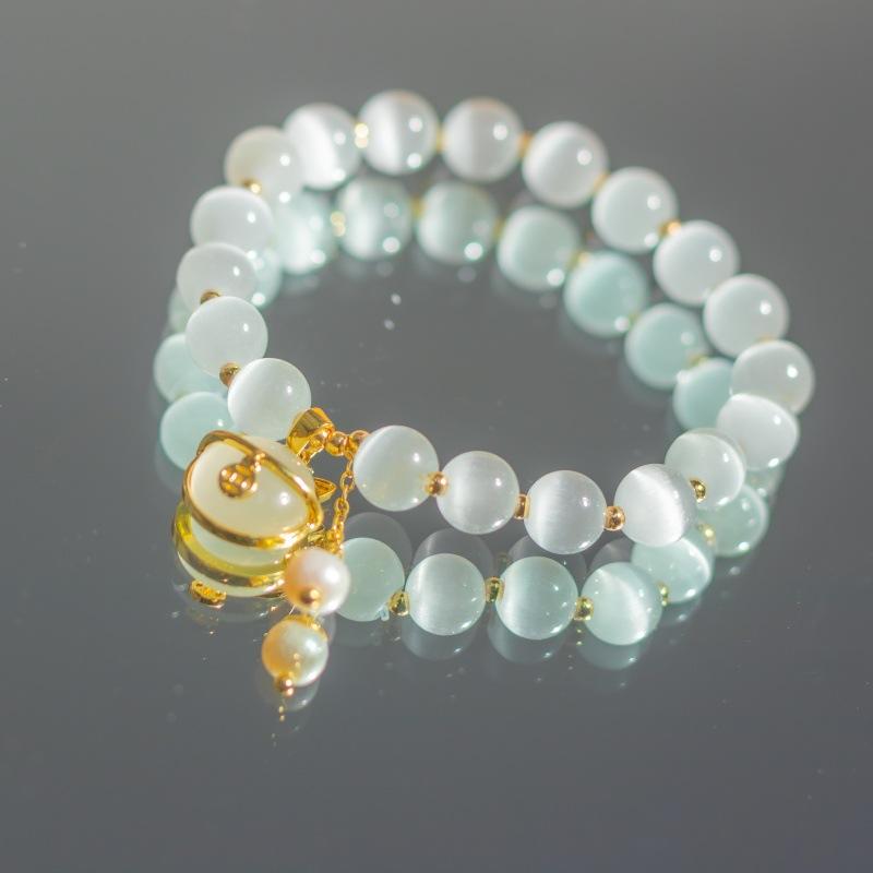 Pulsera de Ópalo para mujer diseño de nicho ins lujo ligero exquisito moda simple moda gatito pulsera de cristal